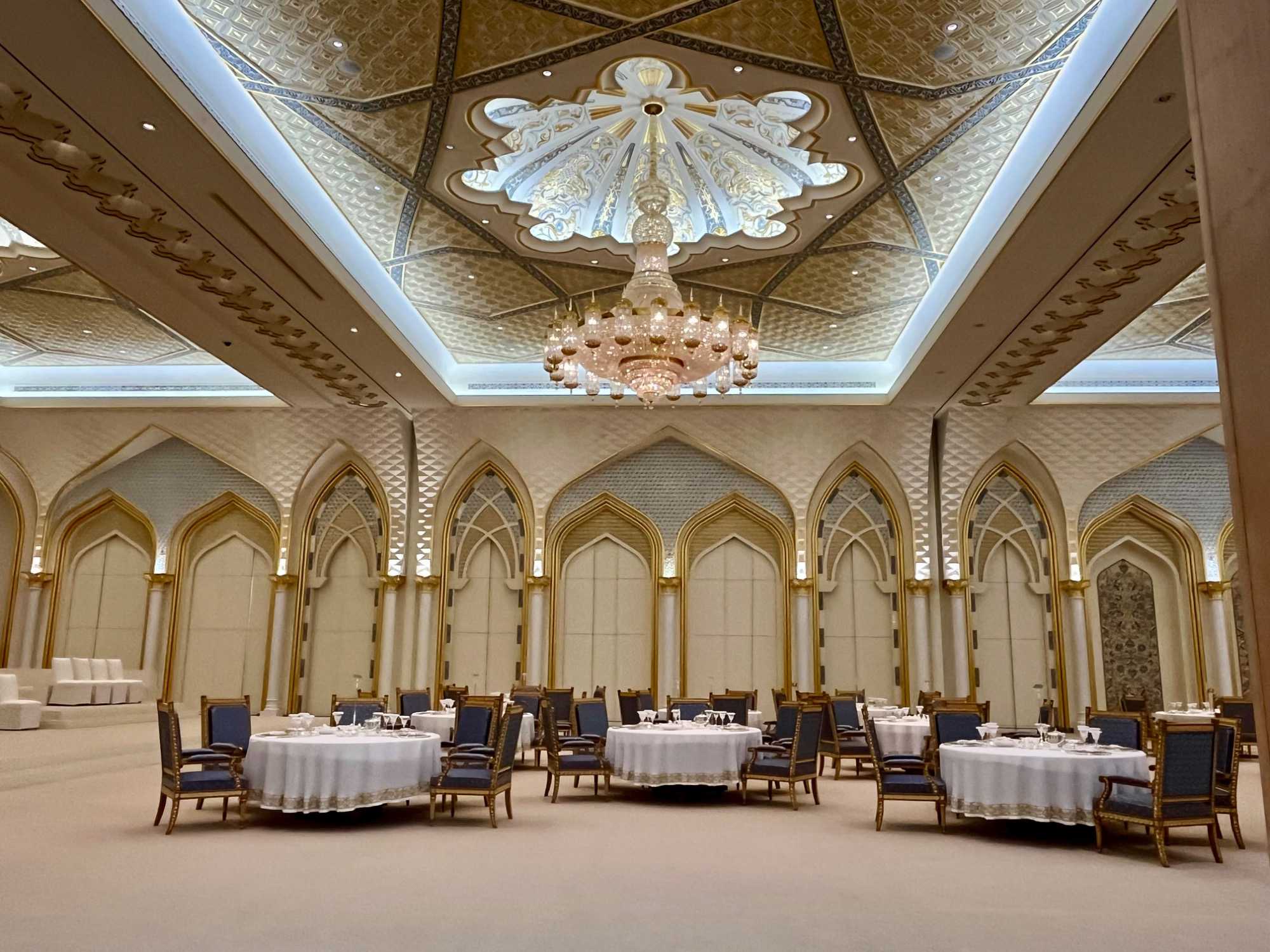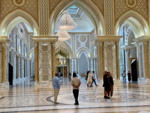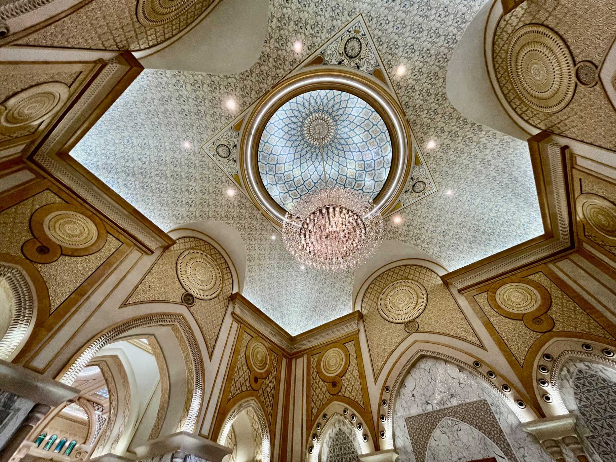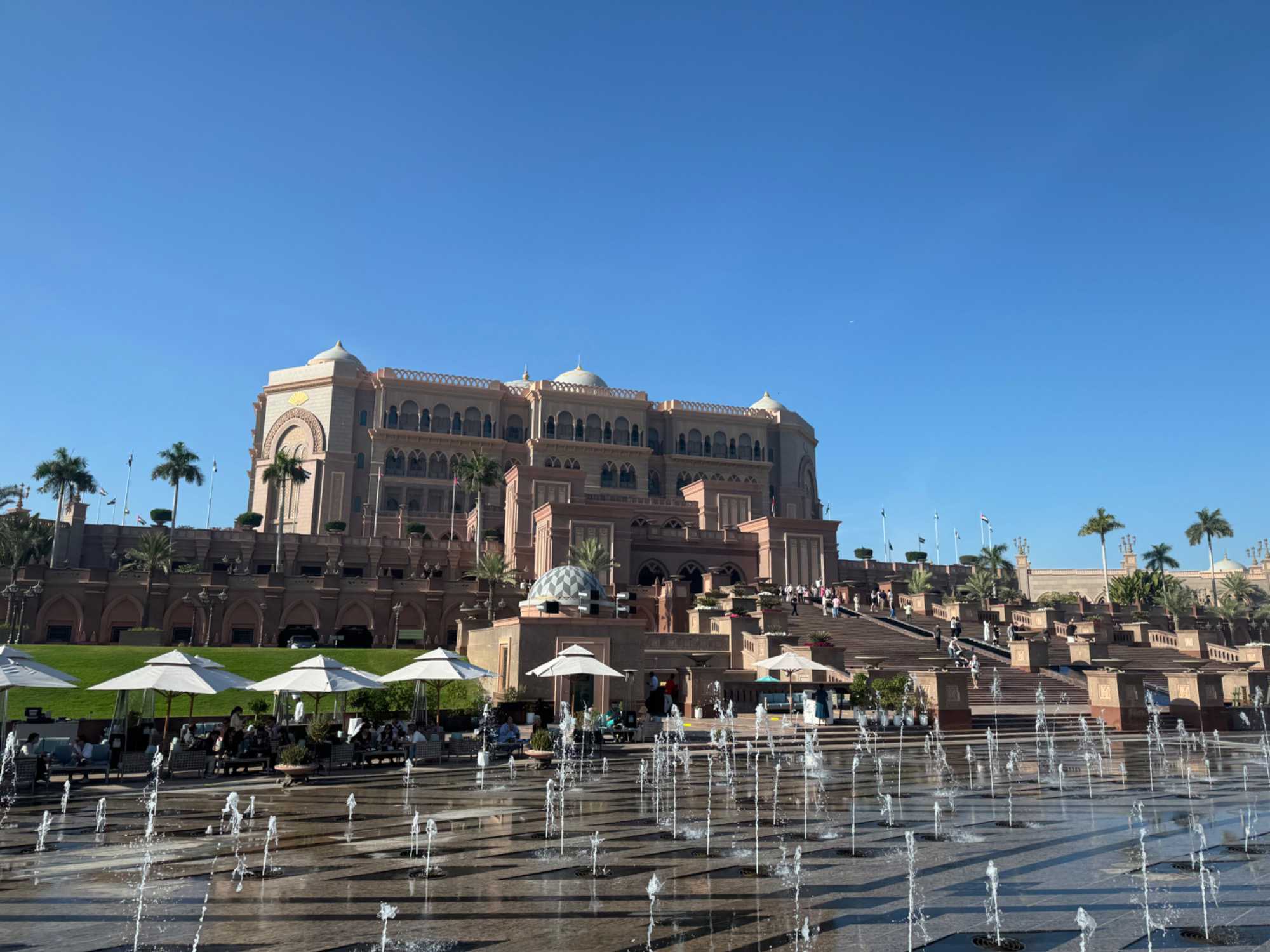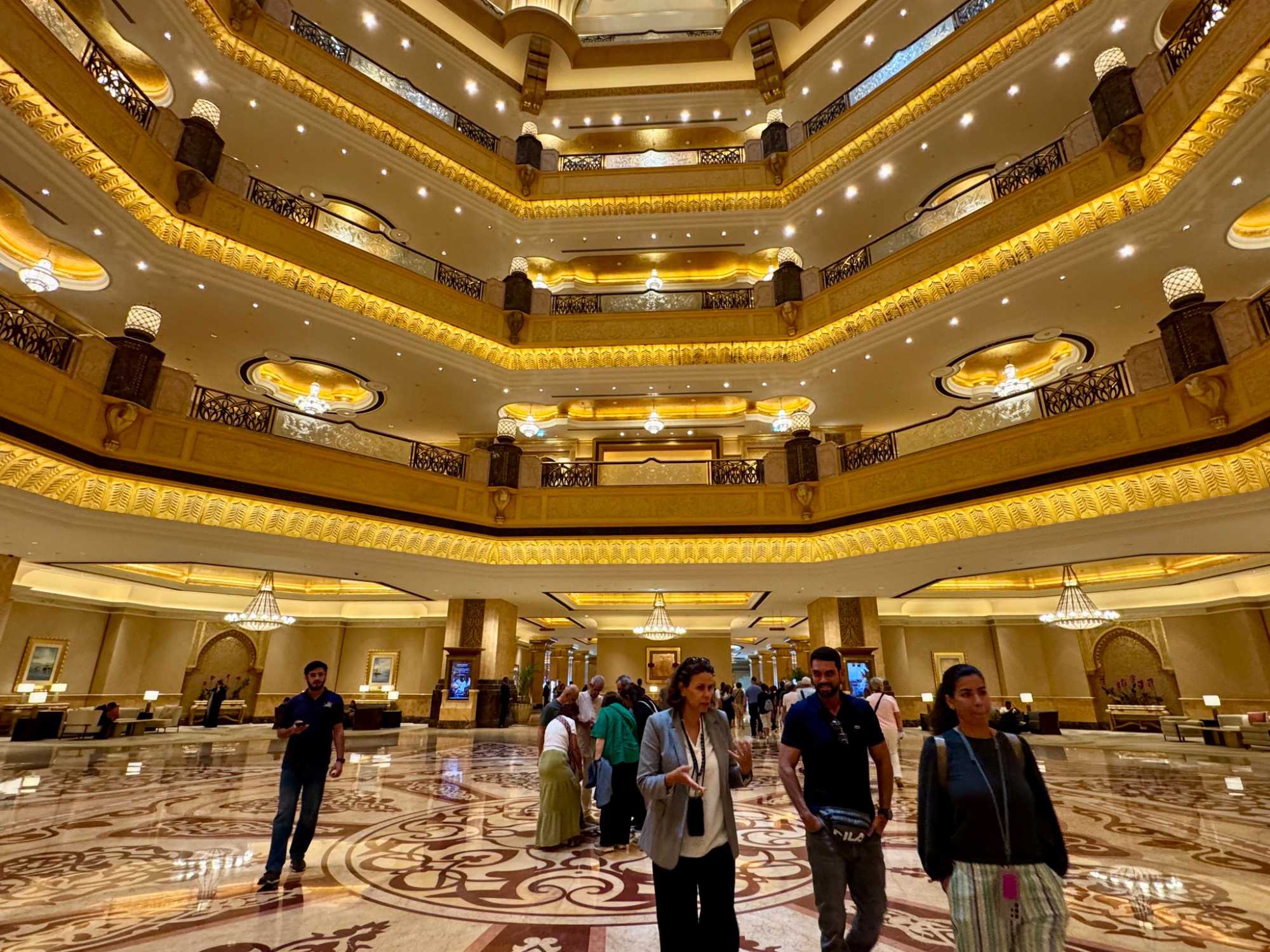 Pour le dîner du midi, nous découvrons le somptueux Emirates Palace Mandarin Oriental, symbole du luxe et de l’hospitalité arabe. Nous vivons un moment d’une grande élégance dans cet hôtel emblématique d’Abou Dhabi, souvent associé à l’appellation d’hôtel autoproclamée « sept étoiles ». Situé sur une plage privée immaculée, entouré de jardins somptueux et coiffé de dômes dorés, il incarne le raffinement dans toute sa splendeur. Ce repas constitue une pause des plus agréables au cœur d’une journée déjà riche en découvertes.