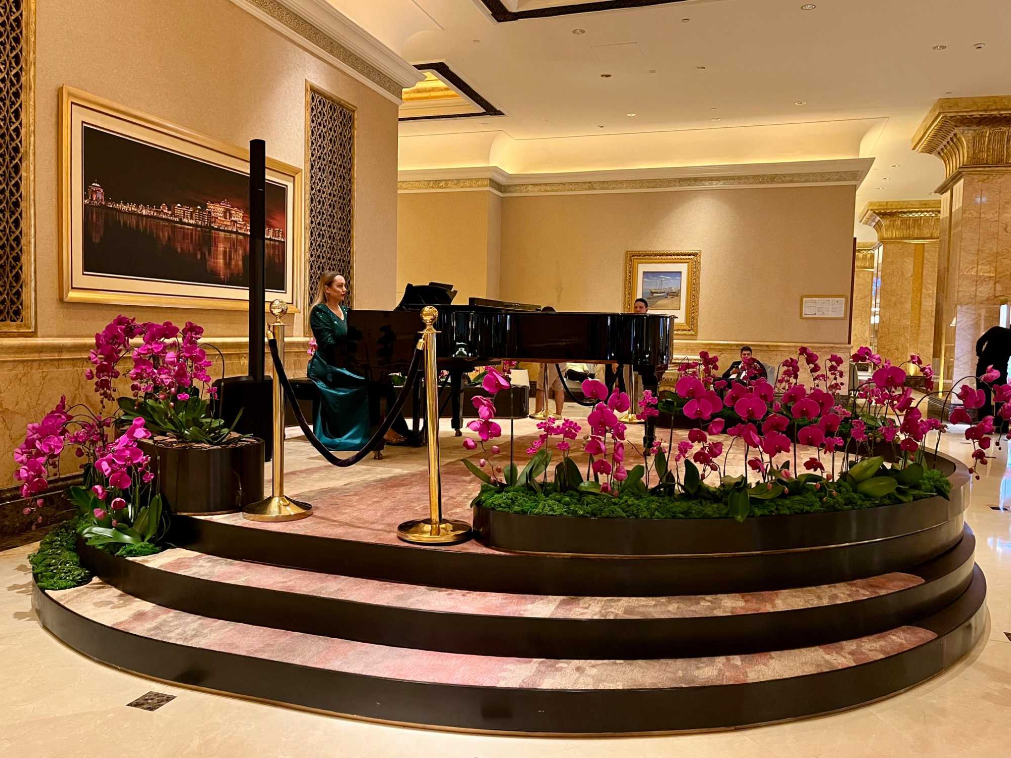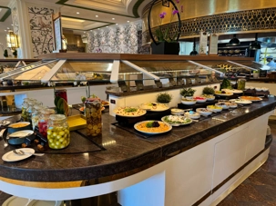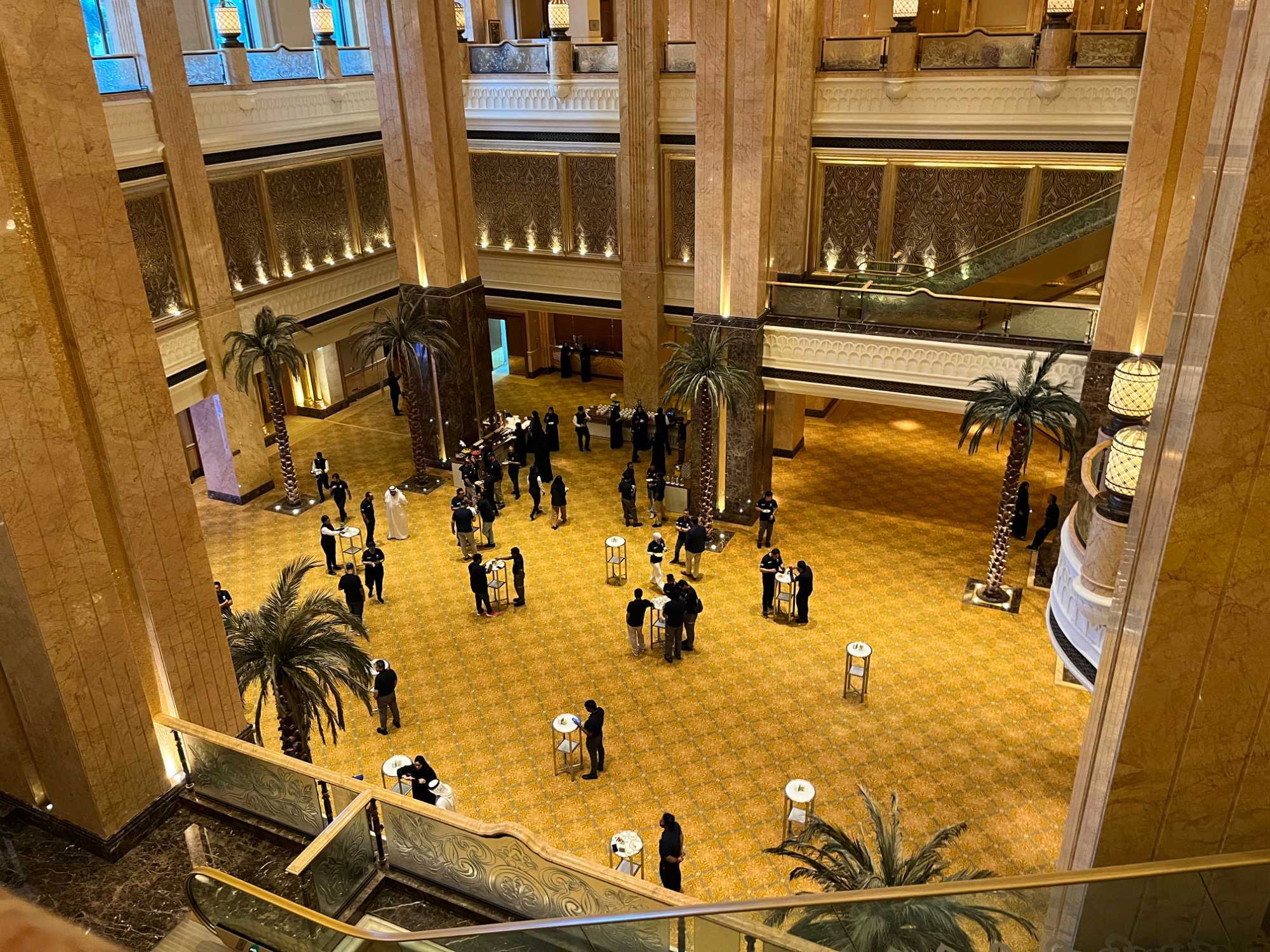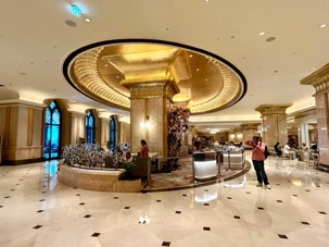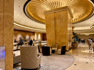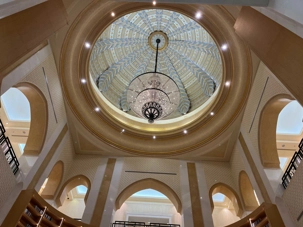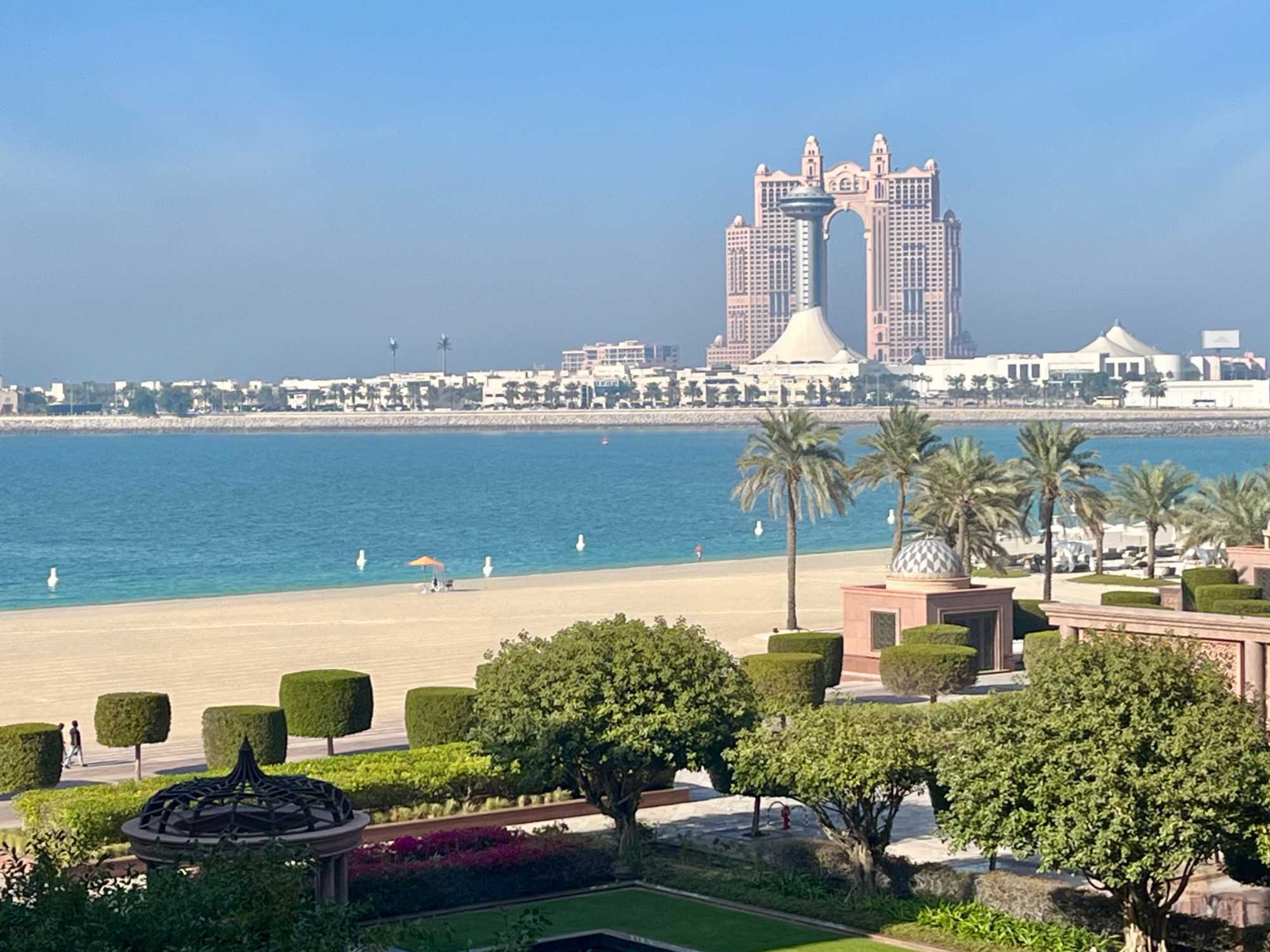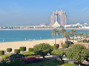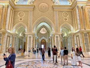 Pour le dîner du midi, nous découvrons le somptueux Emirates Palace Mandarin Oriental, symbole du luxe et de l’hospitalité arabe. Nous vivons un moment d’une grande élégance dans cet hôtel emblématique d’Abou Dhabi, souvent associé à l’appellation d’hôtel autoproclamée « sept étoiles ». Situé sur une plage privée immaculée, entouré de jardins somptueux et coiffé de dômes dorés, il incarne le raffinement dans toute sa splendeur. Ce repas constitue une pause des plus agréables au cœur d’une journée déjà riche en découvertes.