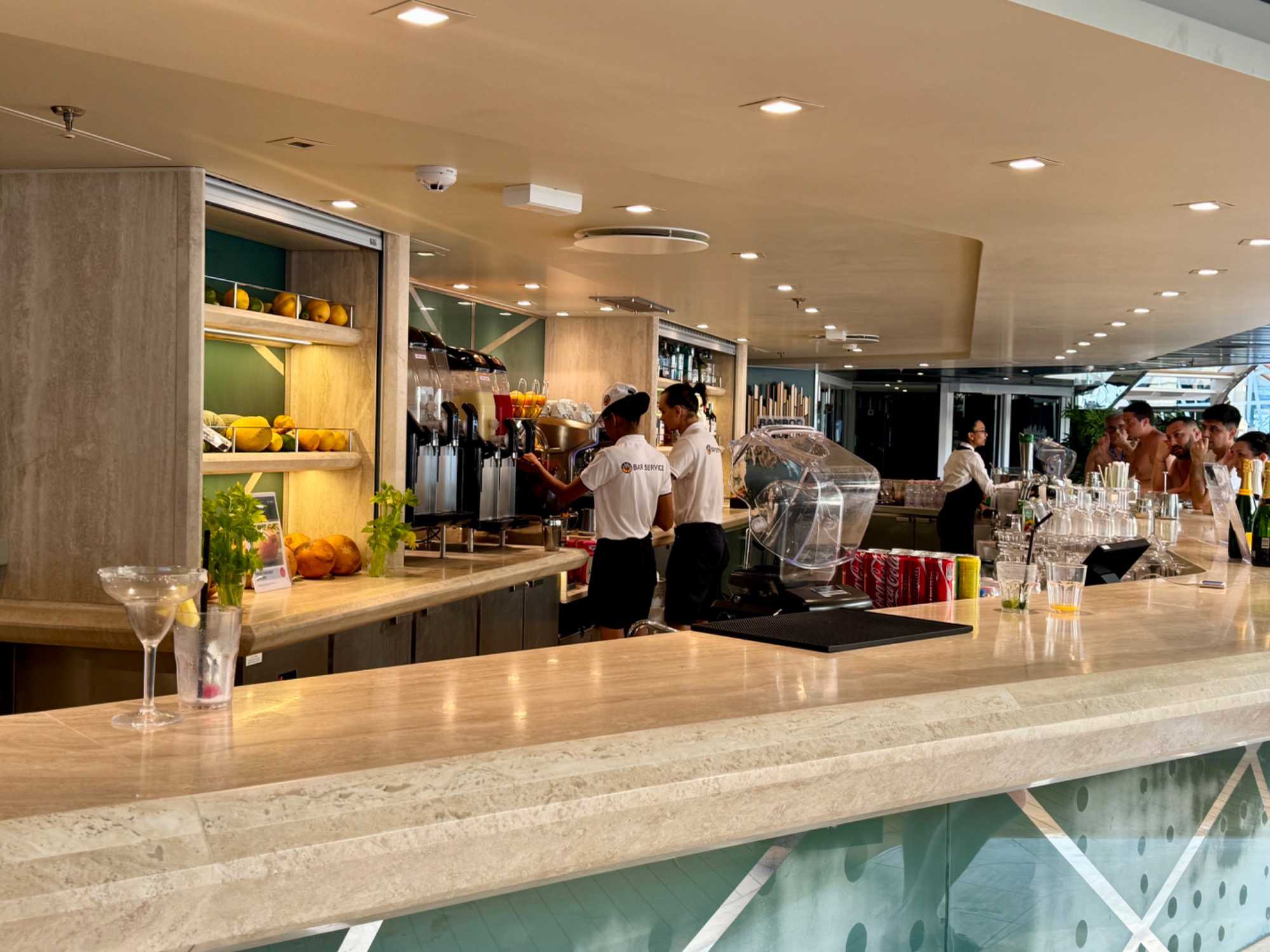 Dans l’espace Yacht Club, le confort et l’attention de nos butlers rendent cette journée en mer particulièrement agréable. Certains choisissent de prolonger le plaisir autour d’un café ou d’un apéritif, tandis que d’autres savourent simplement le calme et le rythme apaisant de la navigation.