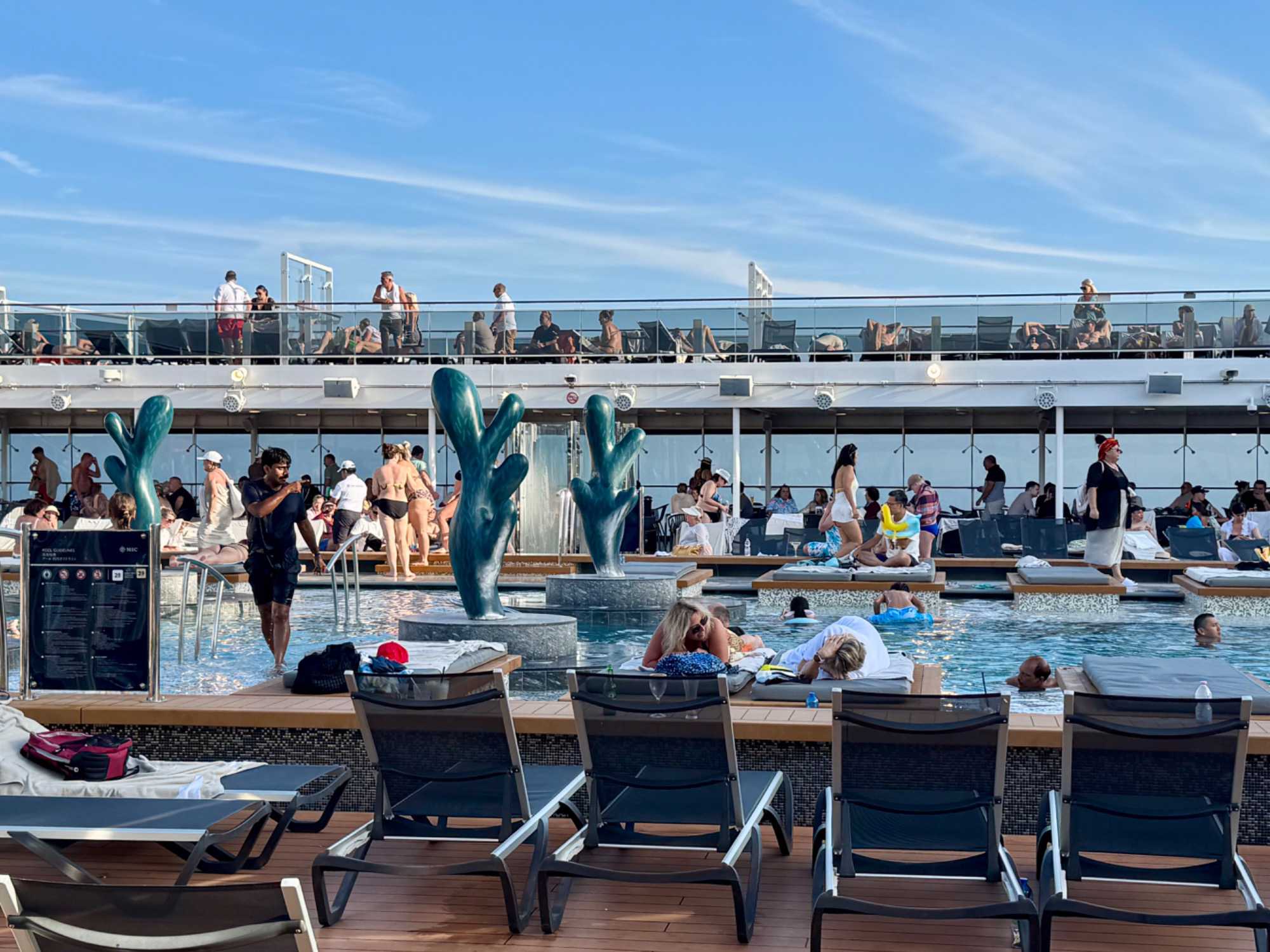 En conséquence, nous profitons aujourd’hui d’une agréable journée de détente en mer à bord du MSC Euribia. L’équipe du navire a rapidement adapté le programme afin de nous proposer une multitude d’activités, d’animations et d’expériences variées tout au long de la journée. Conférences, jeux, moments gourmands, détente au spa, activités sportives, spectacles et animations musicales viennent rythmer cette journée différente, mais tout aussi plaisante.
