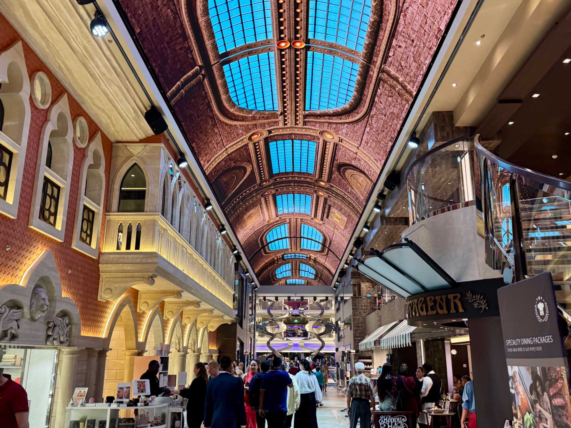 Plusieurs en profitent pour relaxer sur les ponts extérieurs, lire un bon livre ou admirer l’immensité du golfe Persique. D’autres participent aux nombreuses activités organisées à bord, transformant ce contretemps en occasion de découvrir encore davantage les installations et les services du navire.