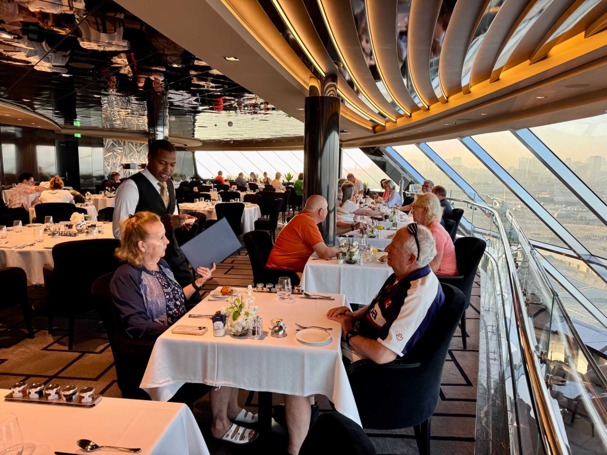 En fin de journée, nous regagnons le MSC Euribia, offrant une vue spectaculaire sur la skyline illuminée de Dubaï. Le souper à bord vient clore cette journée exceptionnelle, où conversations et rires ponctuent la soirée, rappelant les moments forts de la journée et de l’ensemble du voyage.