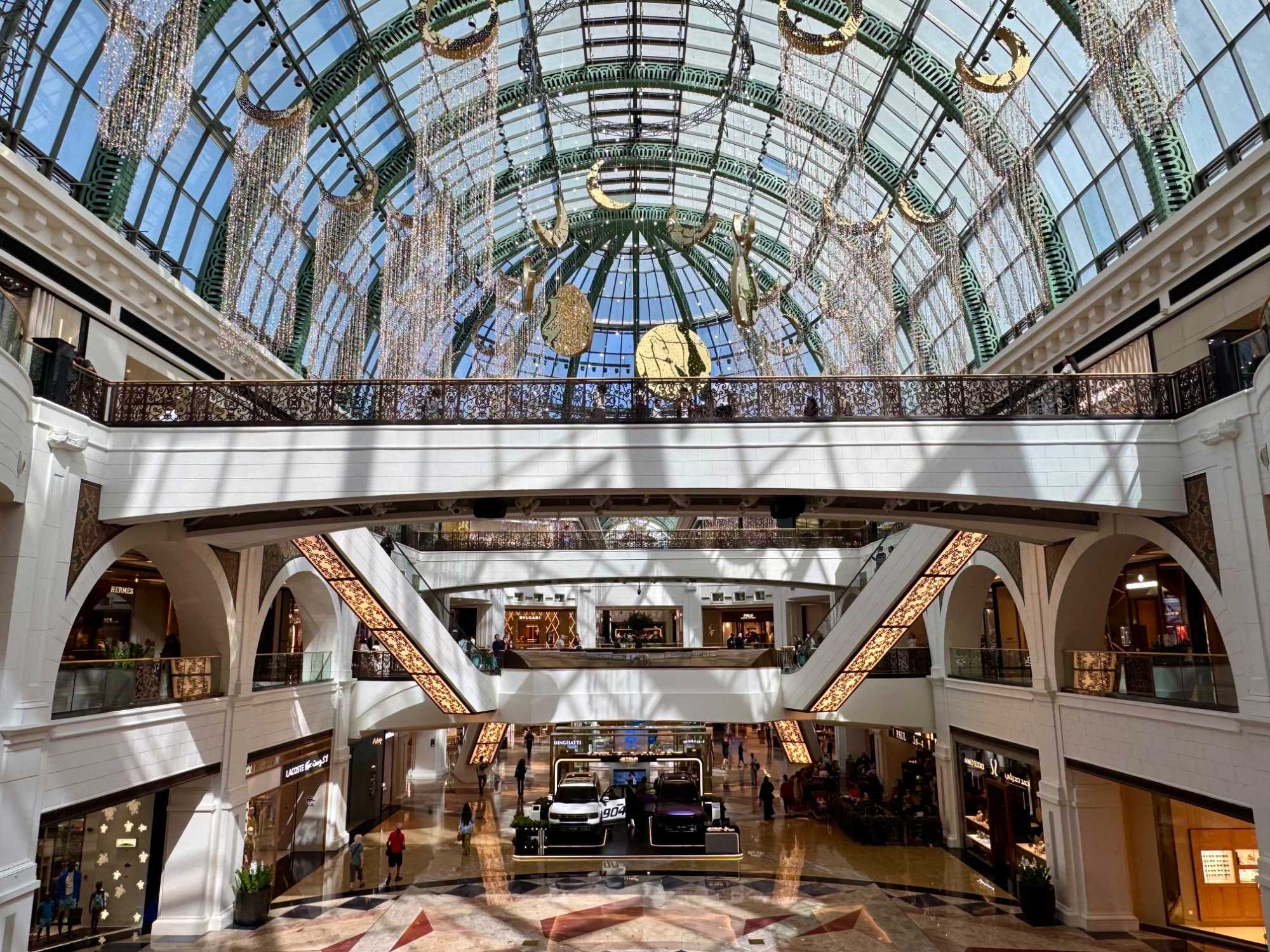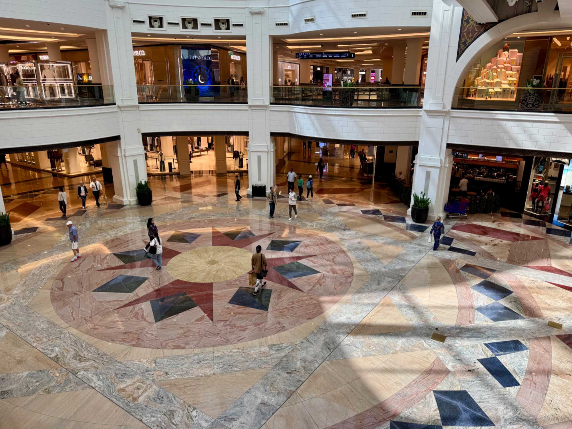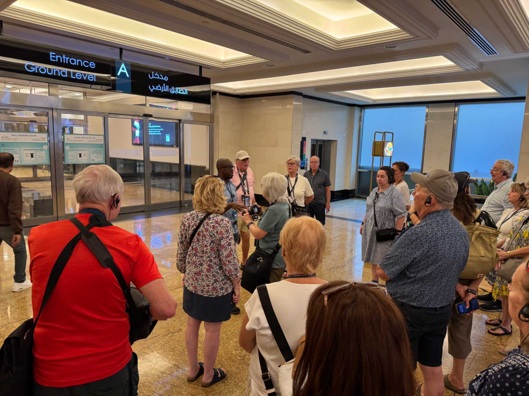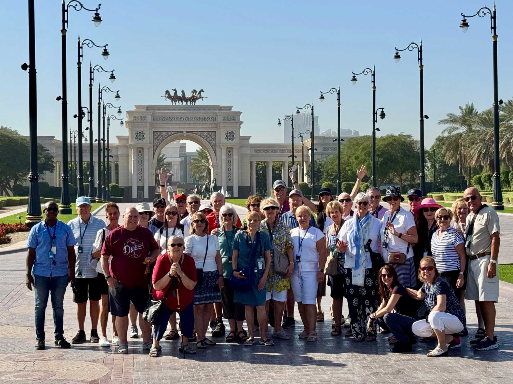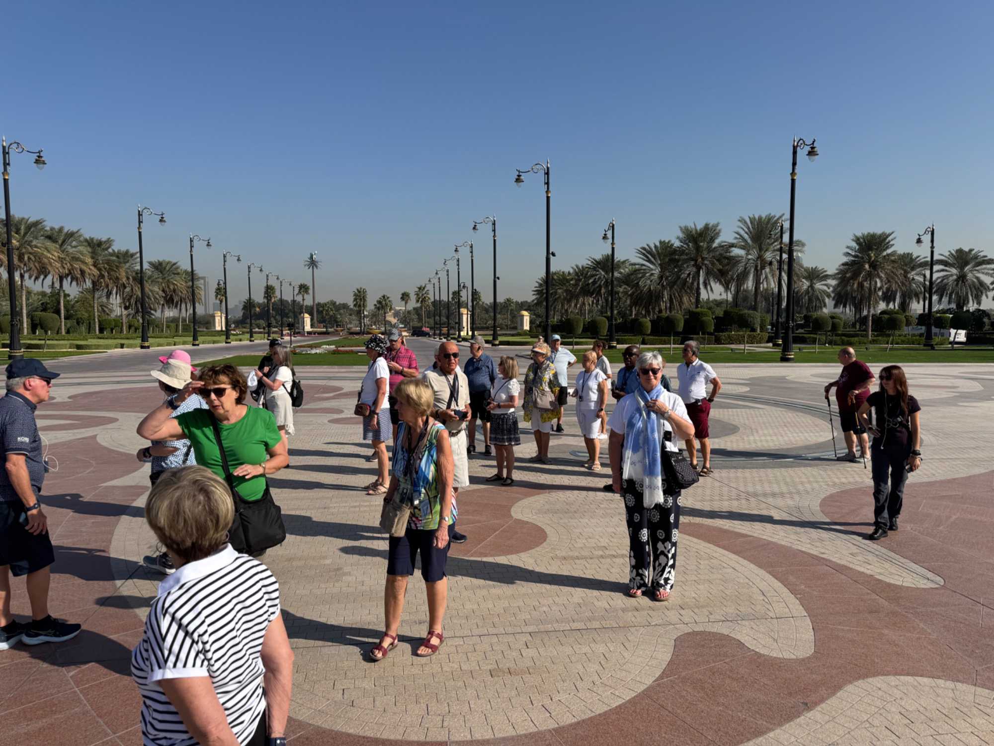 La matinée débute par la visite de l’incontournable Mall of the Emirates, l’un des centres commerciaux les plus emblématiques de Dubaï. Inauguré en 2005, ce vaste complexe impressionne par son architecture inspirée des galeries européennes. Sous la majestueuse coupole de la Fashion Dome, les allées de marbre, les structures en fer forgé et les boutiques prestigieuses créent une atmosphère à la fois lumineuse et raffinée. Un temps libre nous permet de parcourir ses immenses espaces, chacun au rythme de ses envies : certains flânent dans les boutiques, d’autres s’attardent à admirer l’architecture spectaculaire ou bien s’émerveillent devant Ski Dubaï, étonnante station de ski intérieure, dont le contraste avec la chaleur extérieure illustre parfaitement l’audace et la démesure de la ville. Ce moment constitue une belle introduction au dynamisme de Dubaï.
