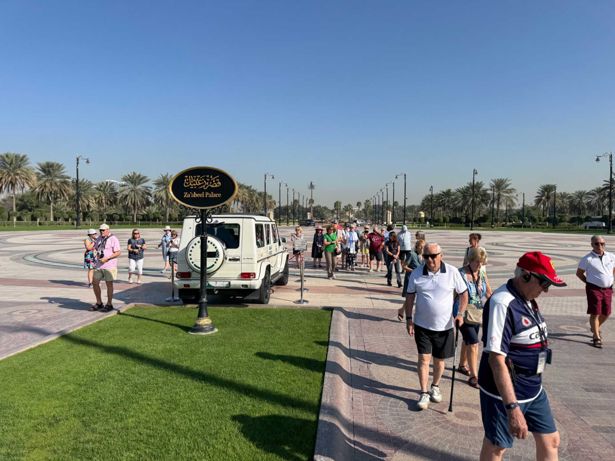 Nous poursuivons ensuite par un tour panoramique autour de Zabeel Palace, résidence emblématique des cheikhs de Dubaï. De nombreux arrêts photo sont proposés, offrant une vue imprenable sur ce quartier symbolique et ses bâtiments majestueux. Les contrastes entre modernité et patrimoine historique de la ville se révèlent à chaque regard.