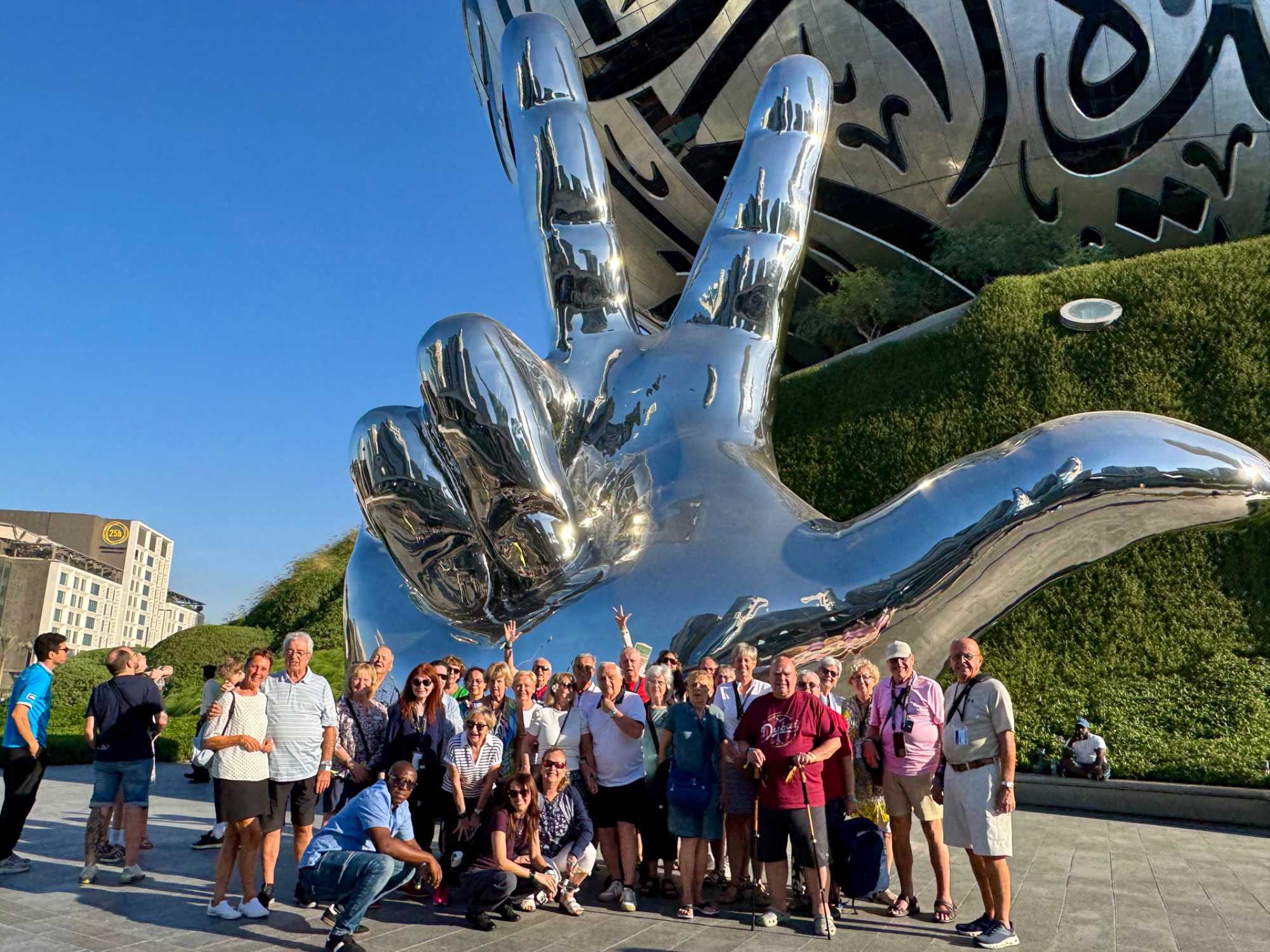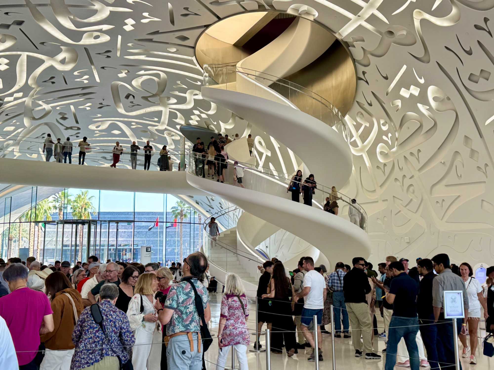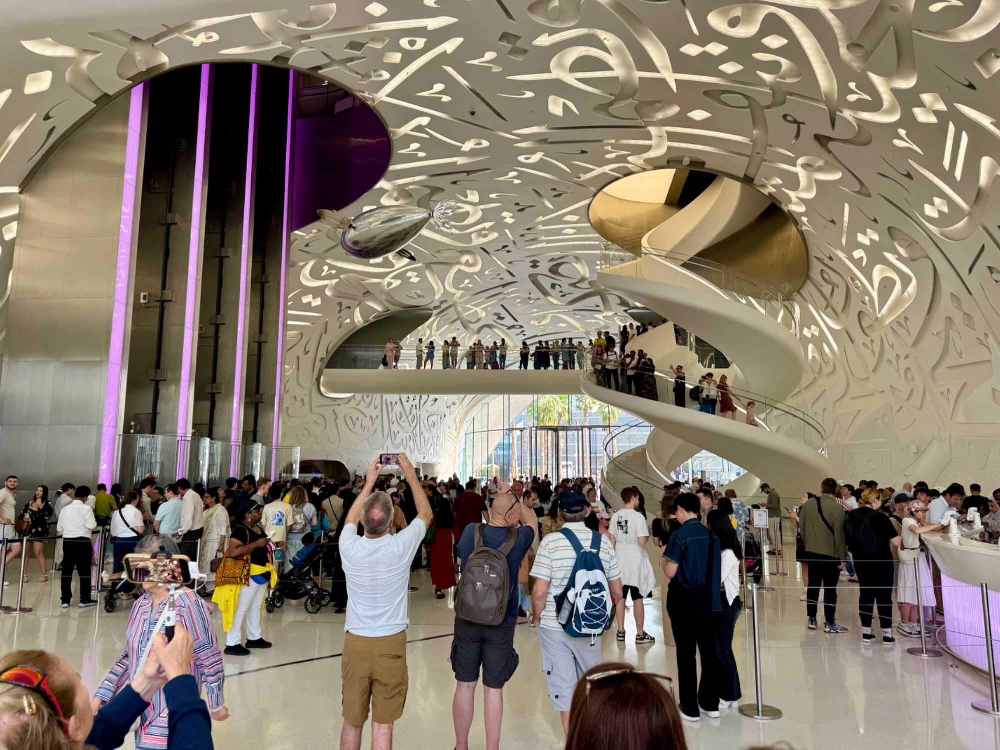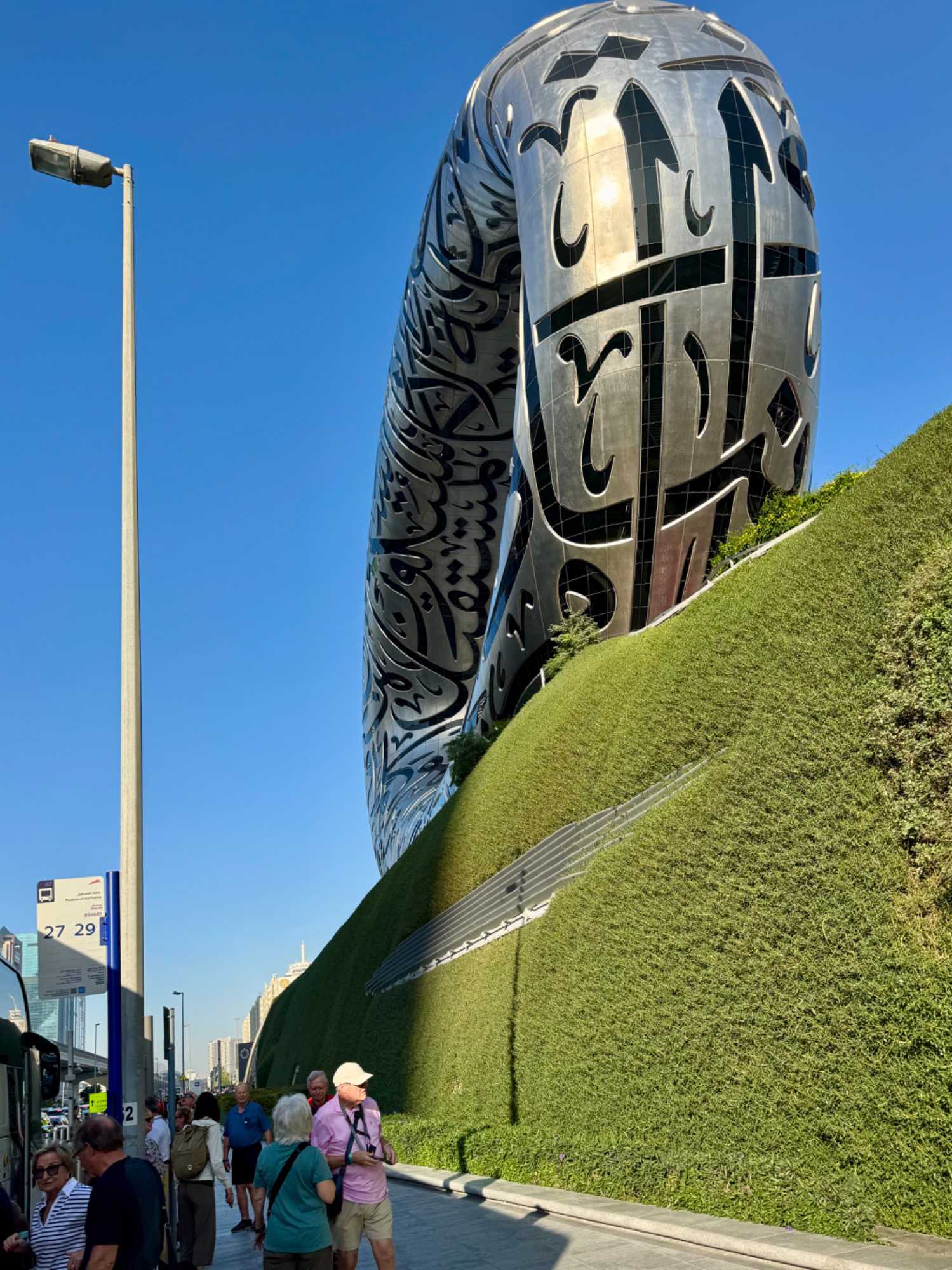 L’après-midi est consacré à la visite du Musée du Futur, véritable joyau architectural et symbole de la vision futuriste de Dubaï. Dès l’approche, son design spectaculaire attire tous les regards. Plus qu’un musée traditionnel, il s’agit d’une véritable passerelle vers le monde de demain, imaginée par des designers, artistes et visionnaires. À l’intérieur, chaque étage propose un univers immersif unique, combinant technologies de pointe, expositions interactives et expériences sensorielles. Nous explorons des concepts innovants liés à la science, à la technologie et à l’environnement, tout en laissant libre cours à notre imagination et à notre curiosité. La visite nous invite à réfléchir au futur de l’humanité et aux solutions possibles pour notre planète, dans un cadre à la fois ludique et inspirant.