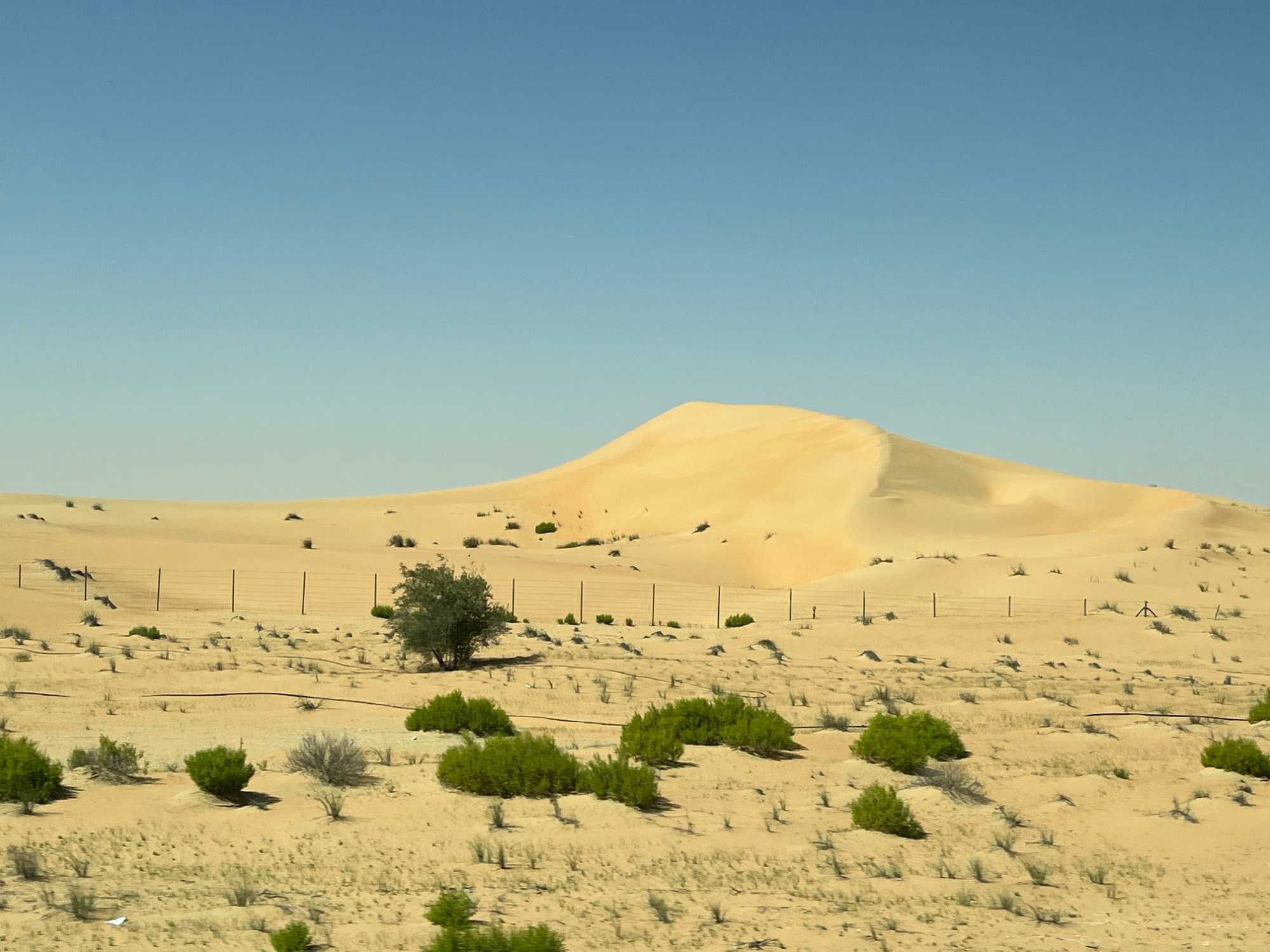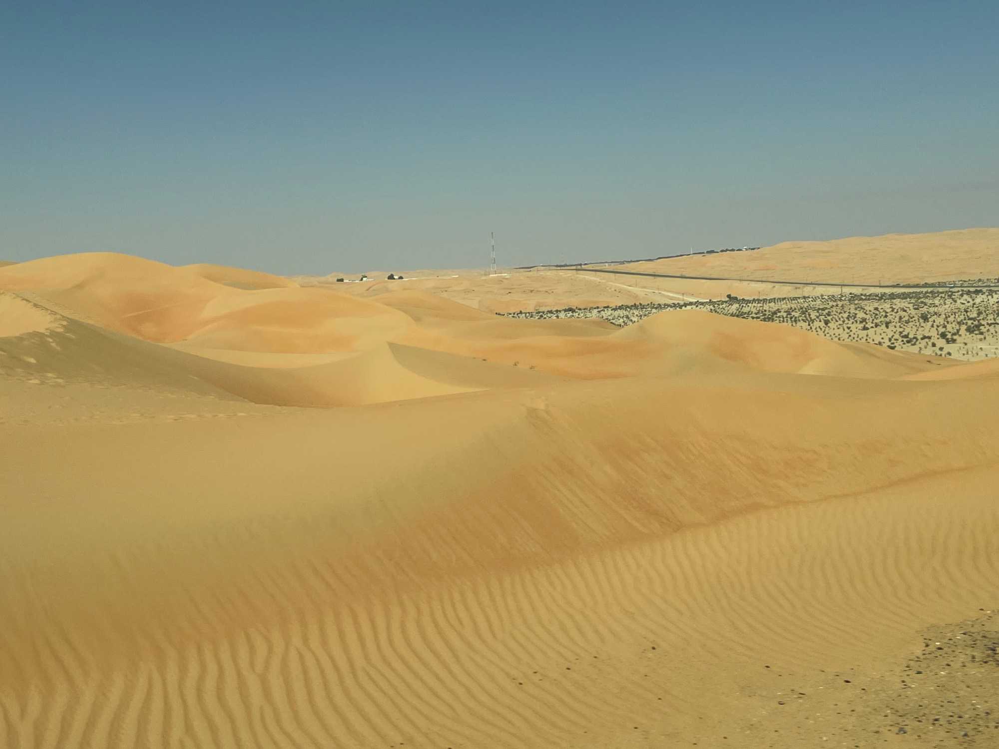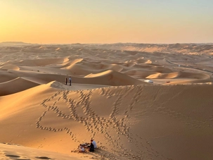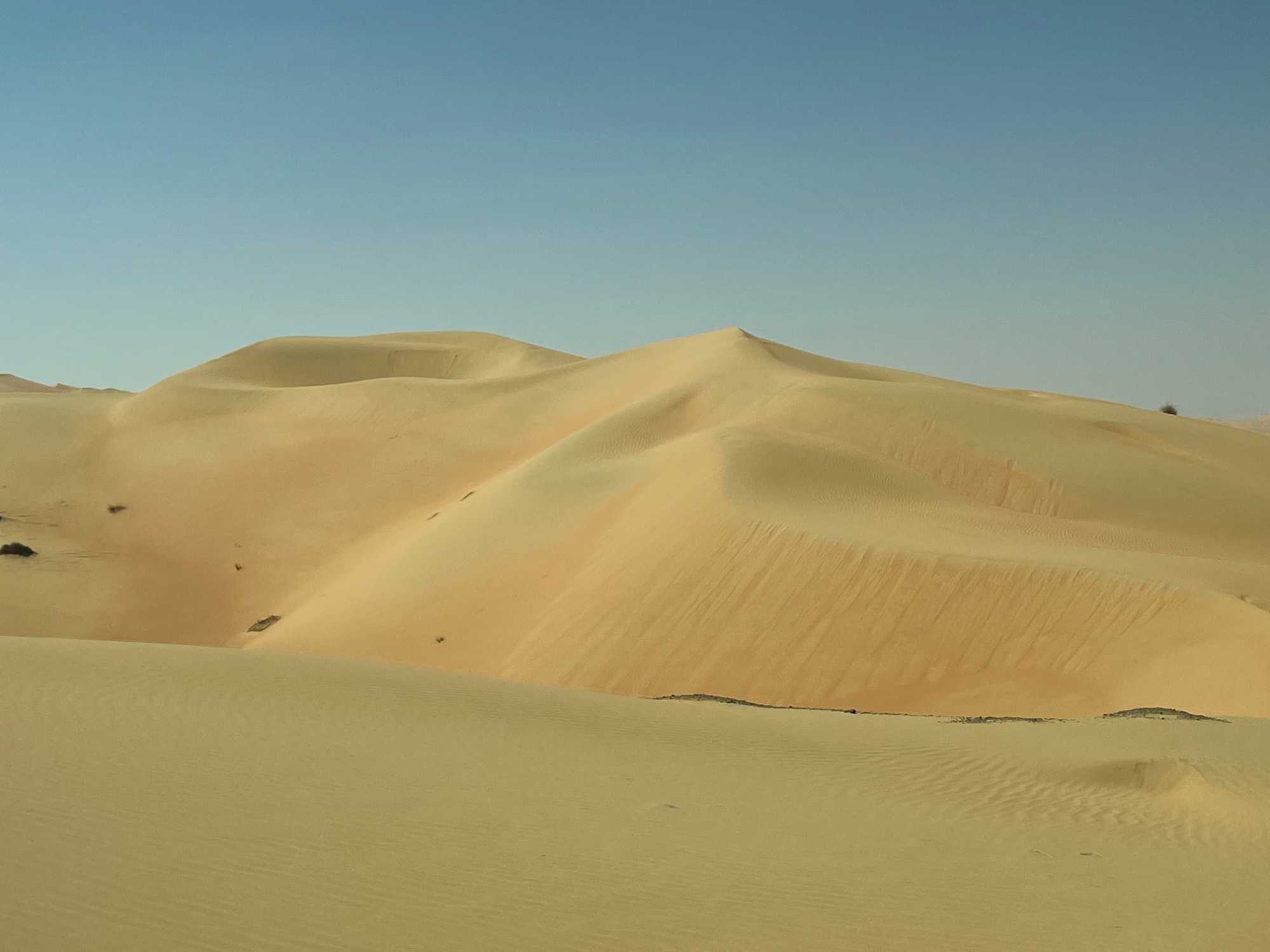 Nous quittons progressivement l’effervescence urbaine de Dubaï pour prendre la route en direction du Rub al-Khali, le mythique désert du Quart Vide. Au fil des kilomètres, les gratte-ciels disparaissent, laissant place à de vastes étendues arides, ponctuées de dunes ondulantes aux teintes dorées. Le paysage devient de plus en plus spectaculaire et silencieux, presque irréel. Le désert s’ouvre devant nous dans toute sa grandeur, offrant une sensation de calme profond et de déconnexion totale.