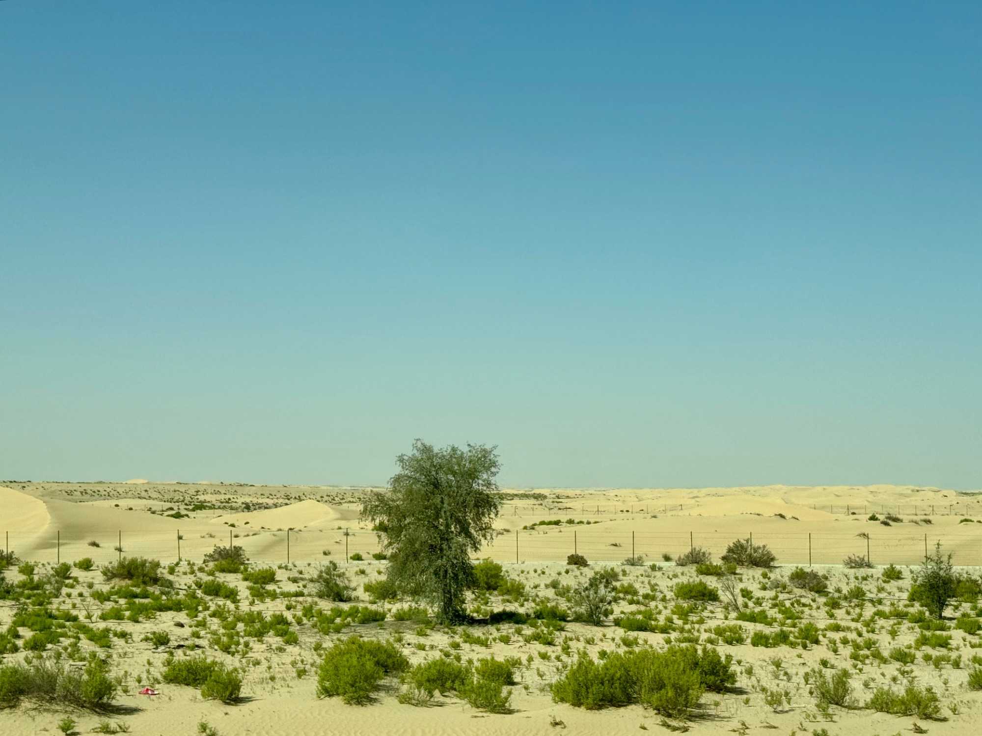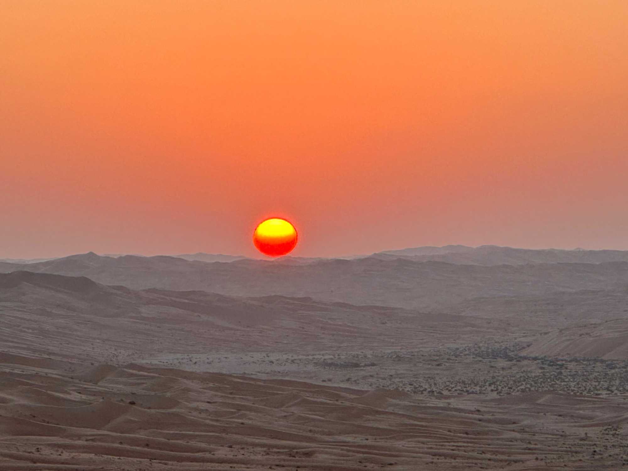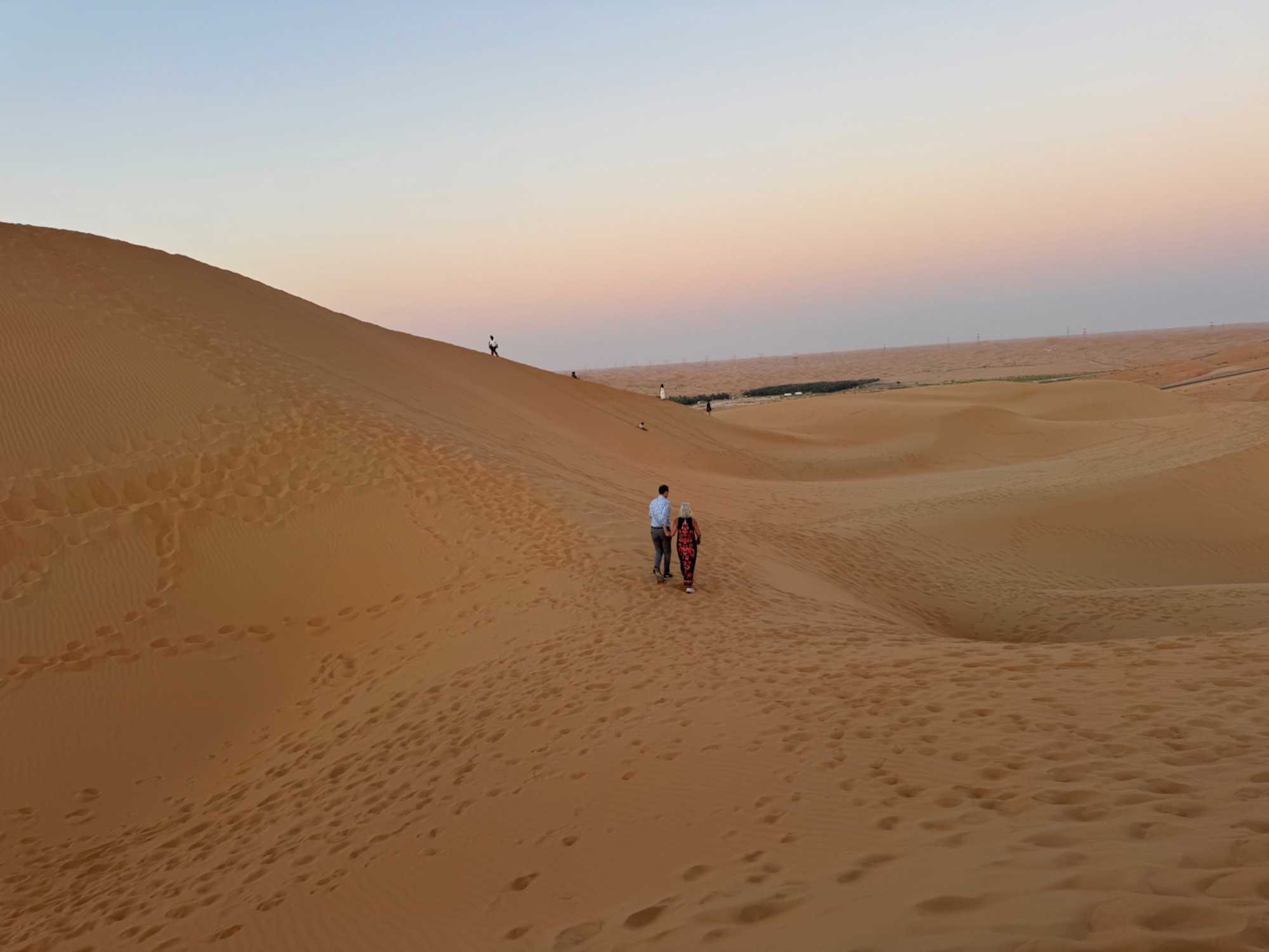 Nous quittons progressivement l’effervescence urbaine de Dubaï pour prendre la route en direction du Rub al-Khali, le mythique désert du Quart Vide. Au fil des kilomètres, les gratte-ciels disparaissent, laissant place à de vastes étendues arides, ponctuées de dunes ondulantes aux teintes dorées. Le paysage devient de plus en plus spectaculaire et silencieux, presque irréel. Le désert s’ouvre devant nous dans toute sa grandeur, offrant une sensation de calme profond et de déconnexion totale.