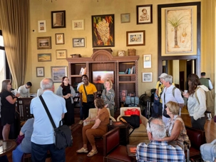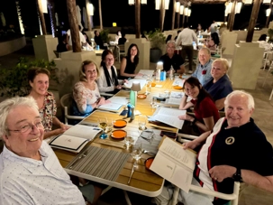 À notre arrivée à 13 h, nous partageons notre repas du midi sur la terrasse, profitant du cadre exceptionnel et de la vue sur les dunes environnantes. Ce moment convivial et détendu permet à chacun de s’imprégner du lieu et de se rafraîchir après la route.