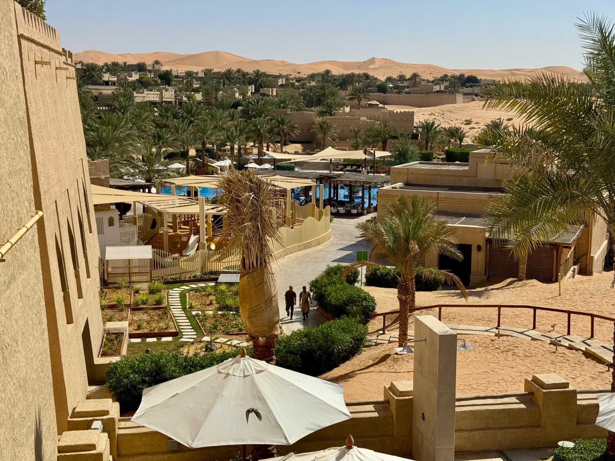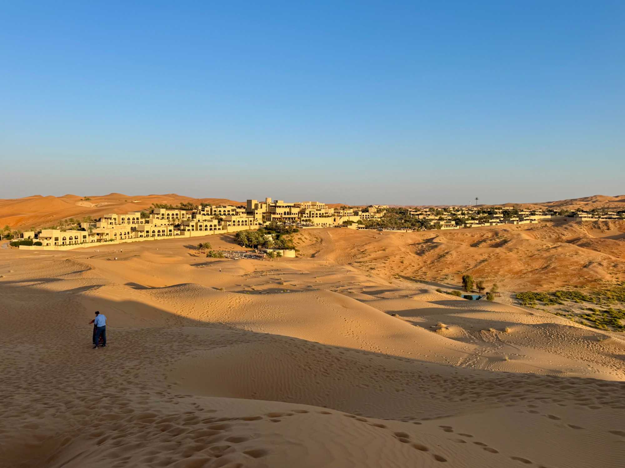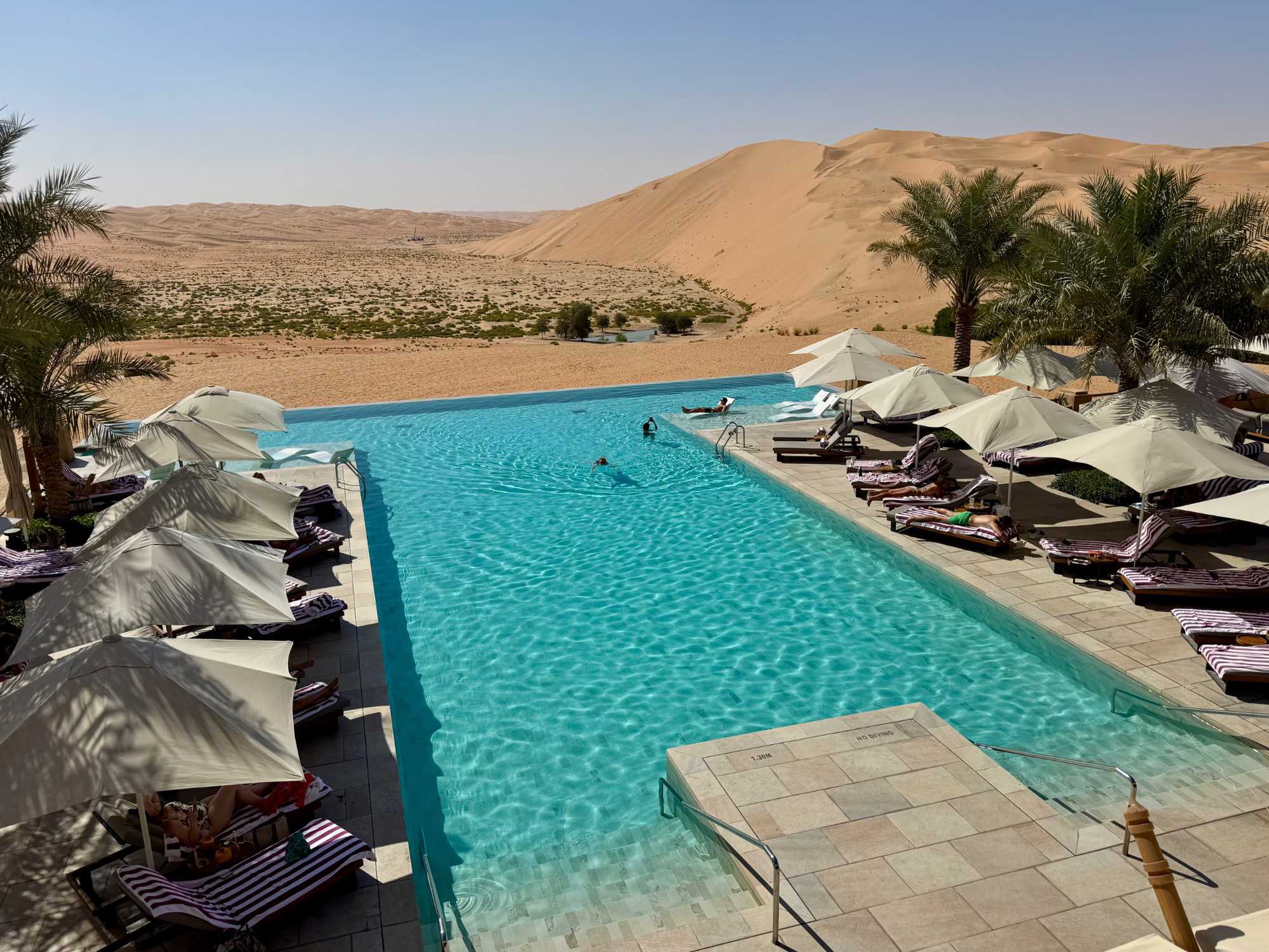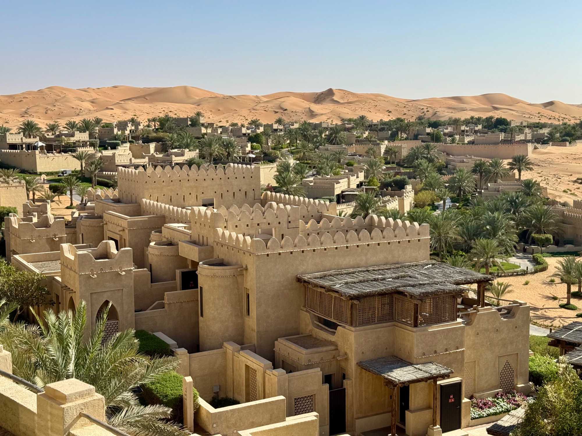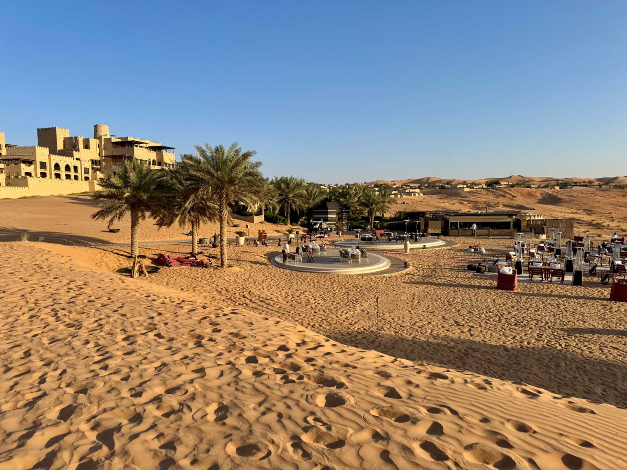 Le resort compte 140 chambres, 14 suites et 53 villas privées avec piscine, toutes décorées avec un grand souci du détail, dans des tons chauds et des matériaux évoquant la tradition locale. De nos chambres, la vue est saisissante : des dunes à perte de vue, changeant de couleur au fil de la lumière, et ce sentiment rare d’être au bout du monde, entourés uniquement par le silence du désert.