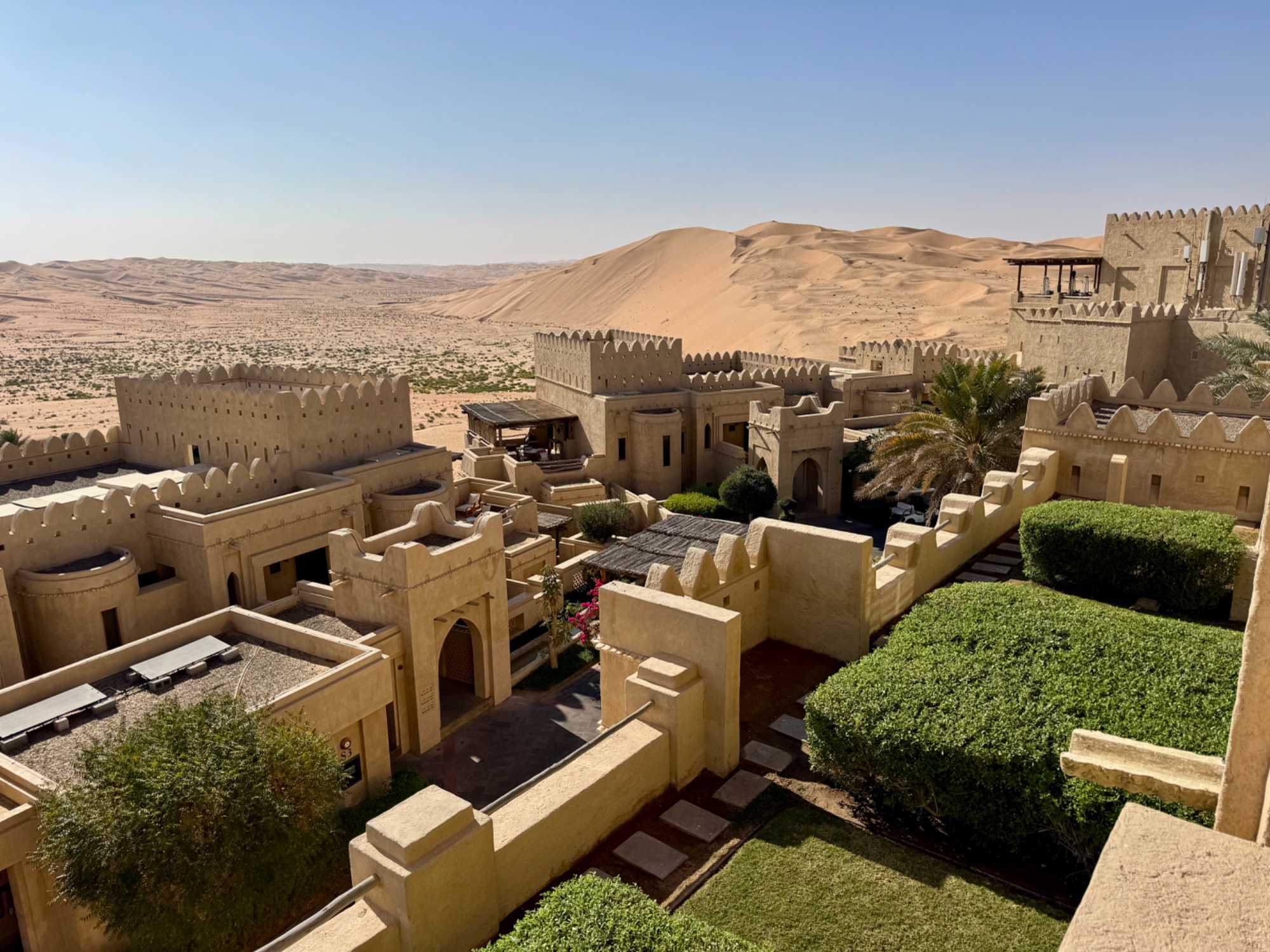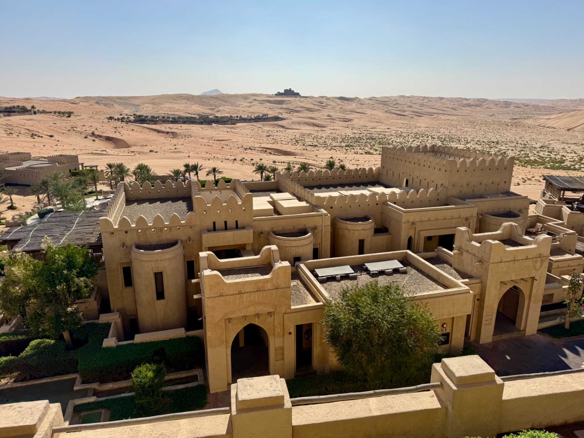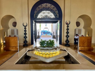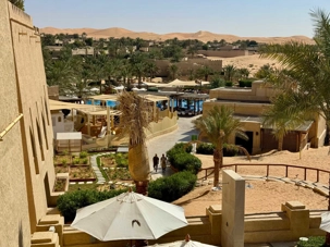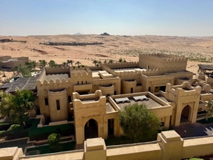 Après plusieurs heures de route à travers ces paysages grandioses, surgissant littéralement des dunes comme un mirage, nous découvrons le Qasr Al Sarab Desert Resort by Anantara. Cet hôtel cinq étoiles, considéré comme l’un des plus beaux établissements du désert, impressionne dès l’arrivée. Inspiré de l’architecture des anciens palais arabes, il se fond harmonieusement dans l’environnement naturel tout en offrant un luxe remarquable.