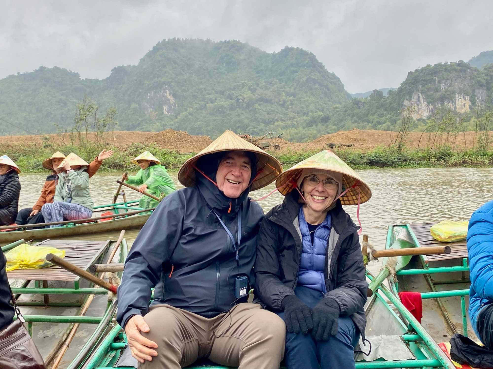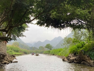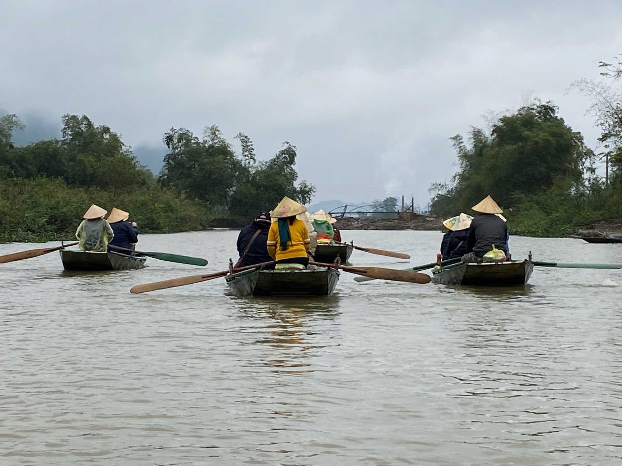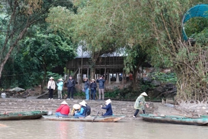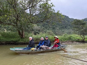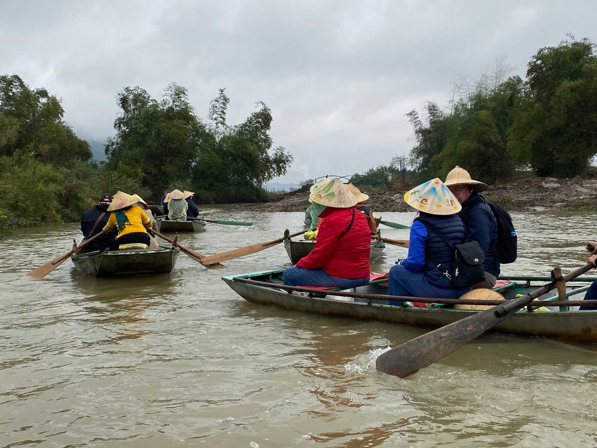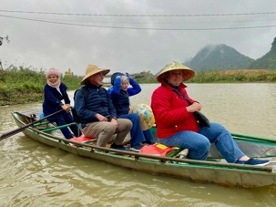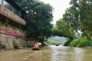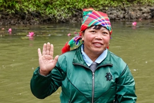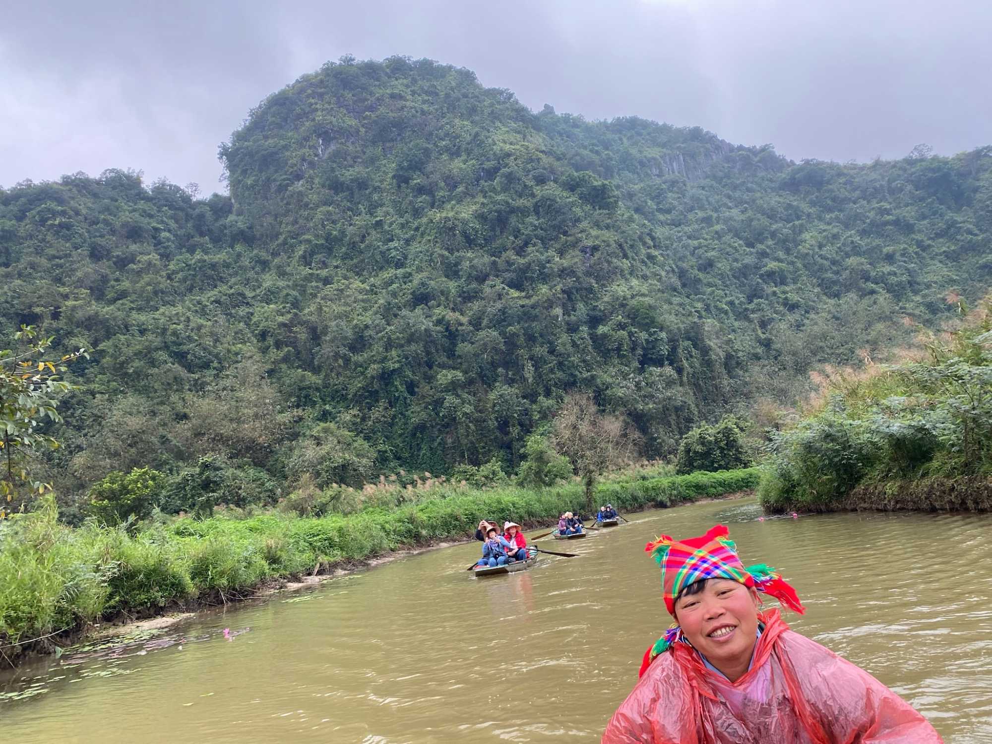À l’arrivée, les femmes locales nous accueillent et nous embarquons dans une barques à fond plat pour une promenade à travers les rizières à la découverte des magnifiques paysages qui serpentent entre les méandres de la rivière et les ces immenses collines qui tombent abruptement dans les points d’eau.
