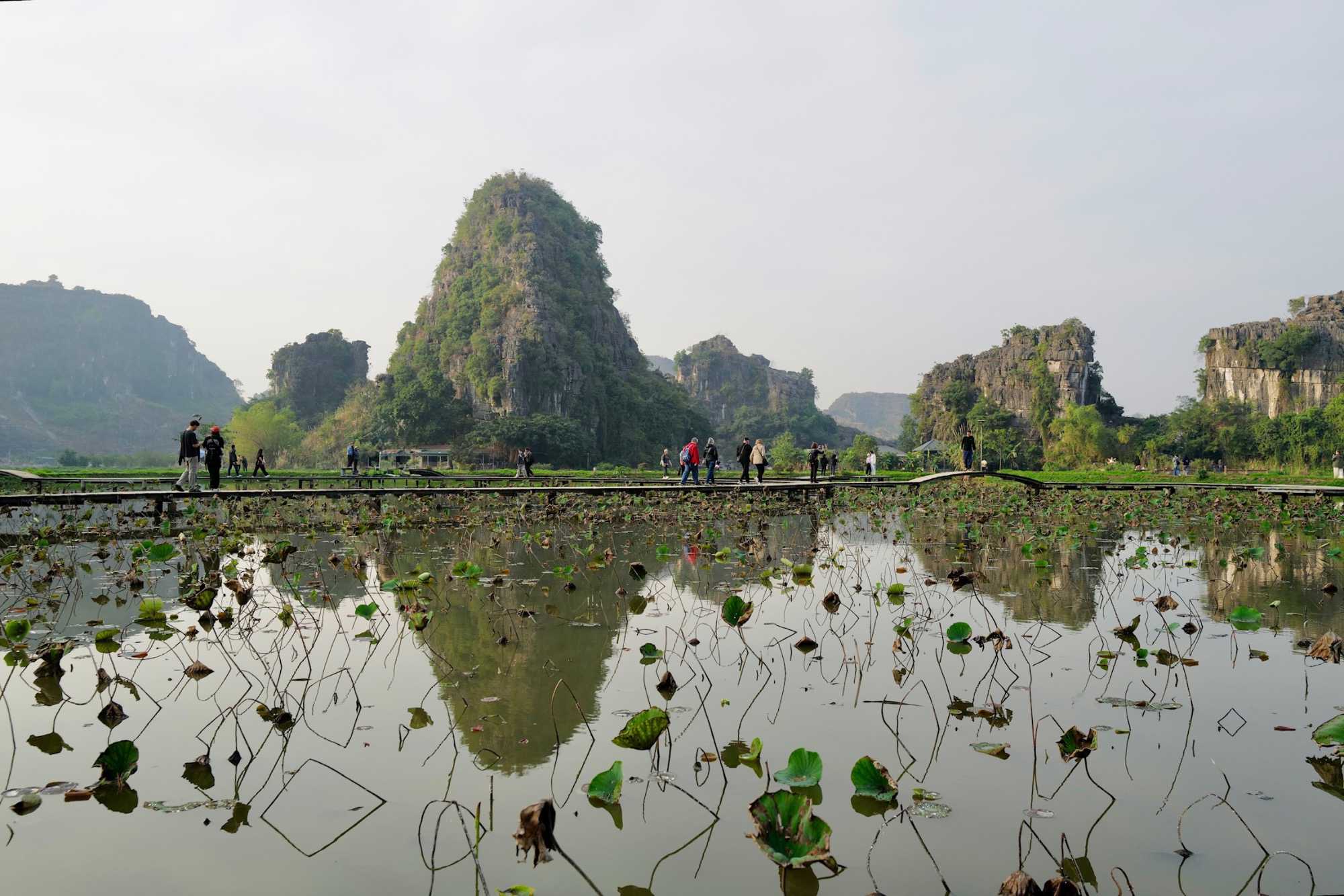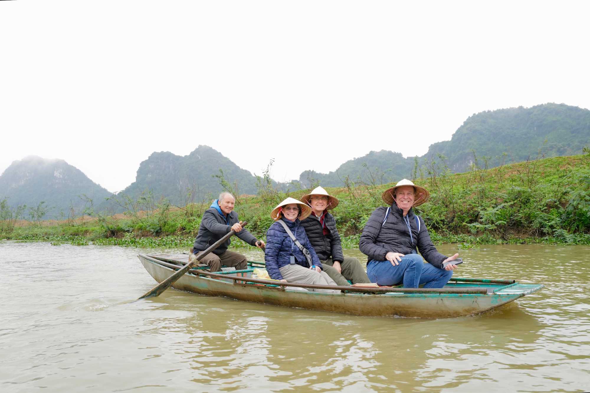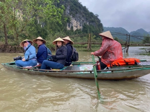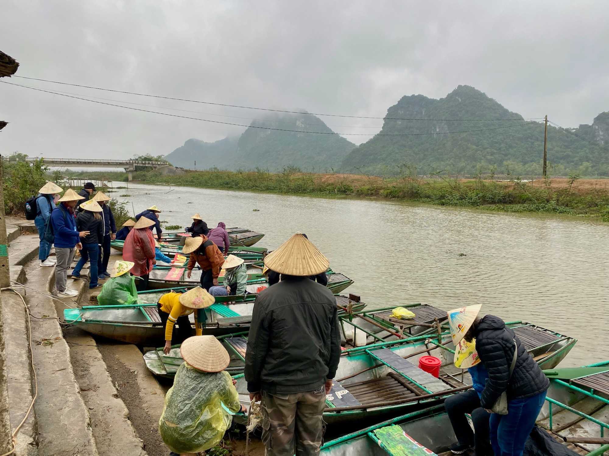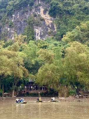 La chance tourne de notre coté, et c’est avec les bras grands ouverts que nous accueillons cette journée pour débuter notre découverte de cette magnifique région de Ninh Binh. On se dirige vers le village de Van Lam, dans cette superbe réserve naturelle de Hoa Lu; aussi appelé la baie d’Halong terrestre; en raison de son relief avec de nombreuses collines calcaires recouverte d’une végétation luxuriante. On y retrouvent une succession de criques naturelles reliées entre elles par des tunnels creusés par l’érosion.