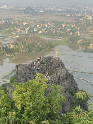 Puis, pour la digestion; durant que certains profiteront de se reposer et de bénéficier de tout ce que ce site hôtelier peut offrir, d’autres voyageurs partiront pour une excursion pour atteindre le sommet de l’une de ces fameuses collines, en gravissant plus de 500 marches pour atteindre le sommet de Hang Mua. L’effort est récompensé; la vue sur toute la région, ces paysages pittoresques, petits ilots rocailleux et les rizières inondées, est sublime; nos yeux contemplent cette beauté naturelle unique.