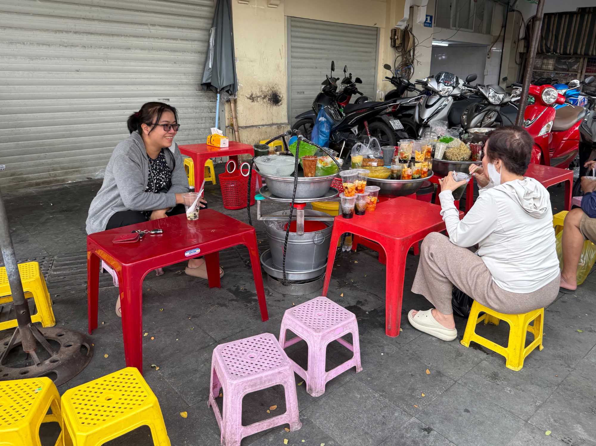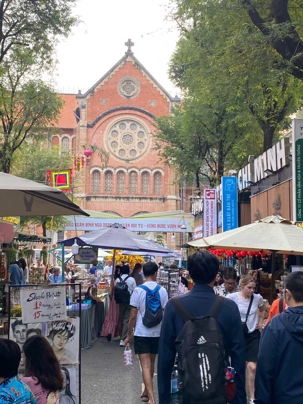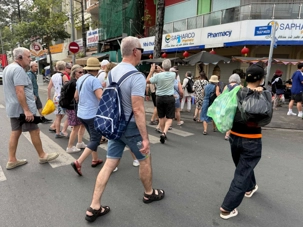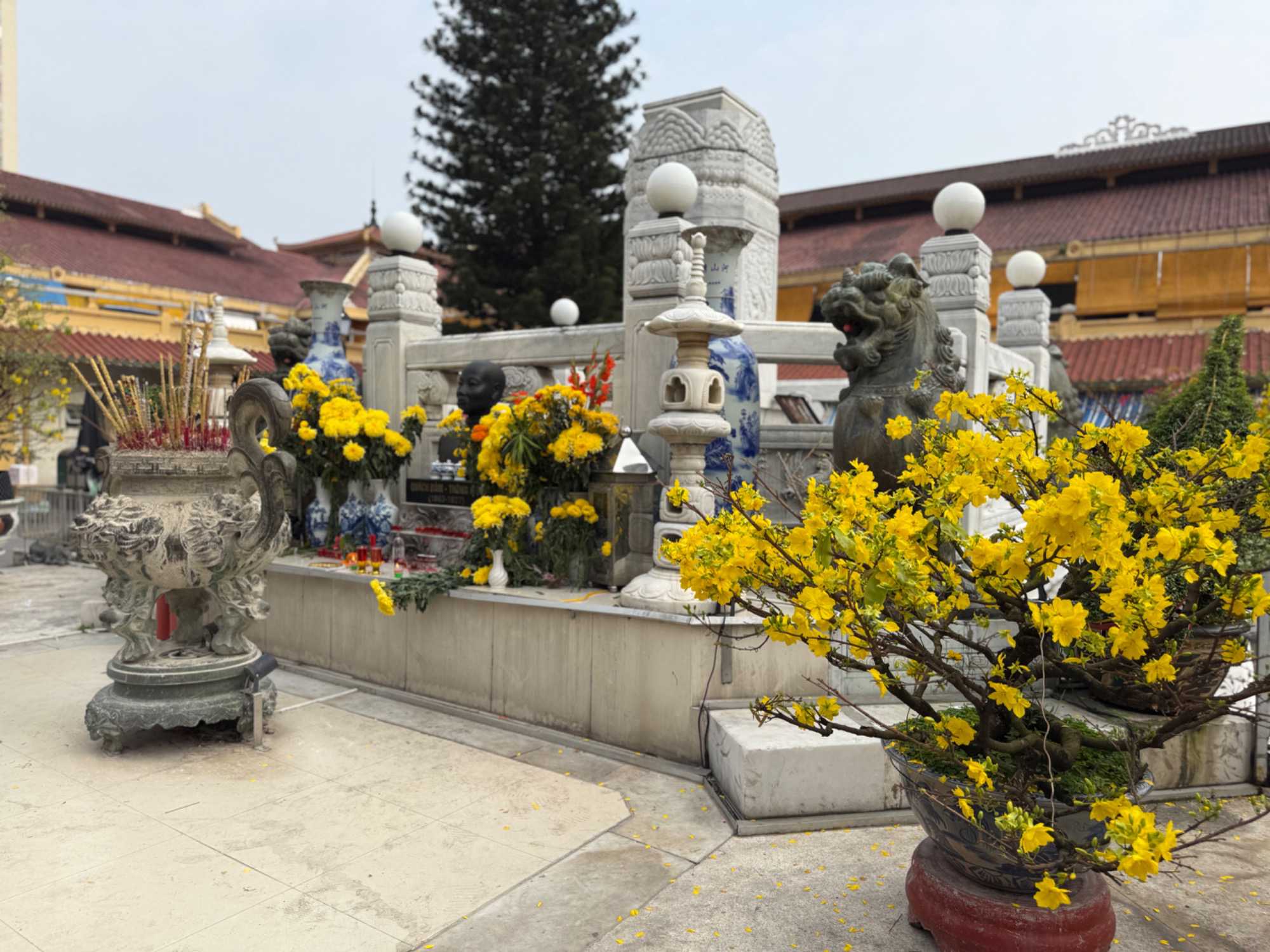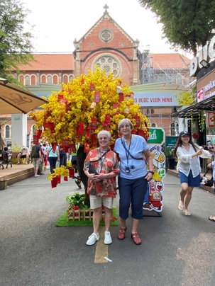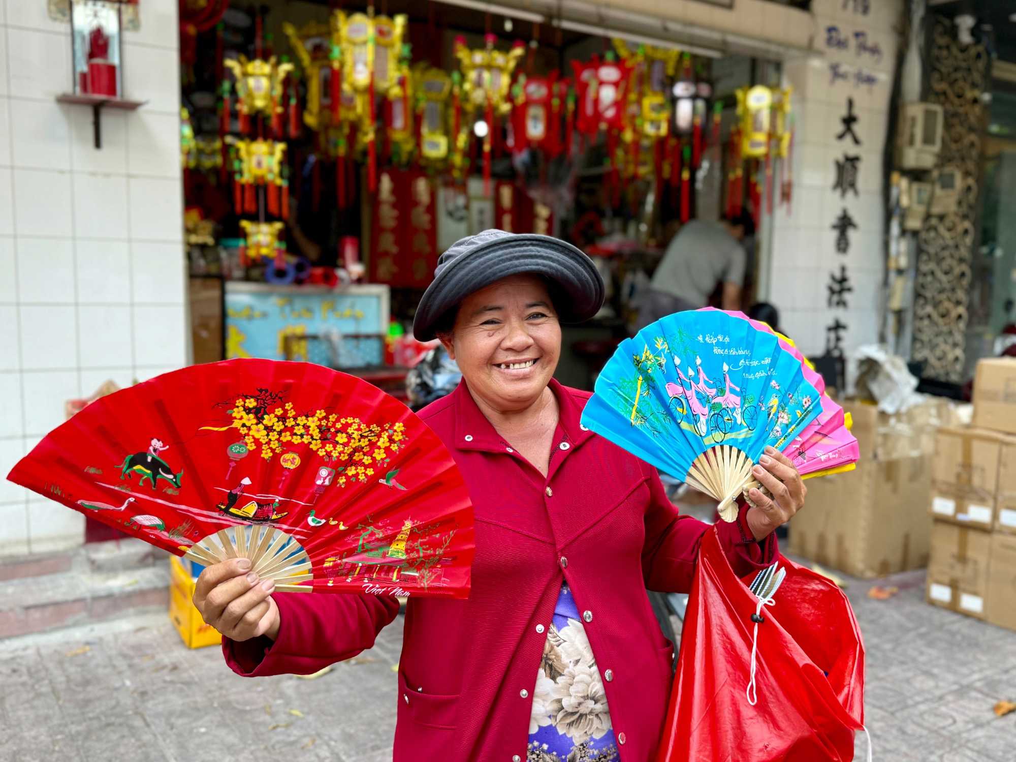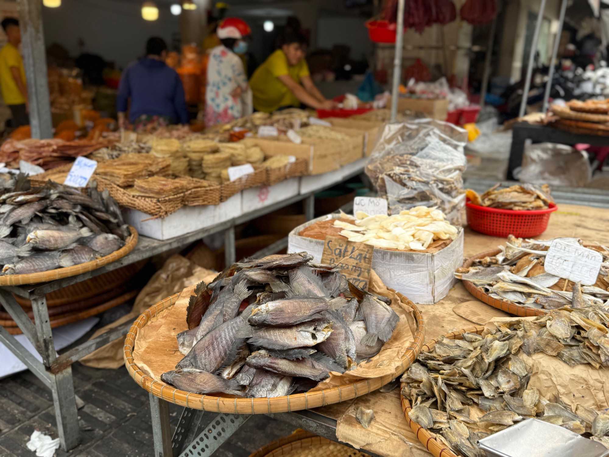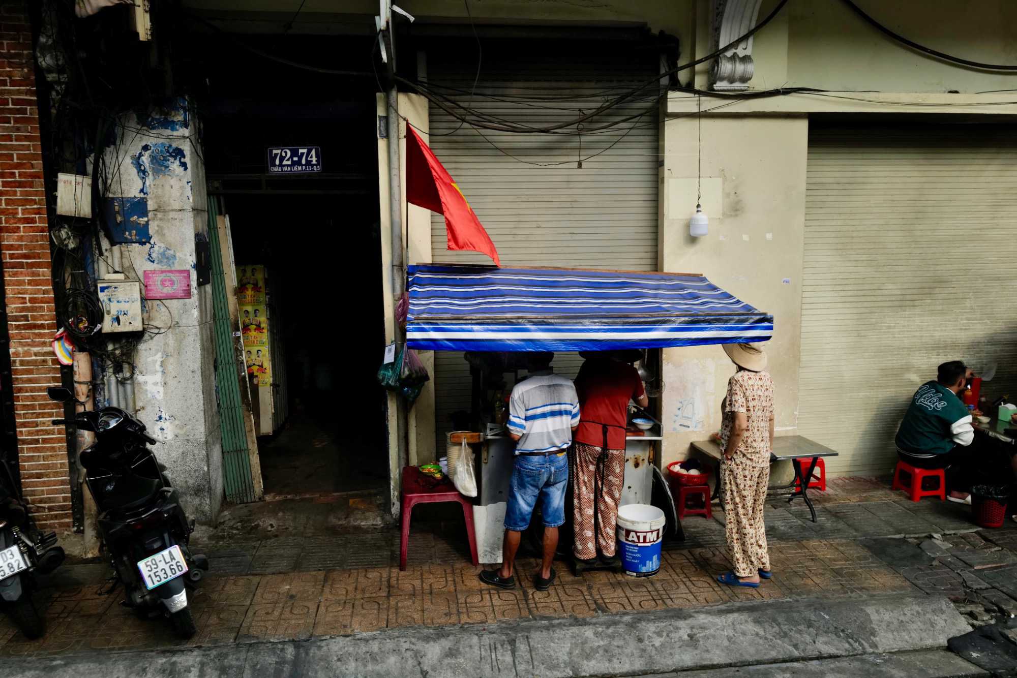 Nous débutons par une balade dans le quartier chinois, Cholon, où nous visitons le Marché Binh Tay. Ce vaste centre commercial traditionnel regroupe une multitude de petites échoppes tenues majoritairement par des commerçants d’origine chinoise. L’émerveillement est au rendez-vous devant l’impressionnante variété de produits : épices, tissus, herbes médicinales, objets traditionnels… un véritable labyrinthe organisé par sections — produits alimentaires, fruits, crevettes et poissons séchés. .. et objets de tout genre. L’endroit est animé par un va-et-vient incessant de marchands et de clients, à pied comme en scooter. La densité de la foule rend la circulation difficile !