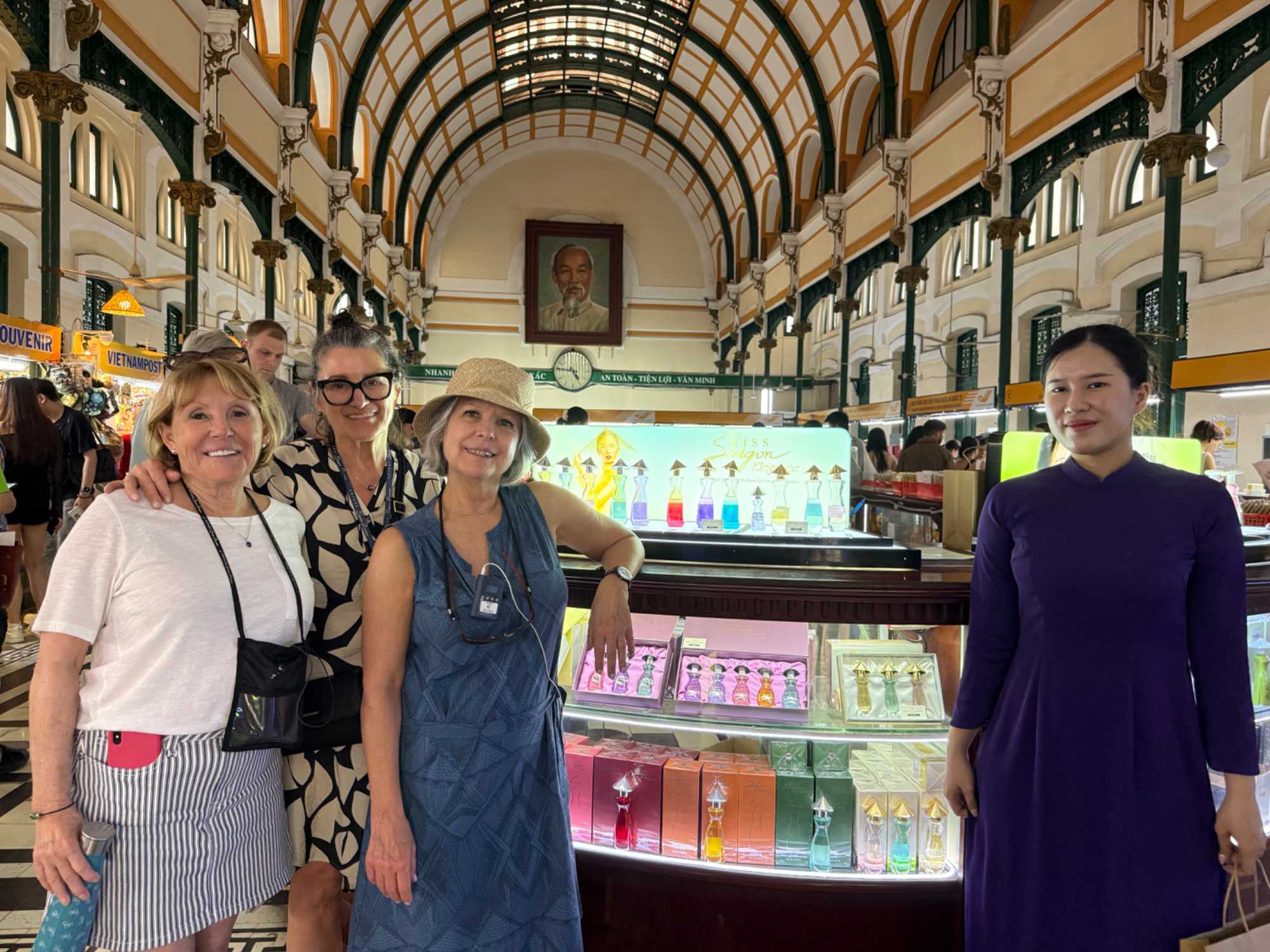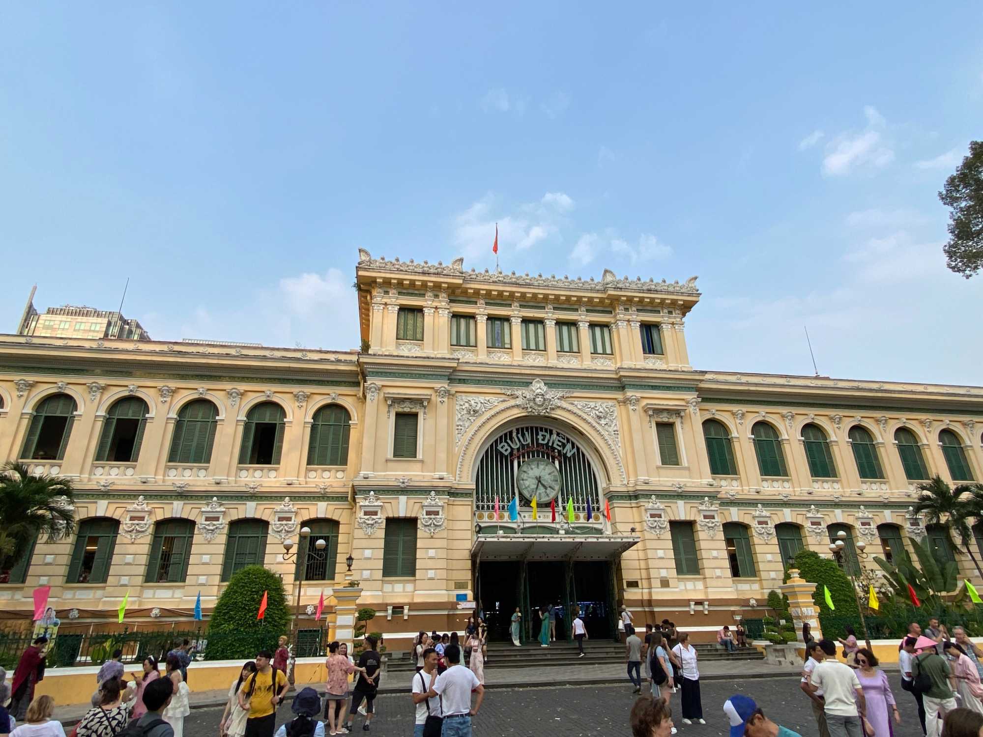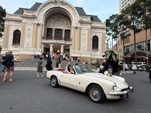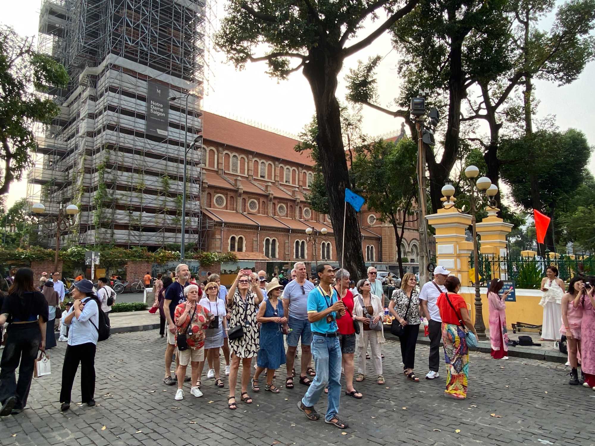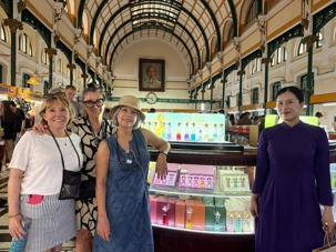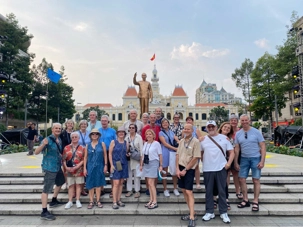 La découverte se poursuit dans le quartier colonial : nous apercevons le Palais de la Réunification, ainsi que plusieurs bâtiments aux façades jaunes datant de l’époque de l’occupation française : l’ancienne Banque de France, la Poste centrale de Saïgon, la Cathédrale Notre-Dame, la maison de la fumerie ( opium), batiment de la douane, batiment de la garde maritime, sans oublier le majestueux Hôtel de Ville. Nous apercevons également le toit de l’immeuble d’où les derniers Américains furent évacués en hélicoptère à la fin de la guerre.