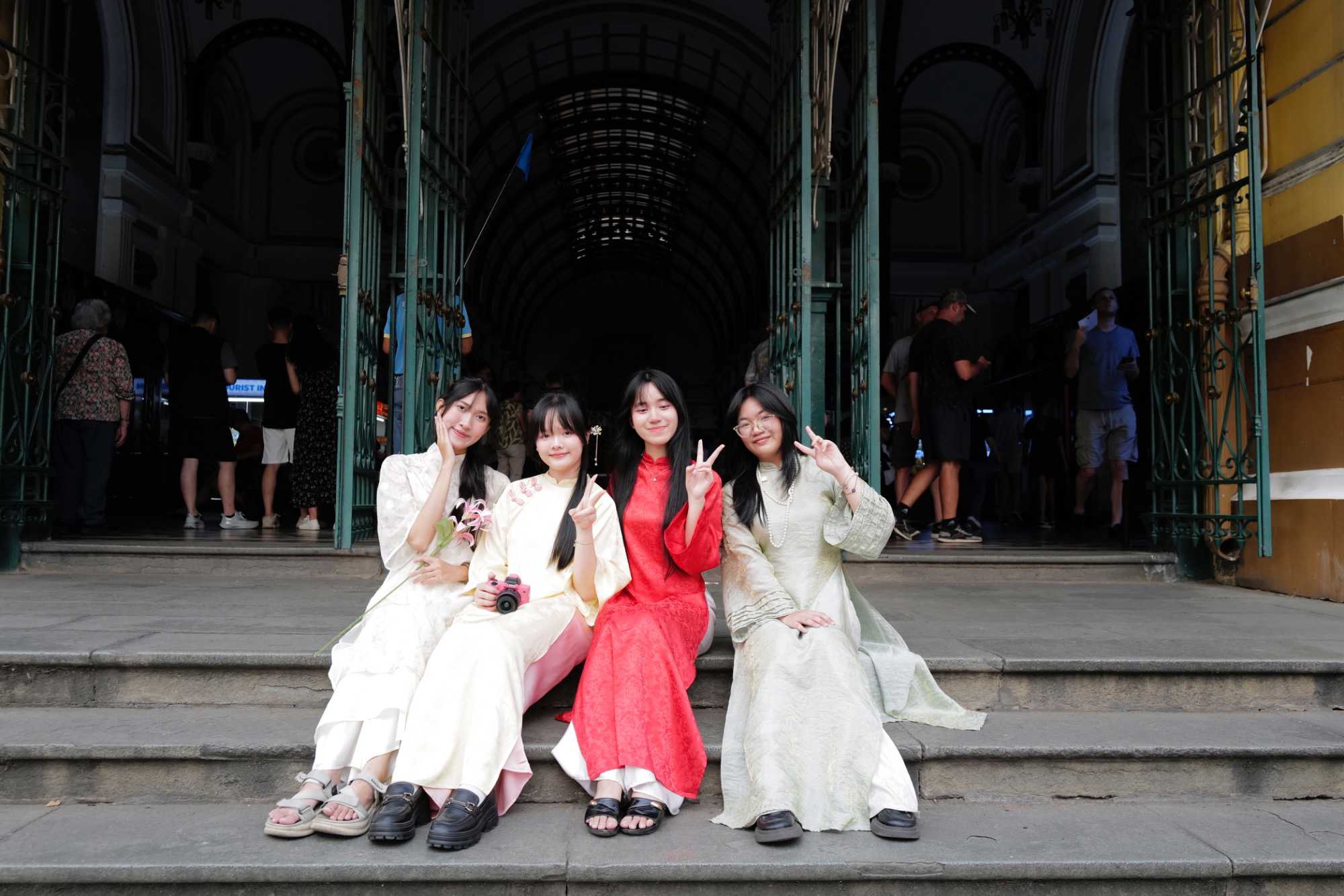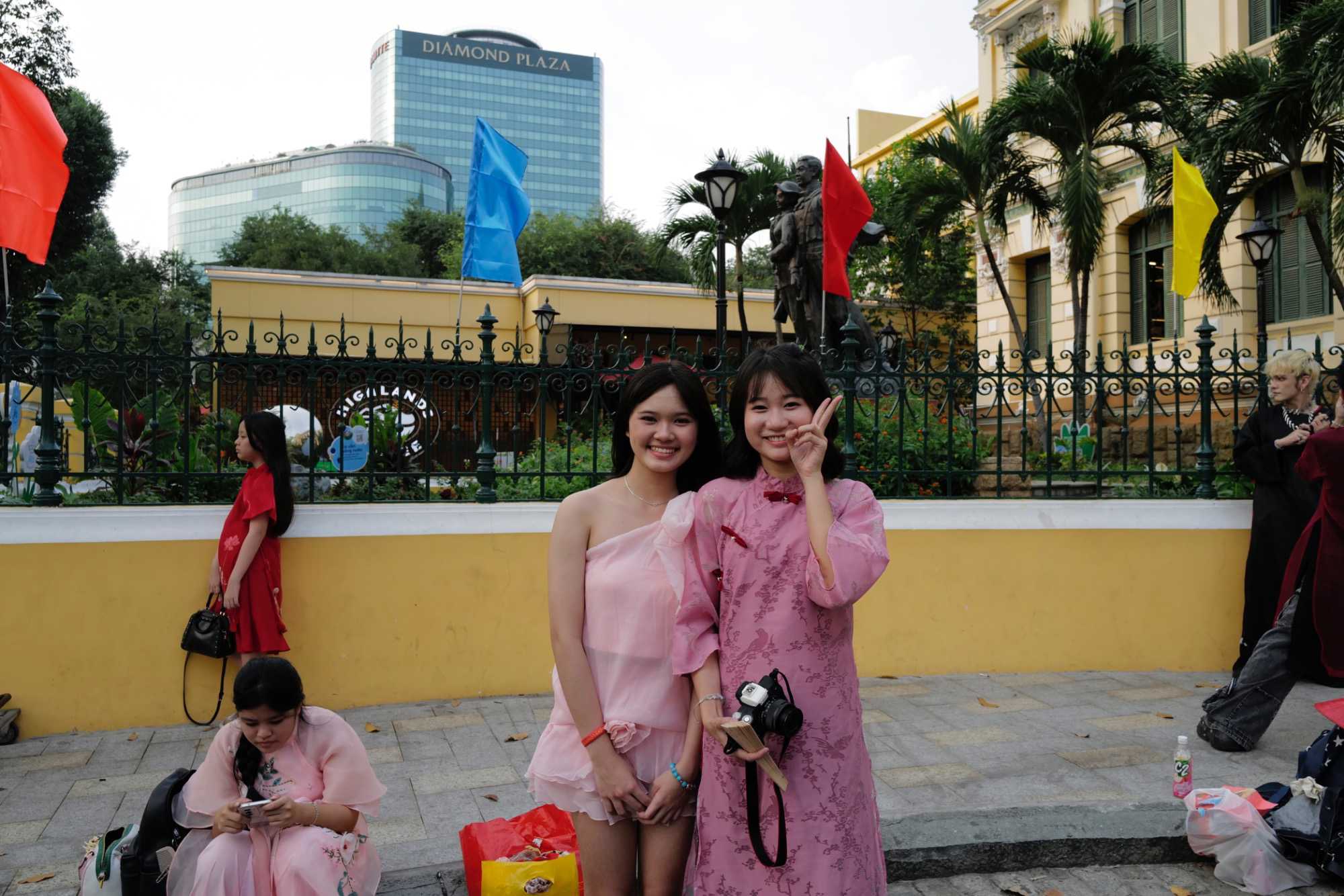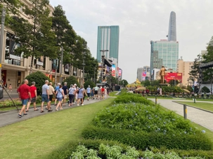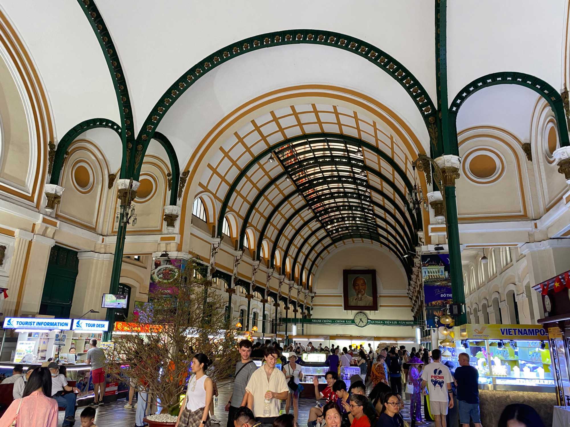 La découverte se poursuit dans le quartier colonial : nous apercevons le Palais de la Réunification, ainsi que plusieurs bâtiments aux façades jaunes datant de l’époque de l’occupation française : l’ancienne Banque de France, la Poste centrale de Saïgon, la Cathédrale Notre-Dame, la maison de la fumerie ( opium), batiment de la douane, batiment de la garde maritime, sans oublier le majestueux Hôtel de Ville. Nous apercevons également le toit de l’immeuble d’où les derniers Américains furent évacués en hélicoptère à la fin de la guerre.