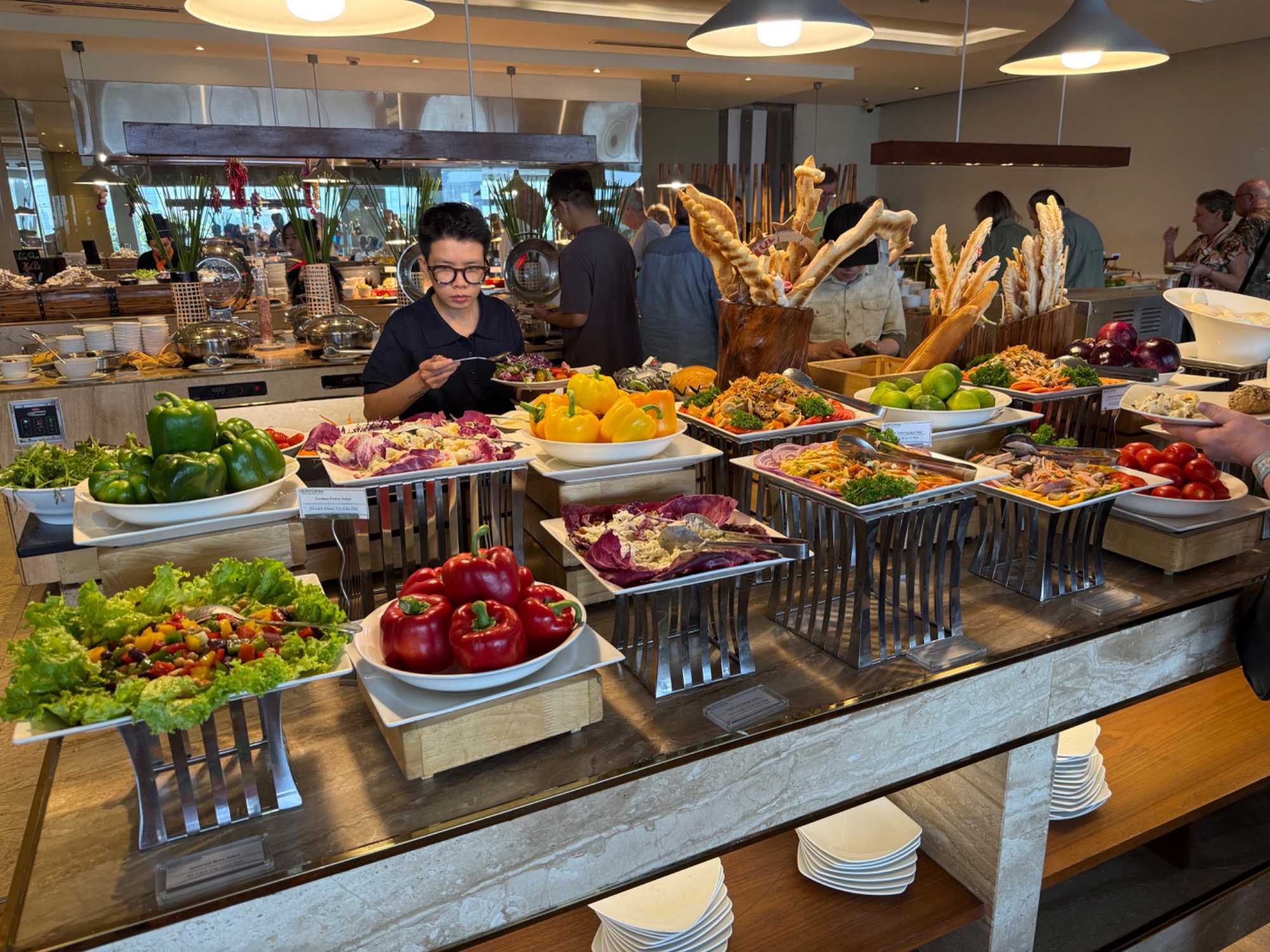 Au moment de partager le repas du midi, nous avons rendez-vous avec le personnel de CroisiEurope afin de préparer la deuxième phase de notre voyage : le début de notre croisière sur le Mékong, en direction du Cambodge.