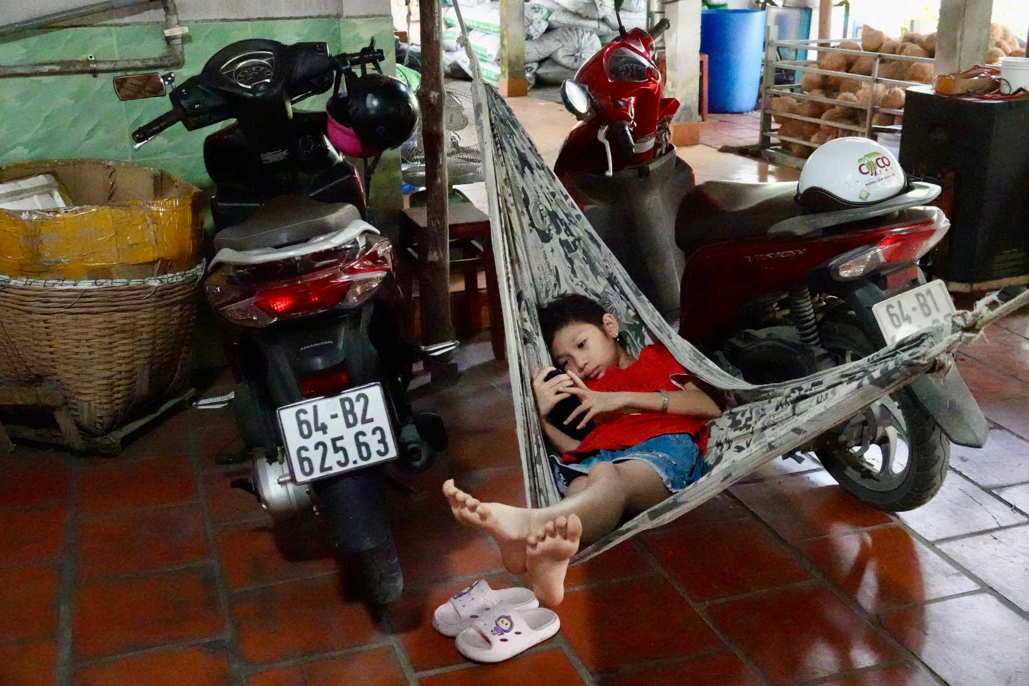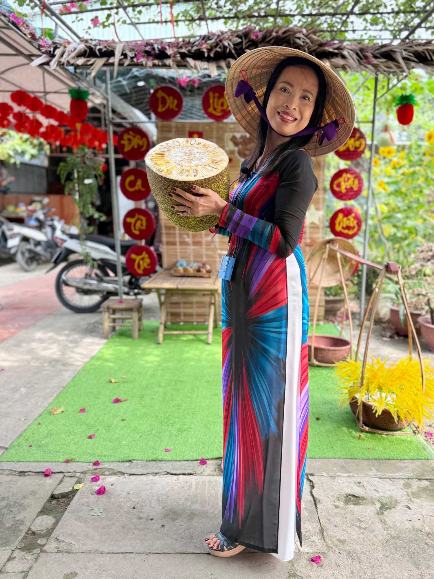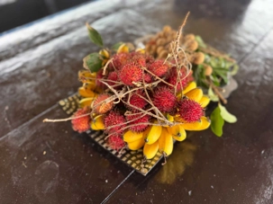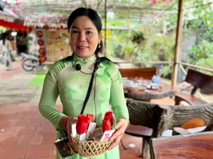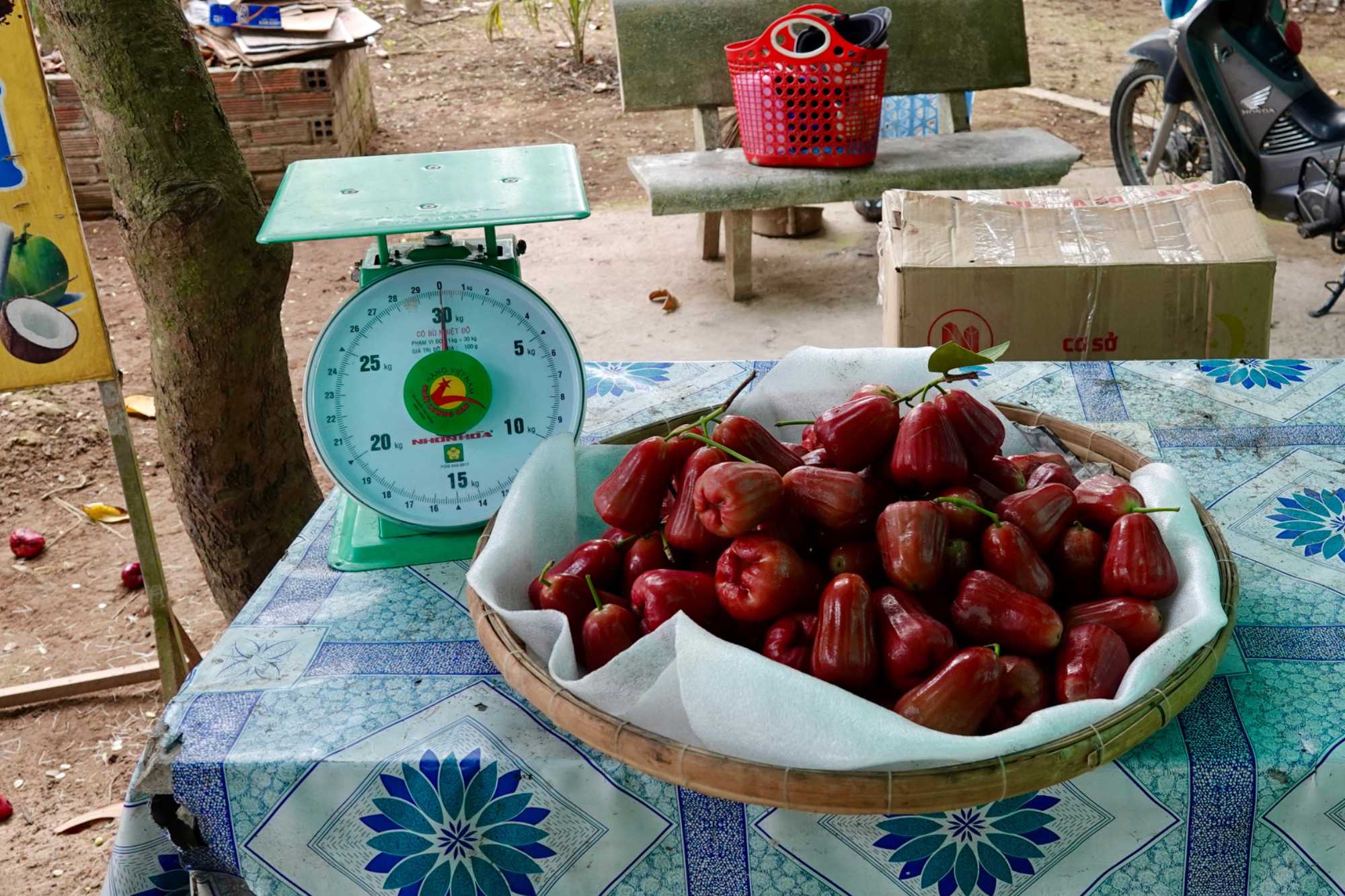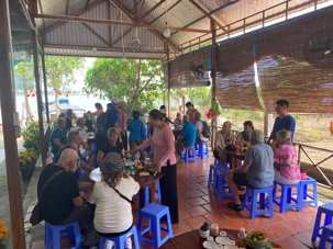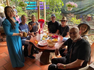 En compagnie de notre nouvelle guide local n nous conduit sur l’île du dragon Thoi Son, la plus grande des quatre île situé en face de la ville de My Tho, pour une dégustation de fruits tropicaux qui abondent dans cette région si fertile. On prend place dans un petit restaurant pour savourer le pamplemousse, le jackfruit, la mangue, la sapotille, l’ananas et