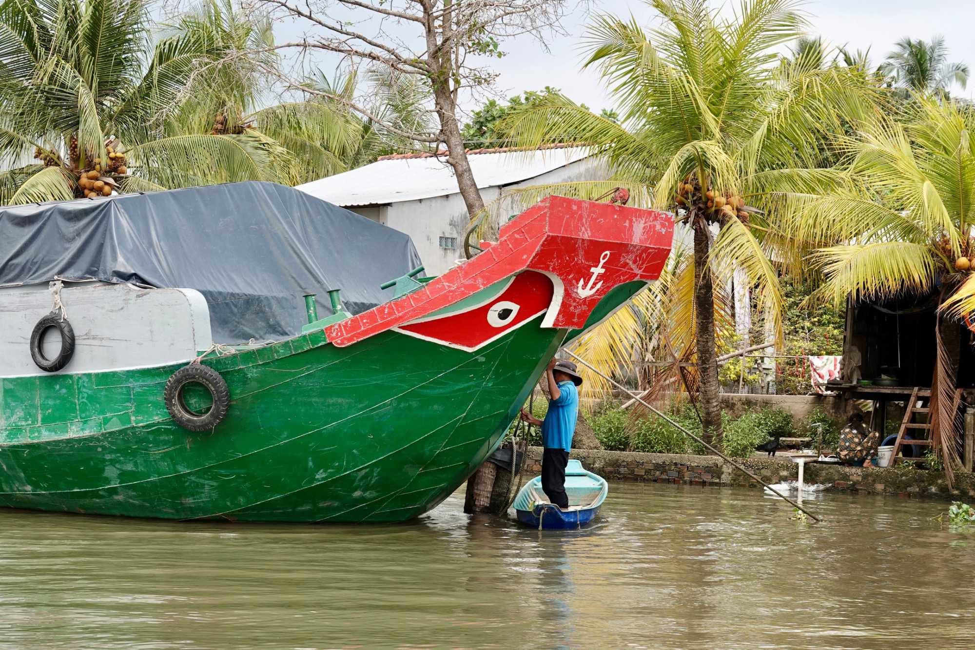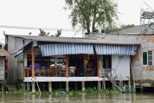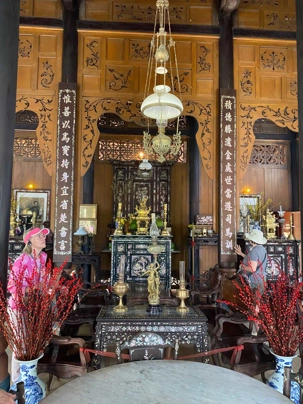 En après-midi, nous reprenons un petit bateau pour explorer la ville Cai Be pour y visiter une maison traditionnelle Ba Duc, dans le style franco-vietnamien. Intéressant d'observer l'architecture traditionnel.