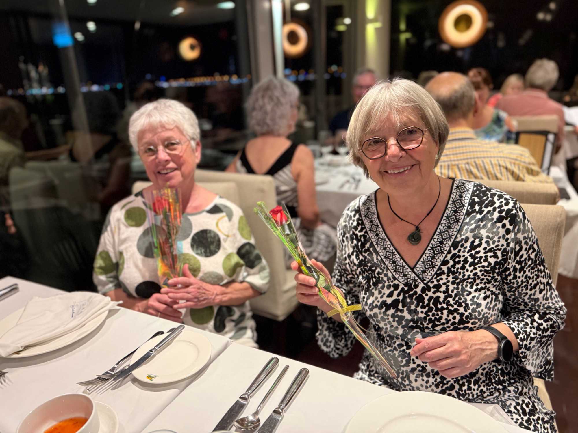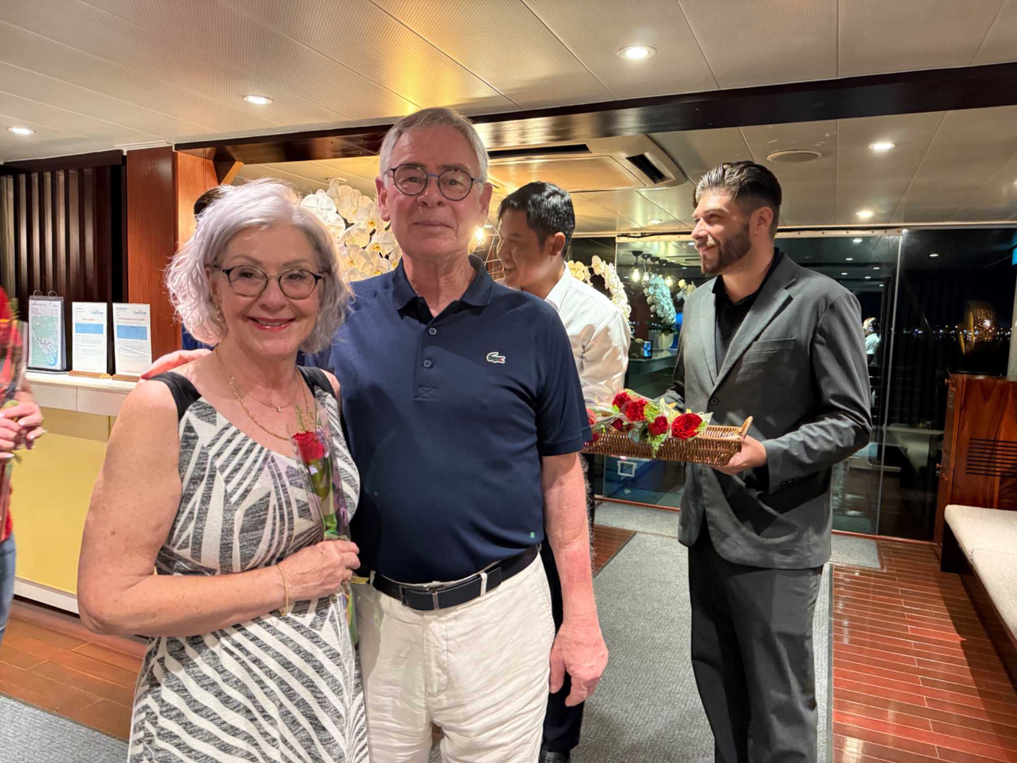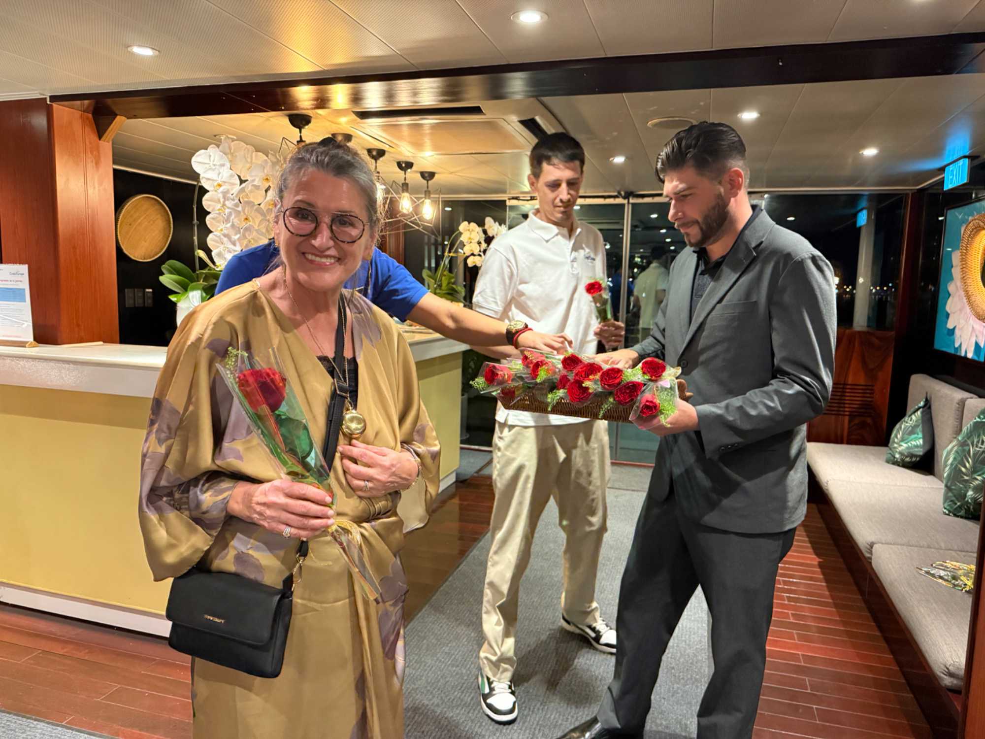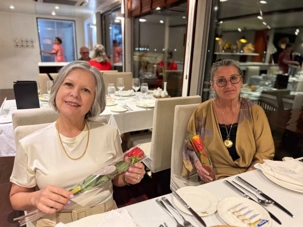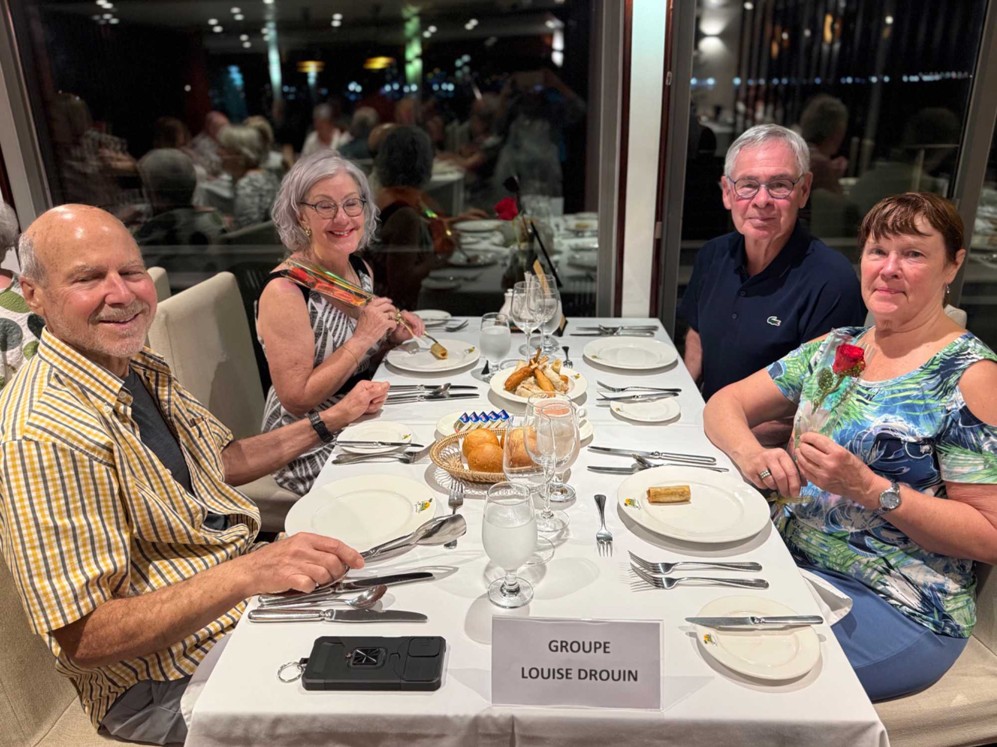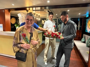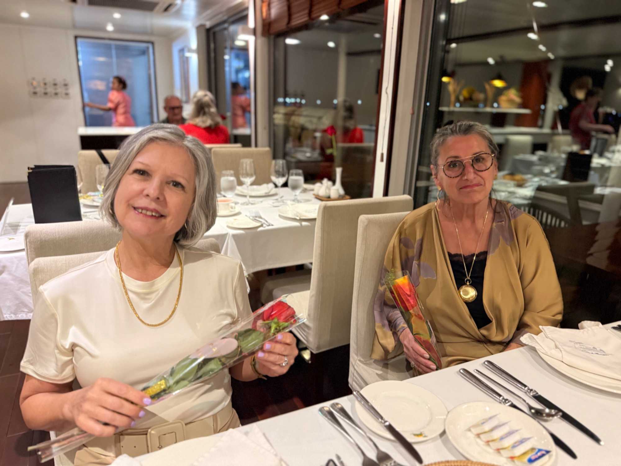 S’en suit le partage du repas, où toutes les femmes reçoivent une rose offert par le directeur de croisière. Une délicatesse généreusement appréciée de toutes!