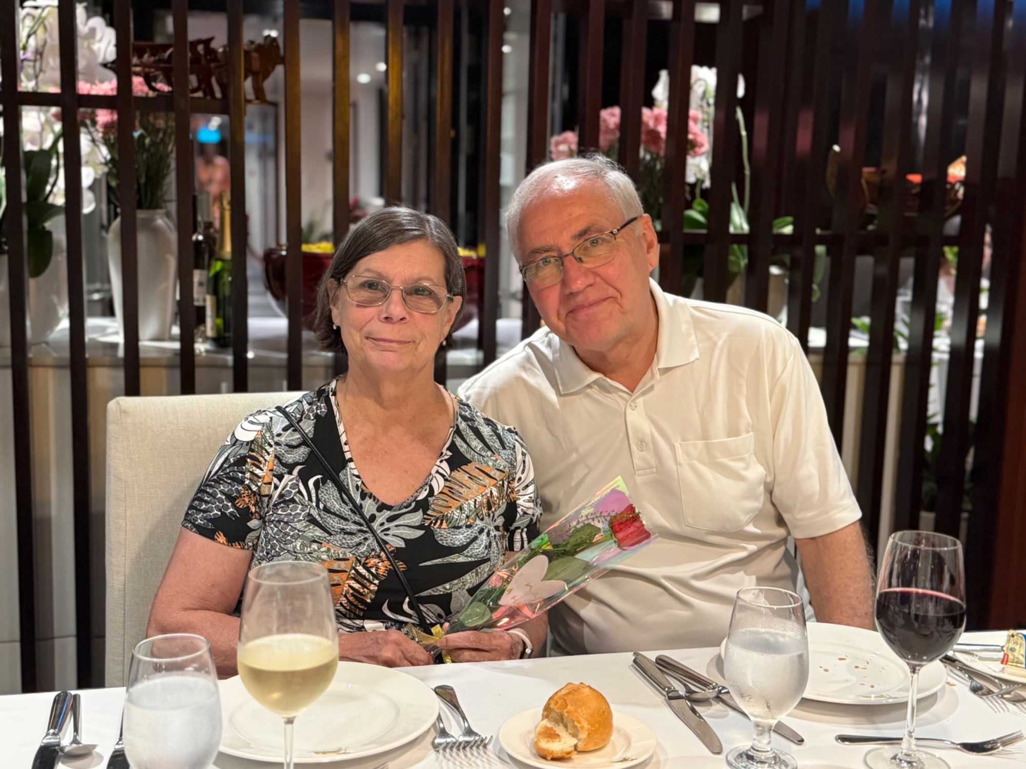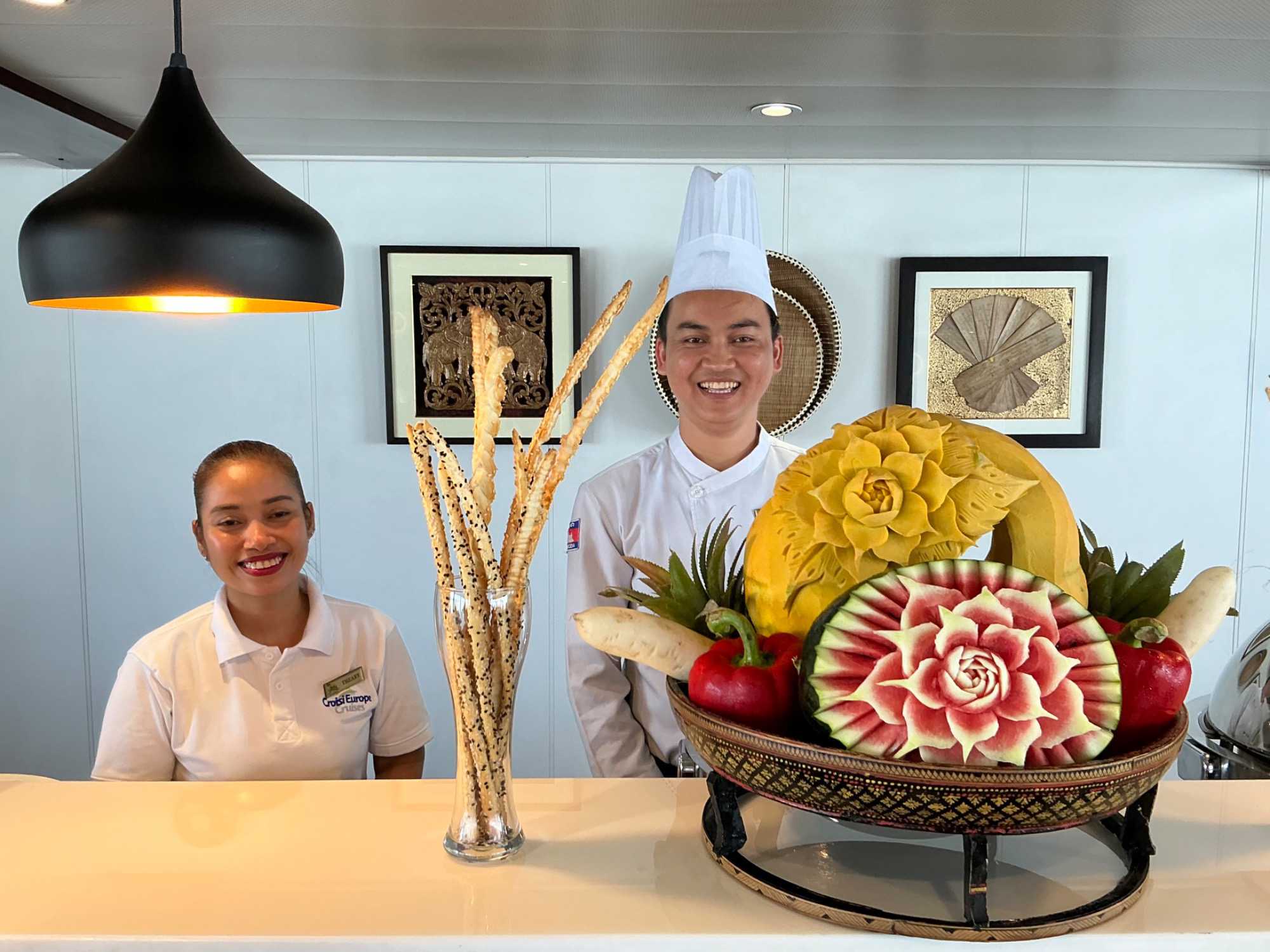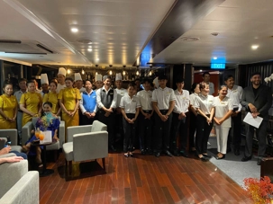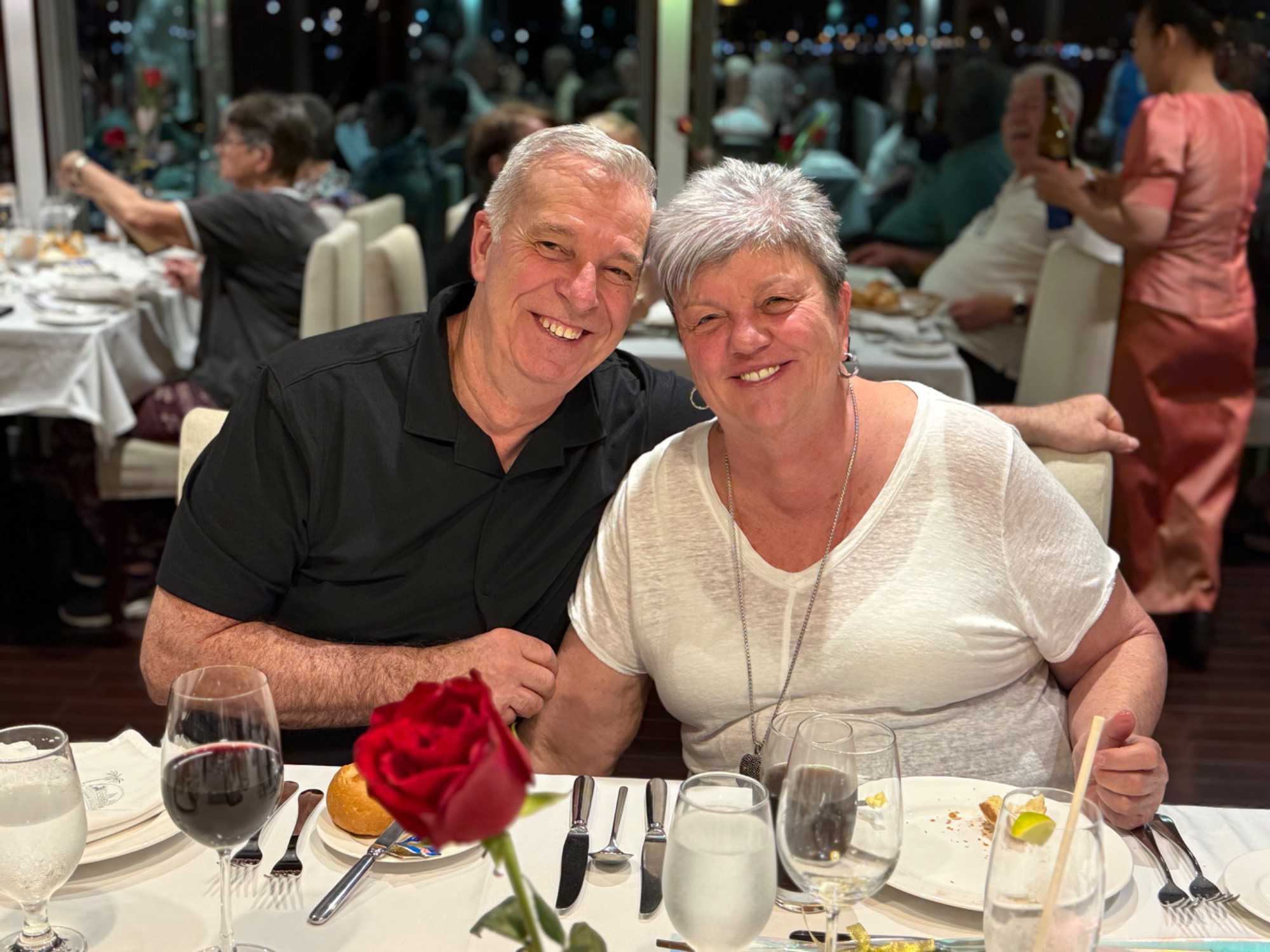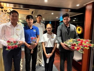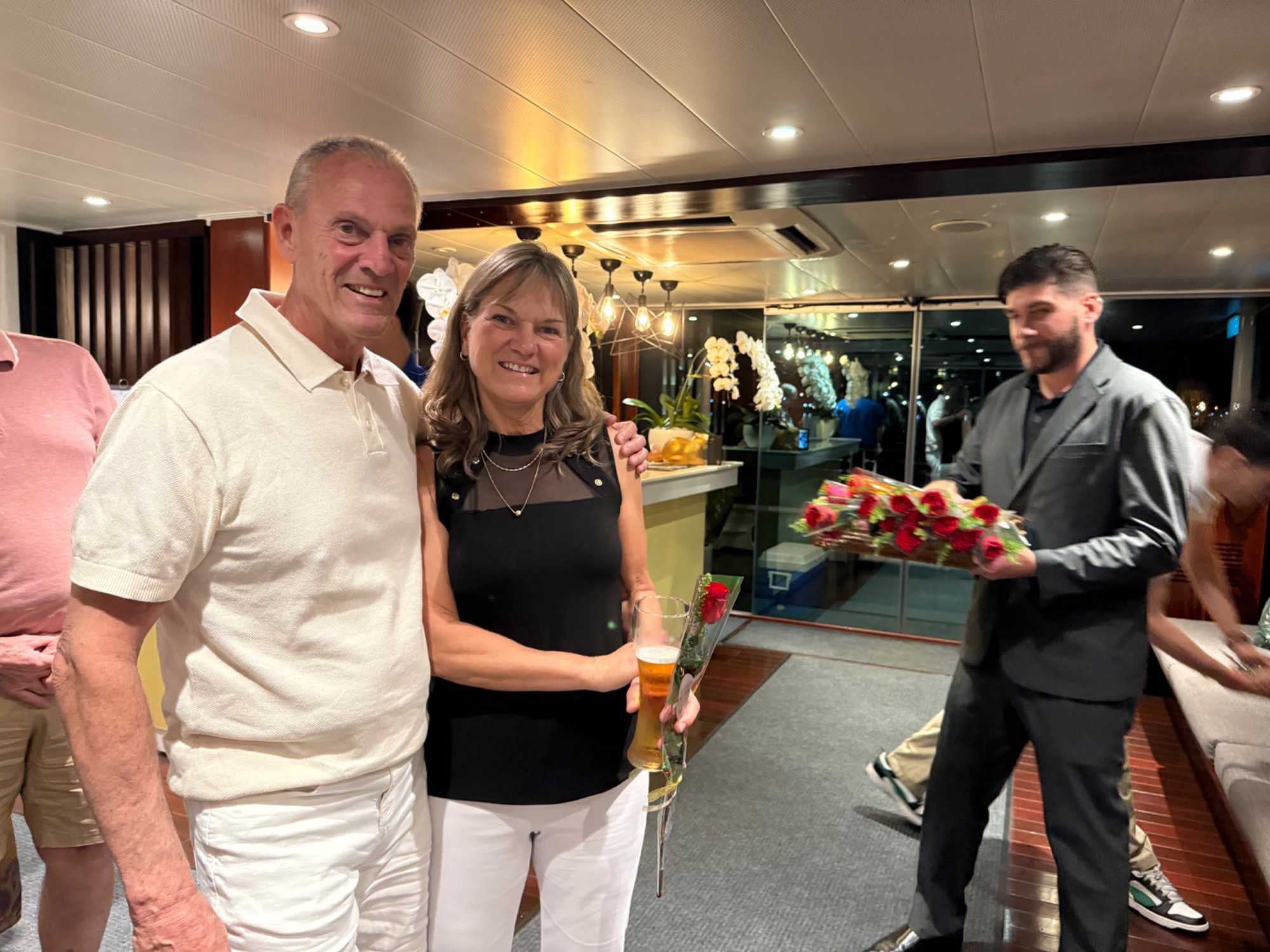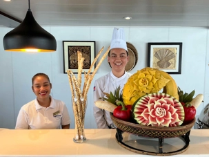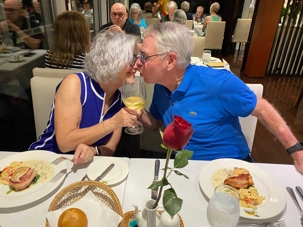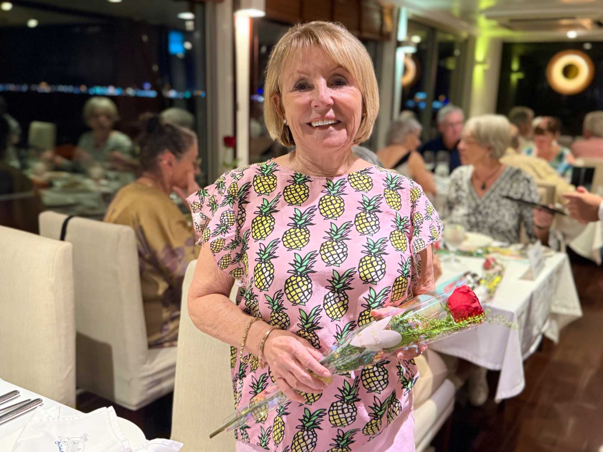 S’en suit le partage du repas, où toutes les femmes reçoivent une rose offert par le directeur de croisière. Une délicatesse généreusement appréciée de toutes!