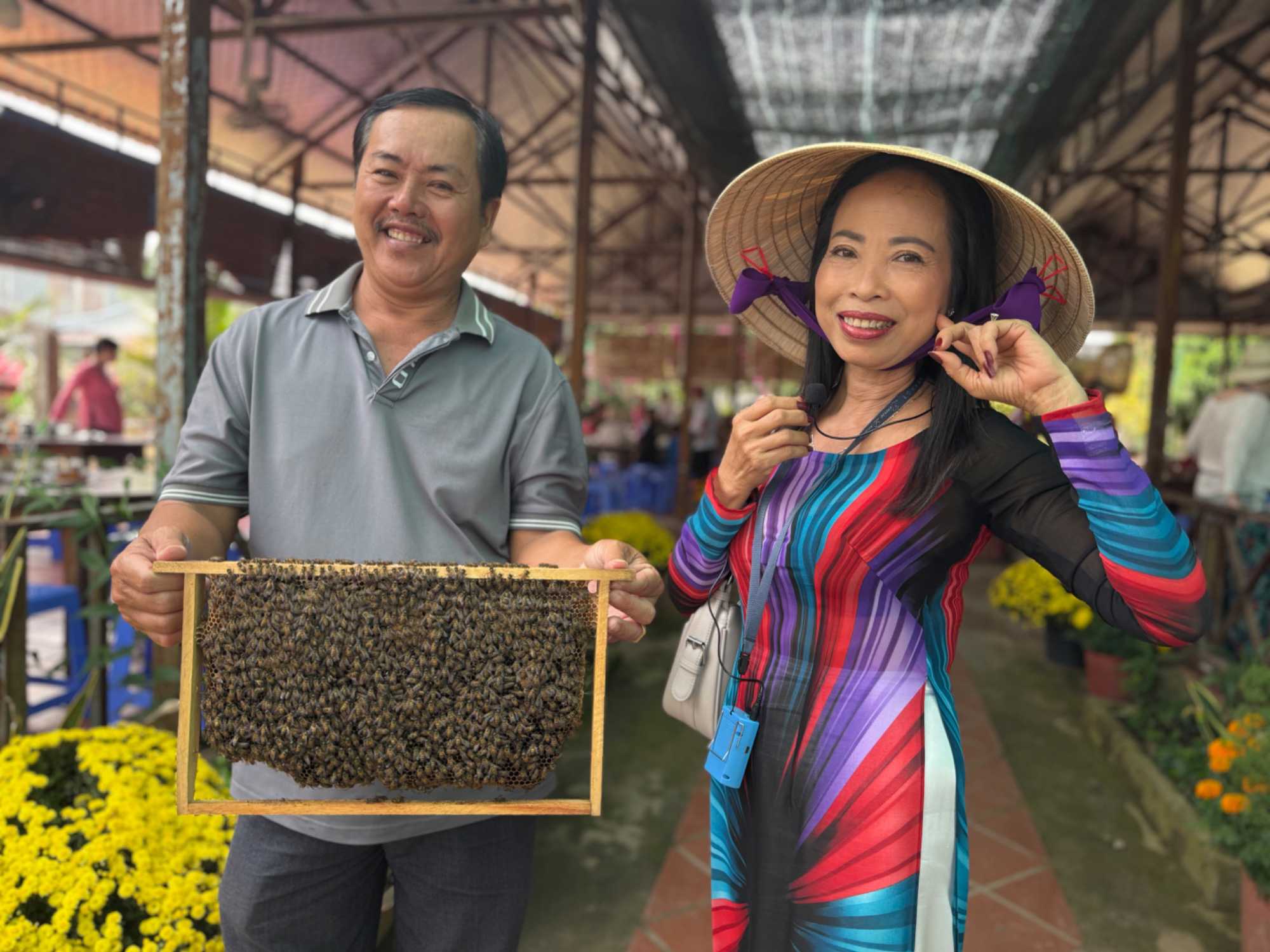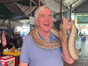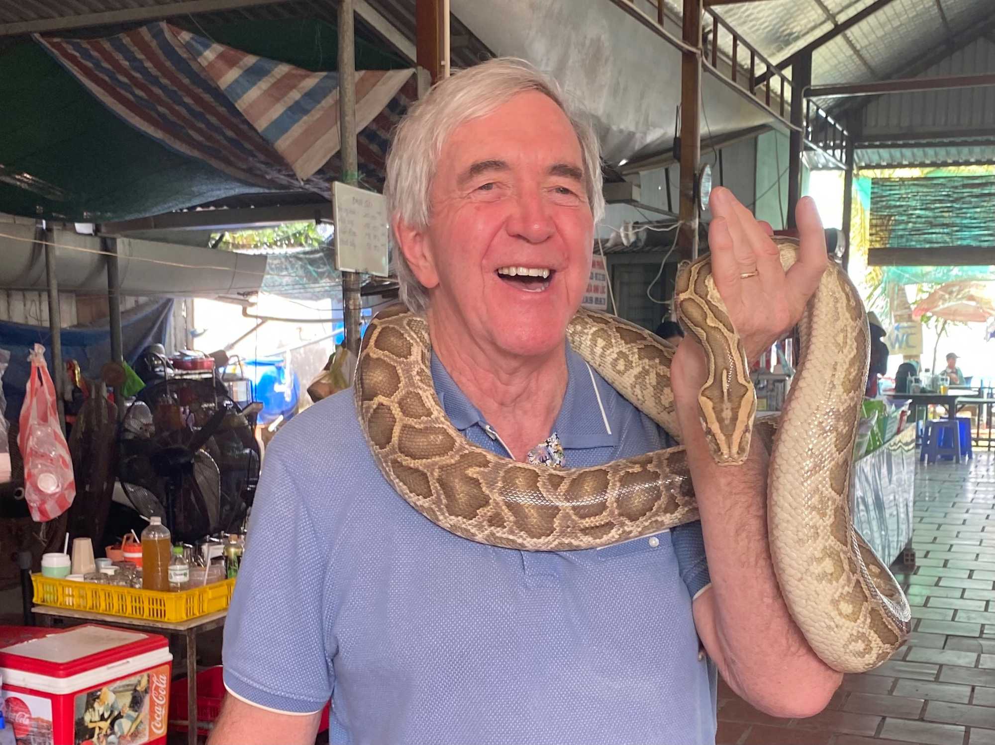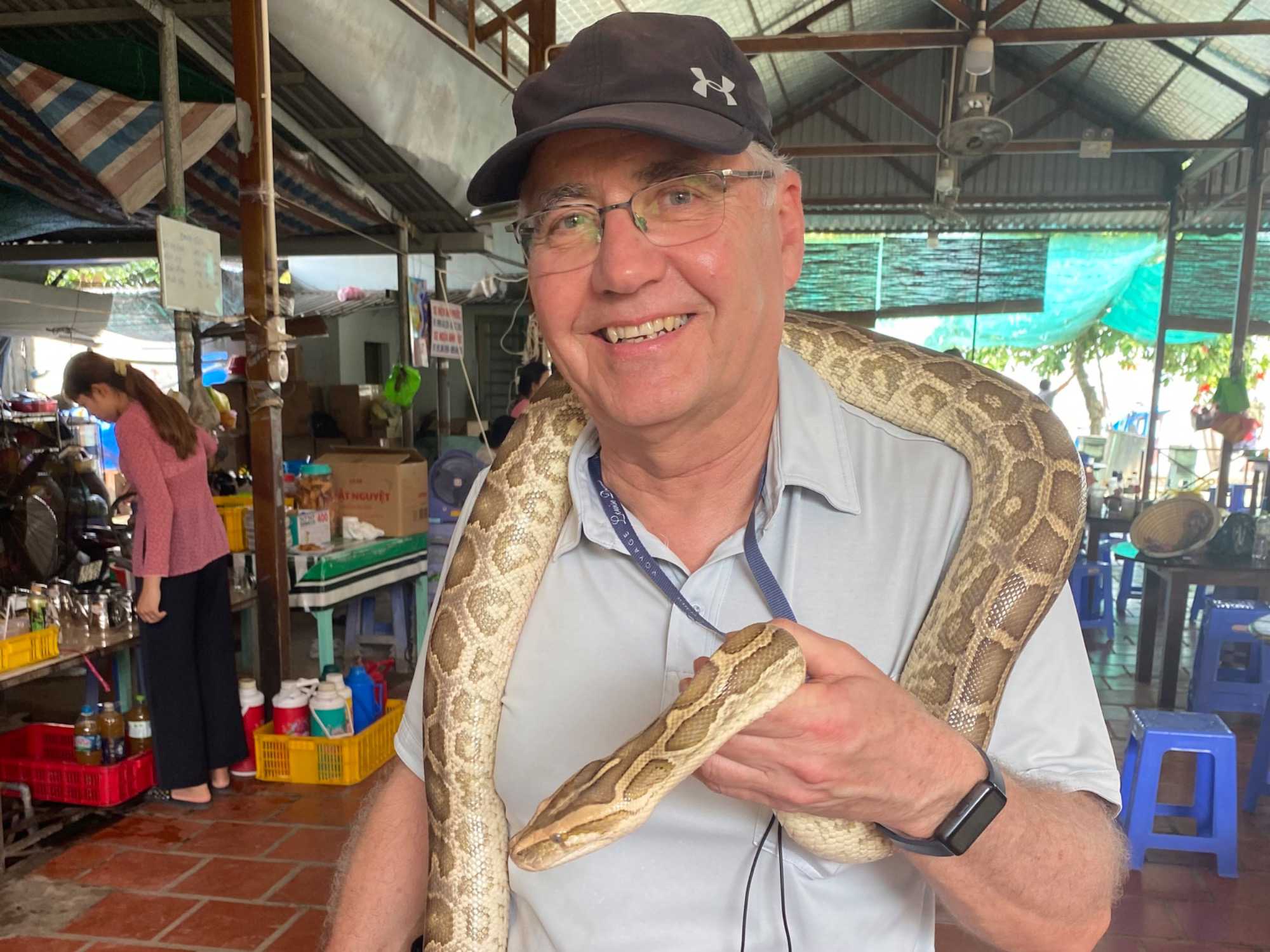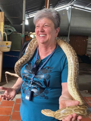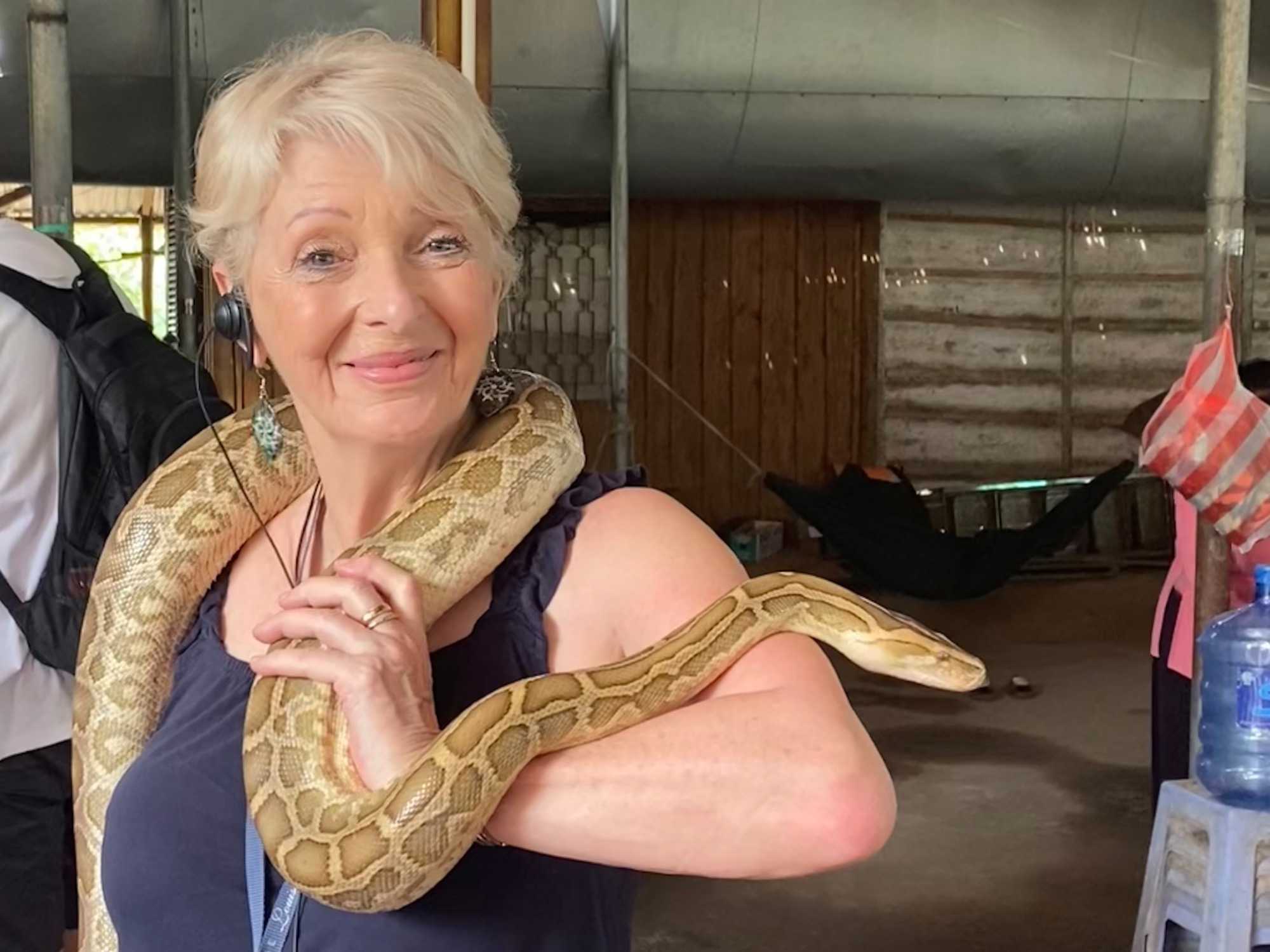 Nous poursuivons notre exploration de la région en allant chez un apiculteur, qui nous accueille pour la dégustation de ses produits aux multiples vertus. Nous dégustons un thé au miel, auquel nous y ajoutons une demi-cuillère de la précieuse gelée royale, du propolis (pollen) et du miel, tout en croustillant des bananes séchées. Après explications de tous les bienfaits de cette médecine naturelle aux propriétés de jouvence, nous en profitons pour faire quelques achats pour bénéficier de cette opportunité onéreuse à des prix très bas. Avec la présence de plusieurs reptiles de la région, quoi de mieux que en observer de plus près. Certains repousserons leur limite en se laissant enlacer par un énorme serpent.