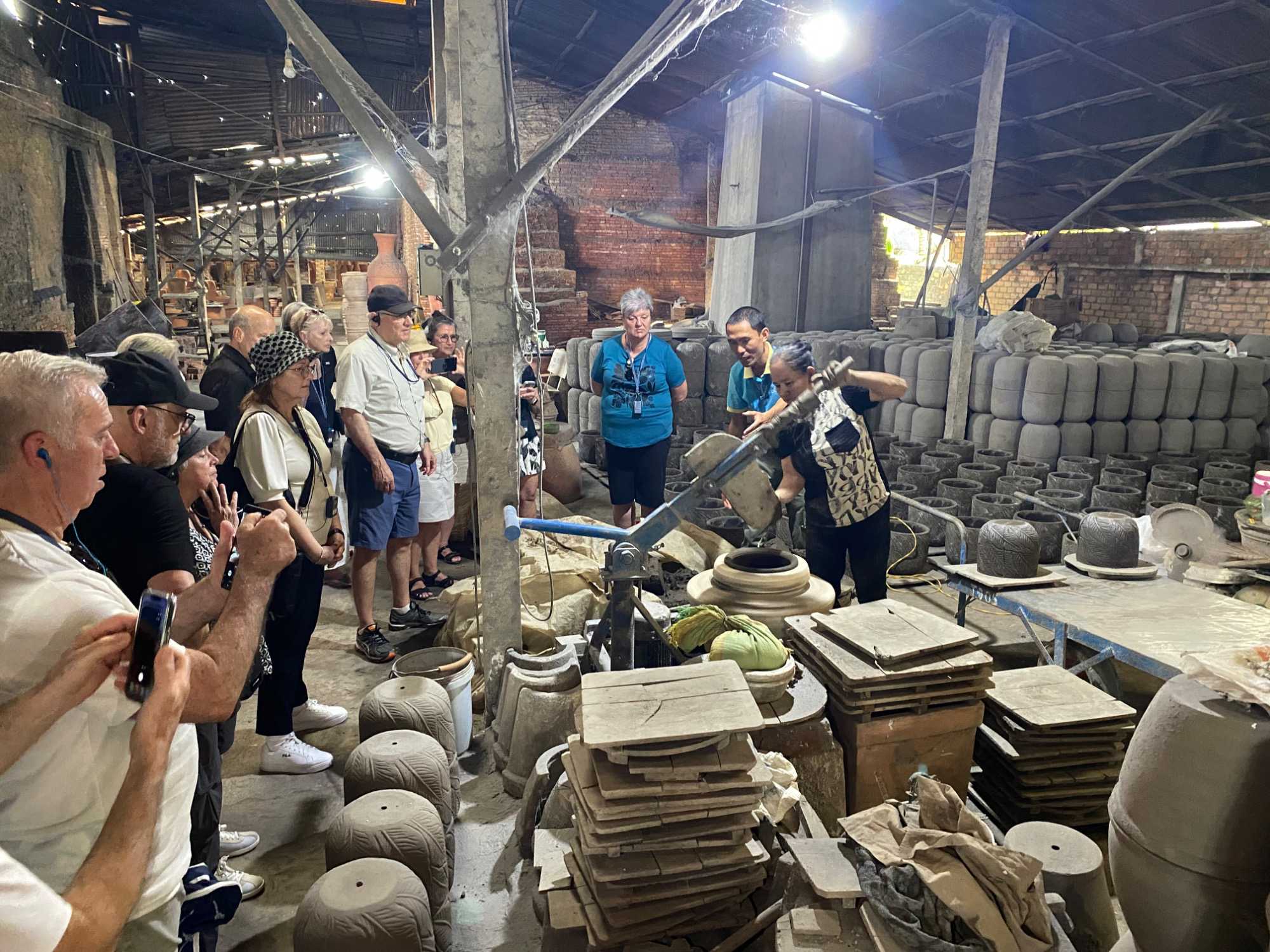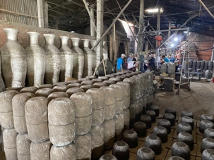 Et juste avant de regagner notre bateau, nous effectuons un dernière visite à une briqueterie, pour y connaitre les secrets de fabrication de tous les objets fait à base d’argile avec l’observation de ses gros fours alimentés par l’écorce de riz. Rien est perdu, tout est utilisé!