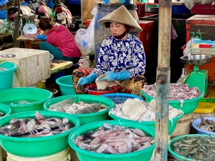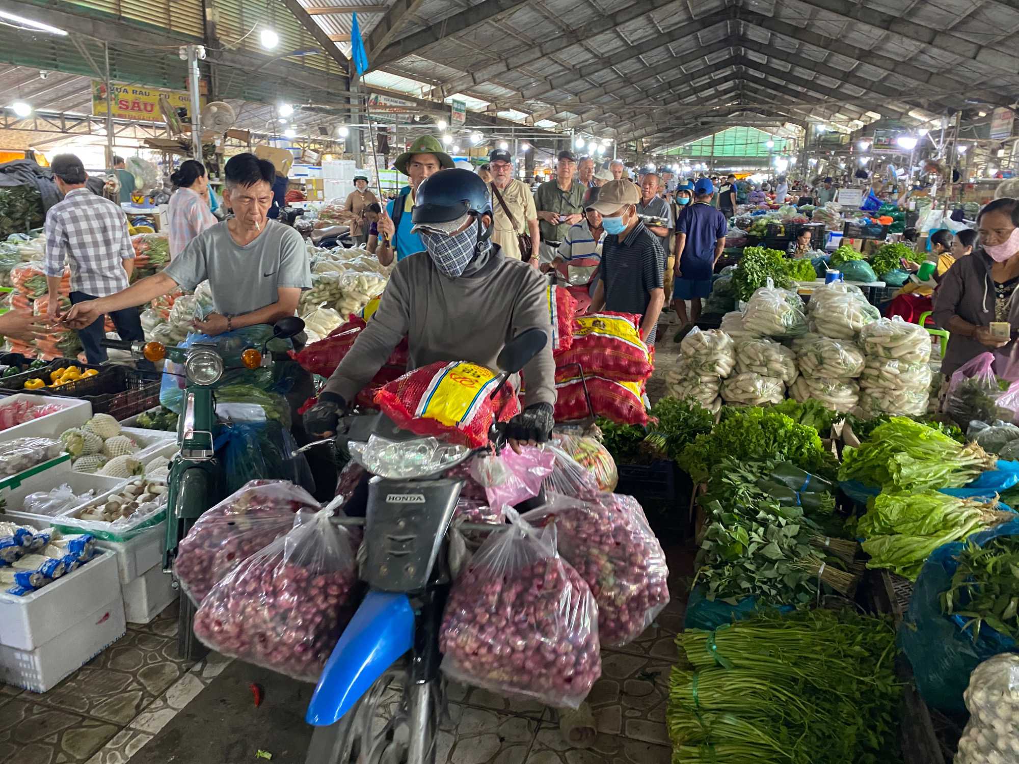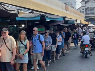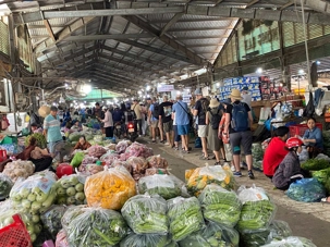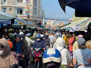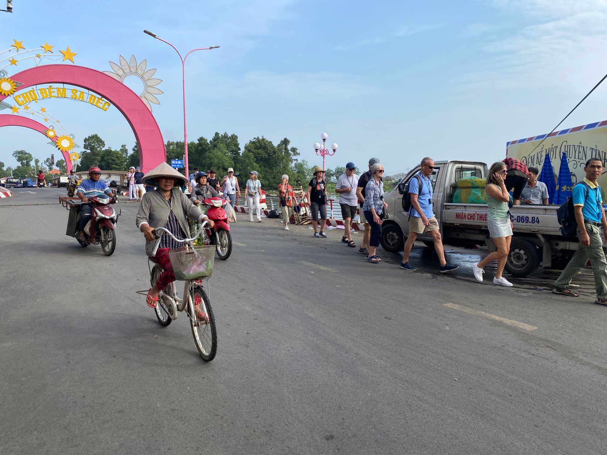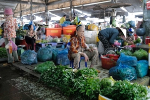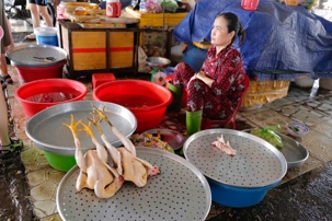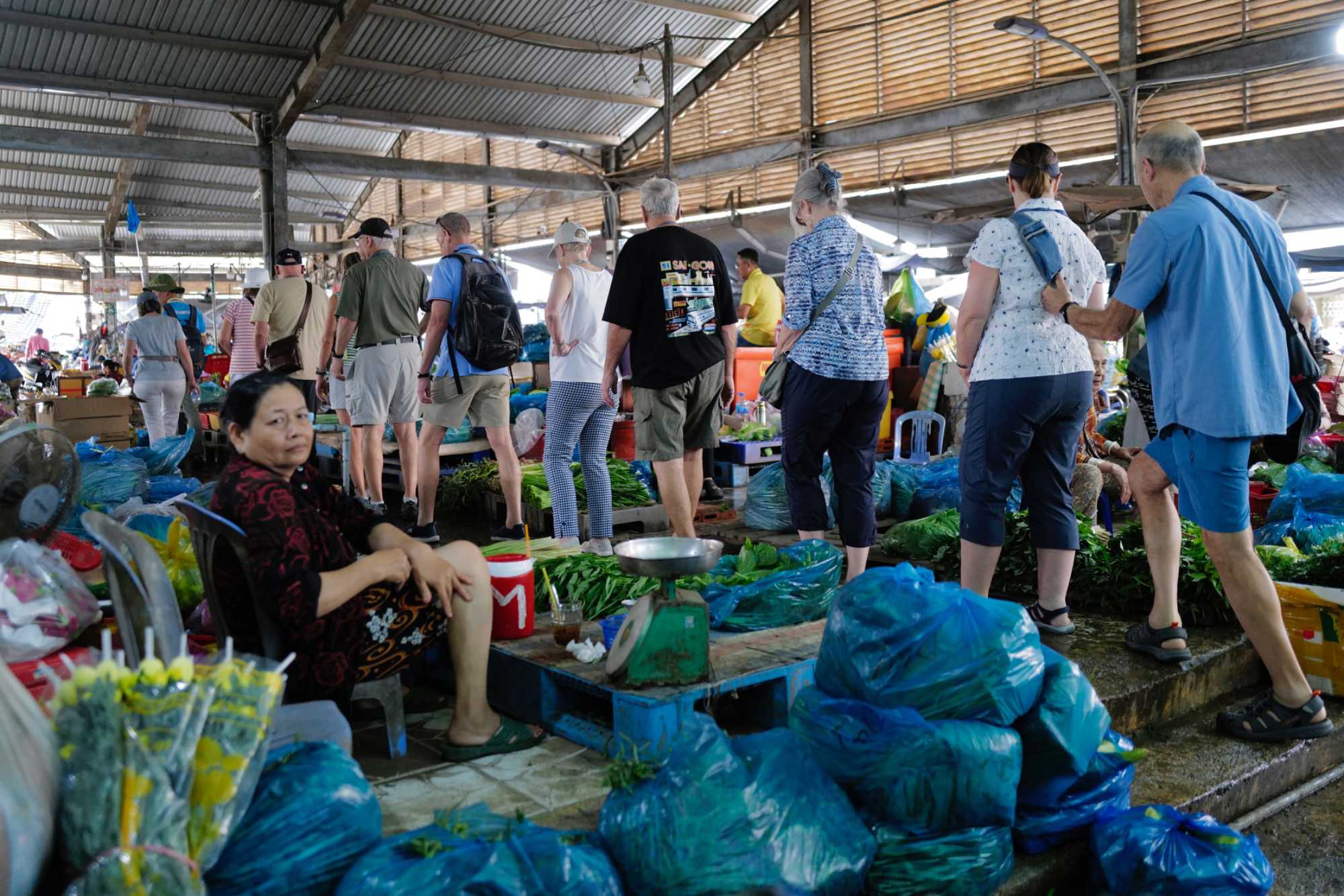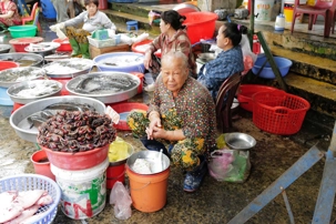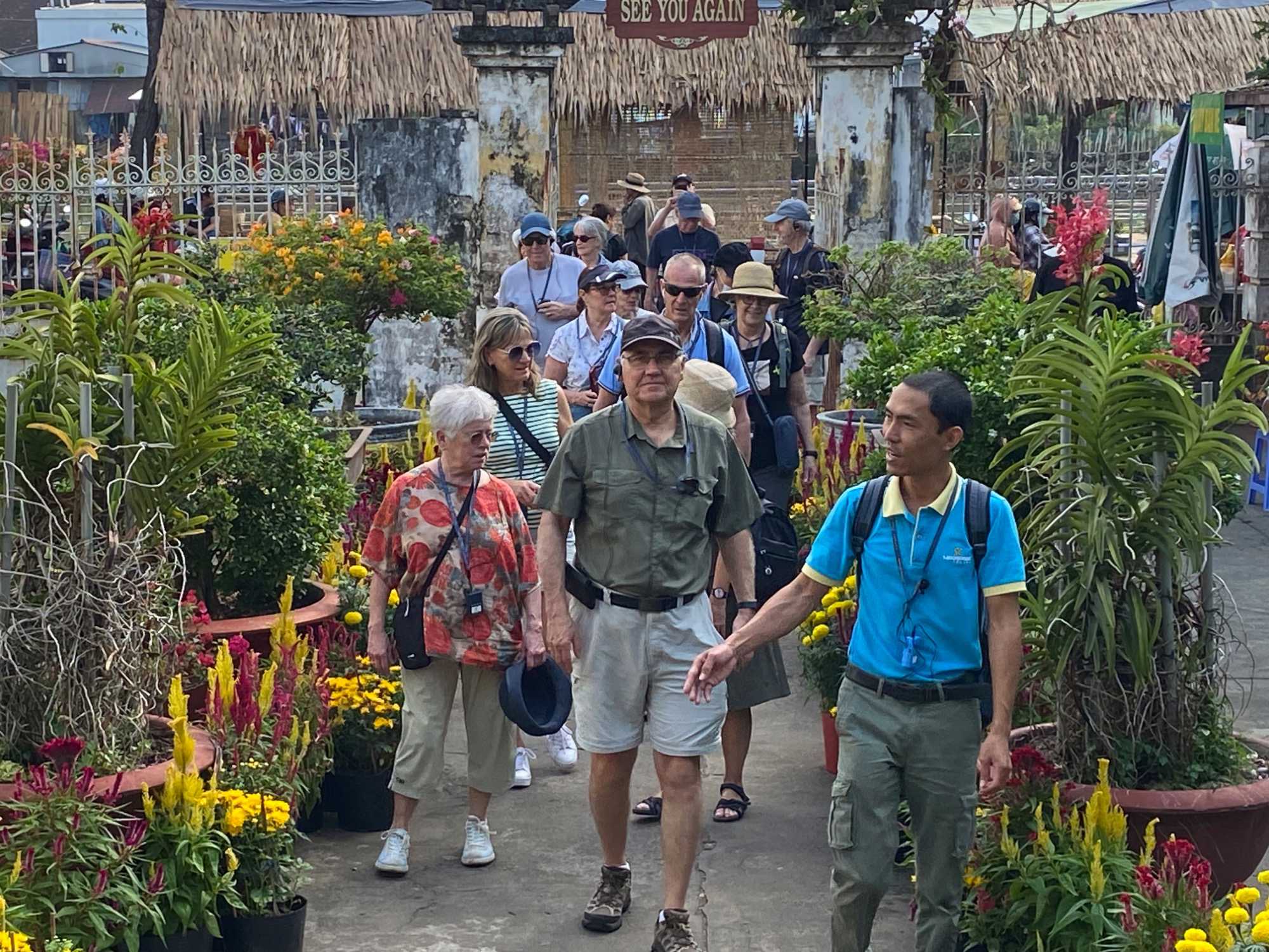 Puis, nous déambulons vers le marché animé de la ville. En prévision des festivités du Têt; le nouvel an vietnamien , un bouillonnement incessant d’activités humaines se déroule sous nos yeux. Les rues était noires de monde. On avait du mal à avancer tellement il y avait de gens partout. Ça criait, ça discutait, ça négociait dans tous les sens. Les scooters passaient au milieu de la foule, klaxonnaient, s’arrêtaient devant un stand. Certains clients ne descendaient même pas : ils tendaient la main, prenaient leur sac de légumes, payaient, et repartaient aussitôt, en se frayant difficilement un chemin à travers la densité de cette masse humaine..