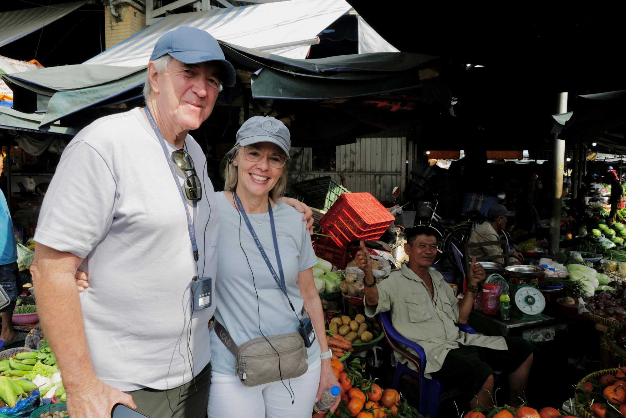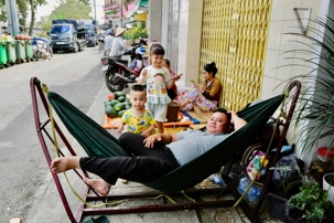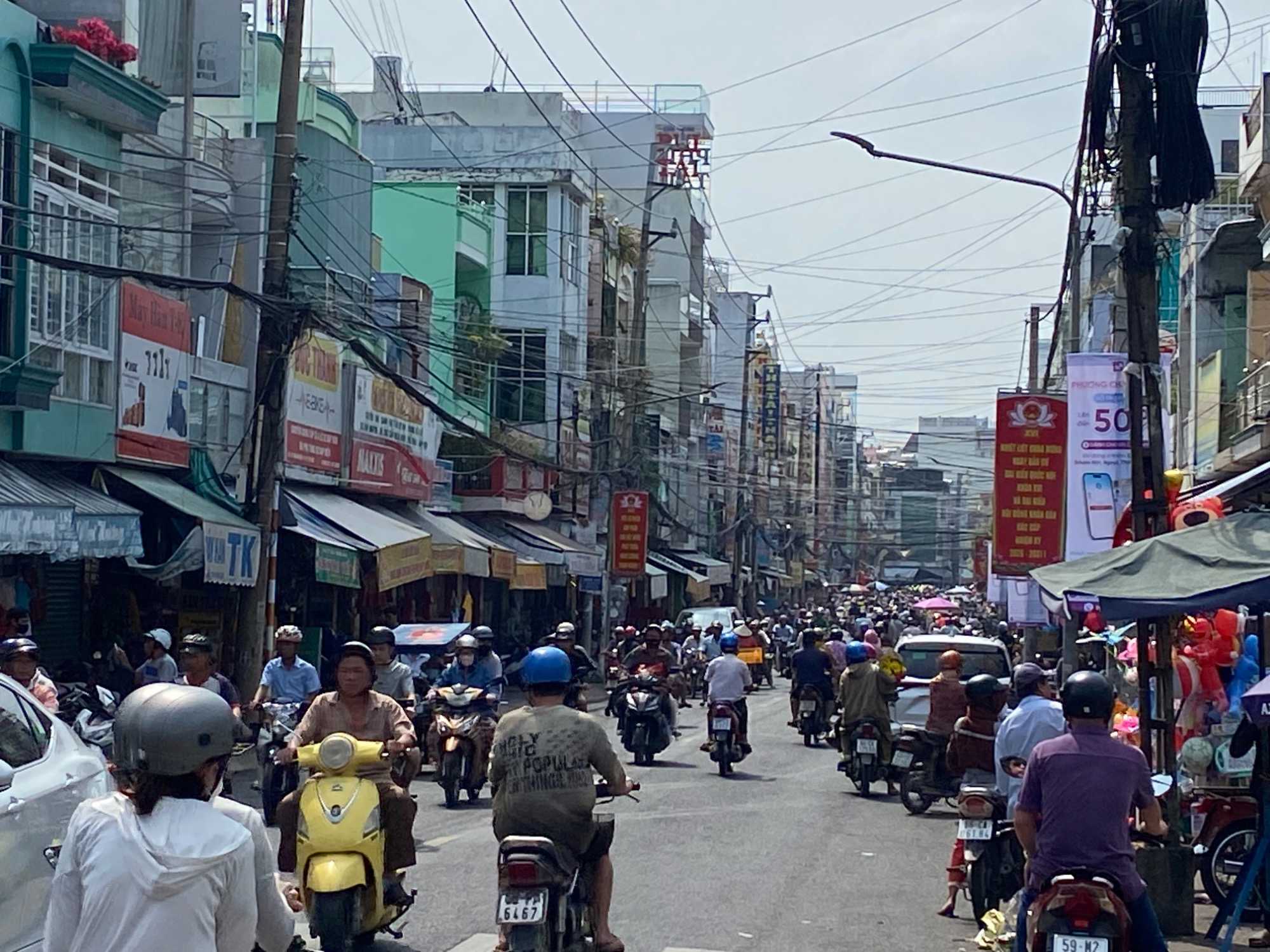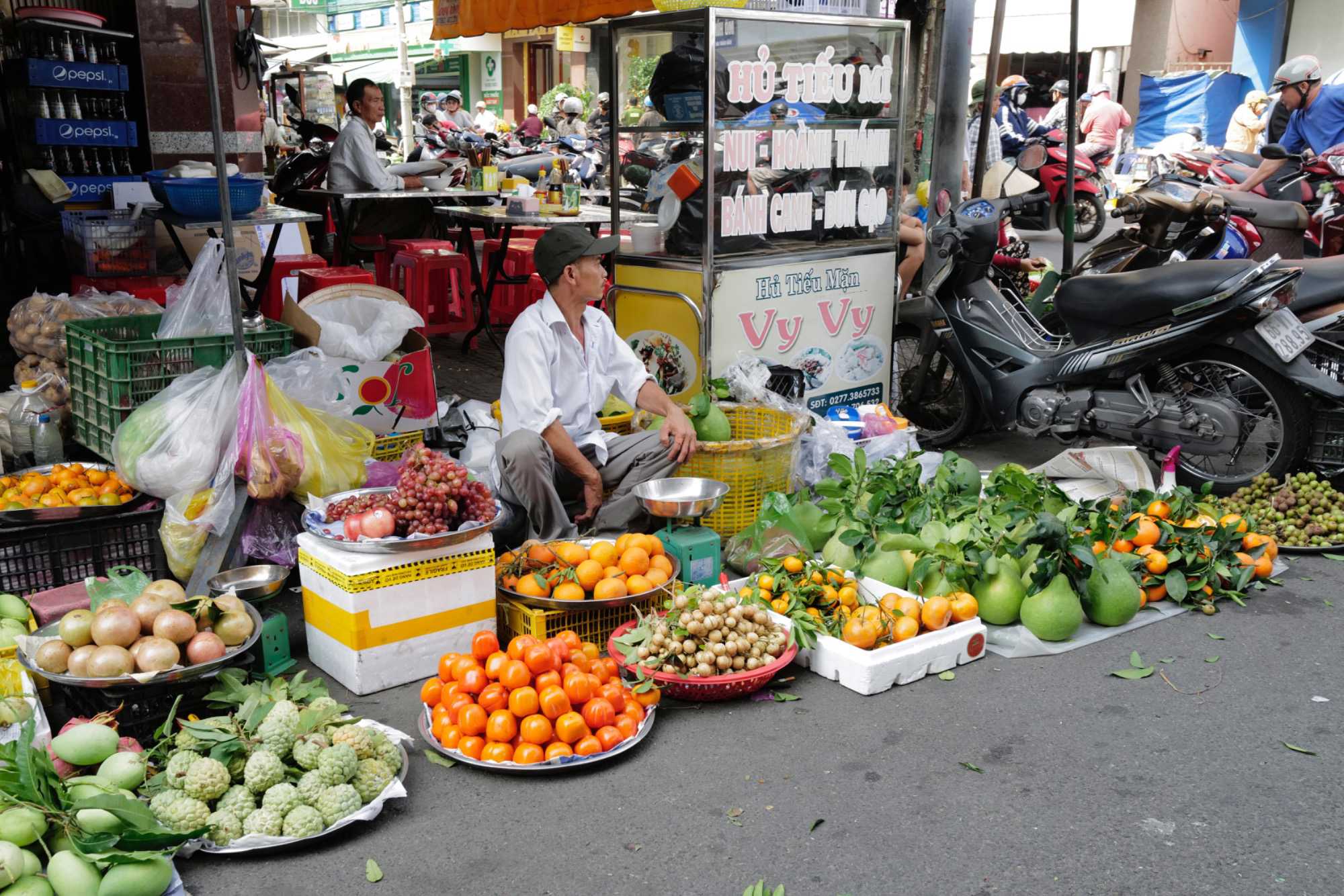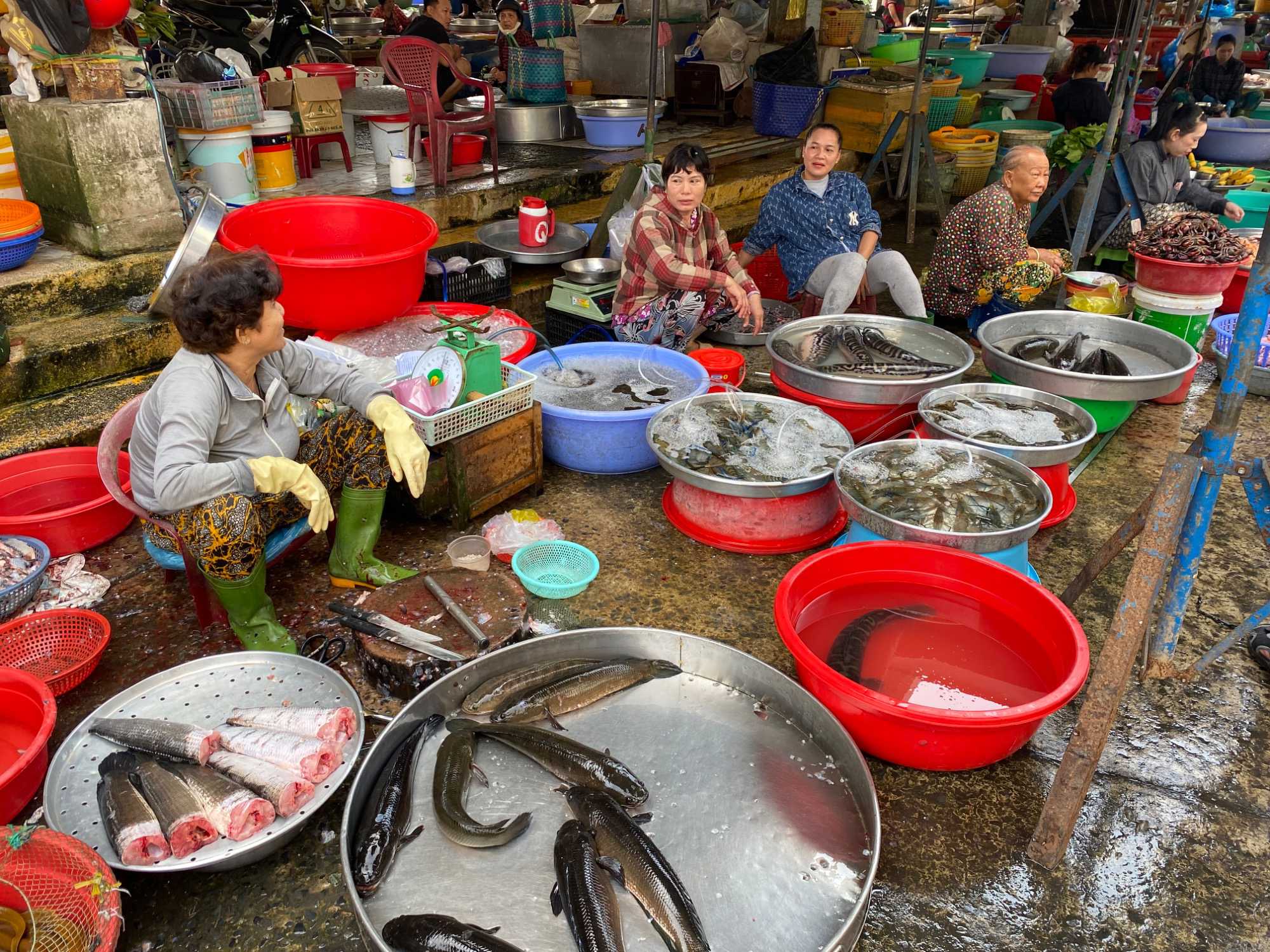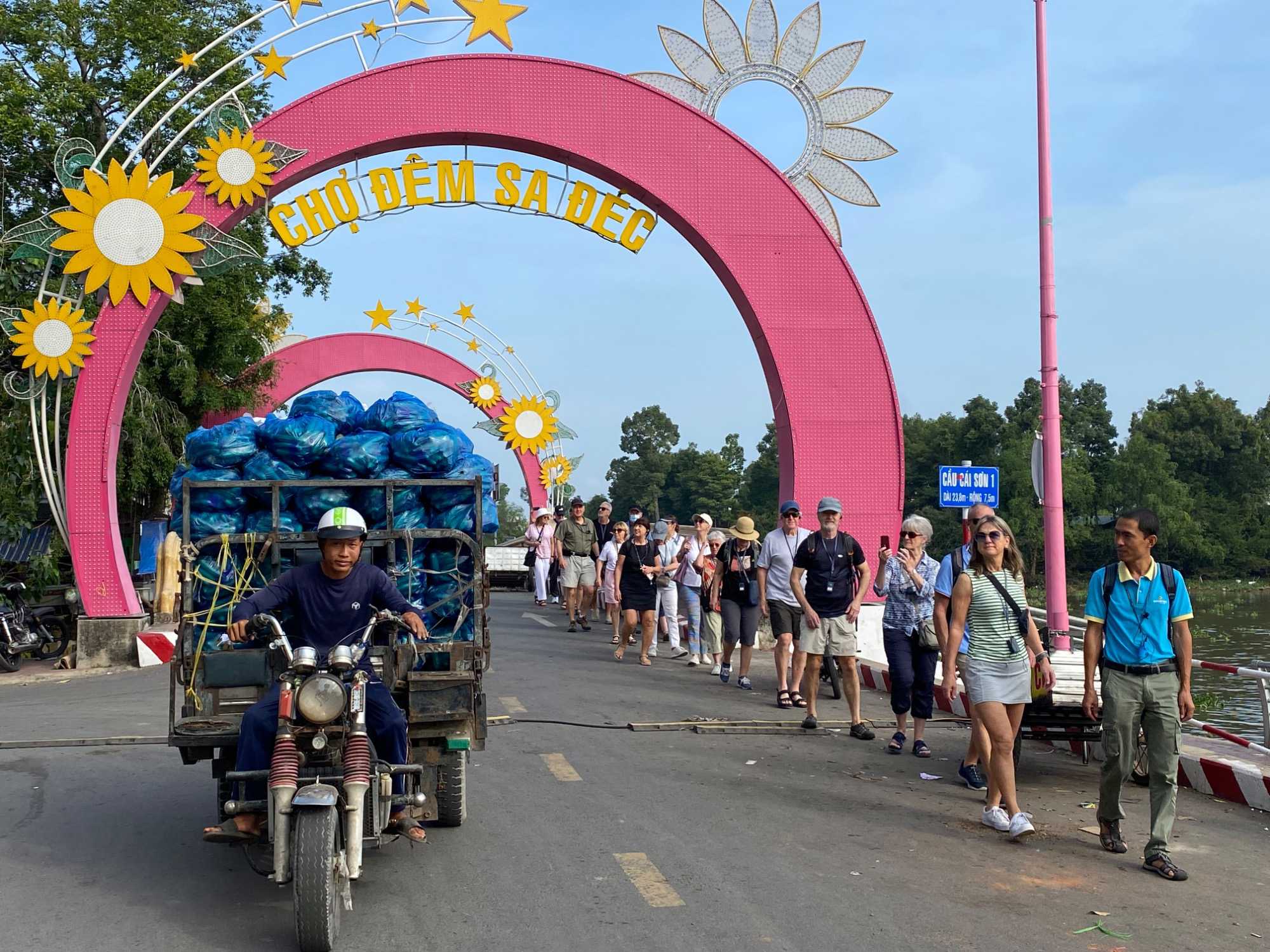 Puis, nous déambulons vers le marché animé de la ville. En prévision des festivités du Têt; le nouvel an vietnamien , un bouillonnement incessant d’activités humaines se déroule sous nos yeux. Les rues était noires de monde. On avait du mal à avancer tellement il y avait de gens partout. Ça criait, ça discutait, ça négociait dans tous les sens. Les scooters passaient au milieu de la foule, klaxonnaient, s’arrêtaient devant un stand. Certains clients ne descendaient même pas : ils tendaient la main, prenaient leur sac de légumes, payaient, et repartaient aussitôt, en se frayant difficilement un chemin à travers la densité de cette masse humaine..