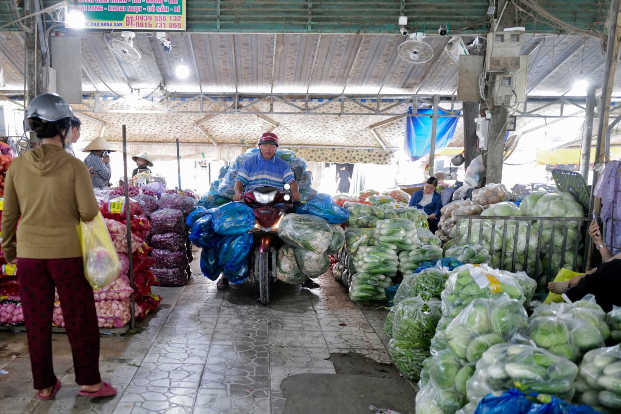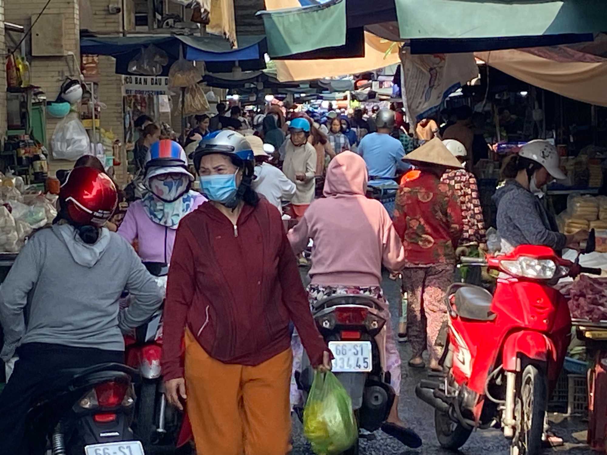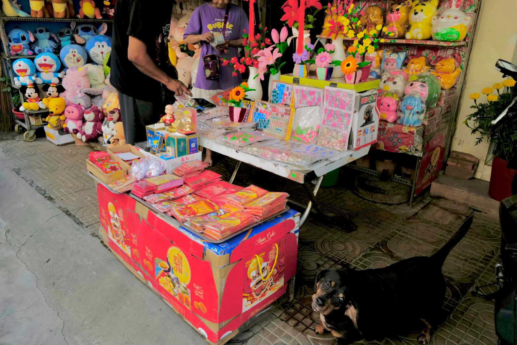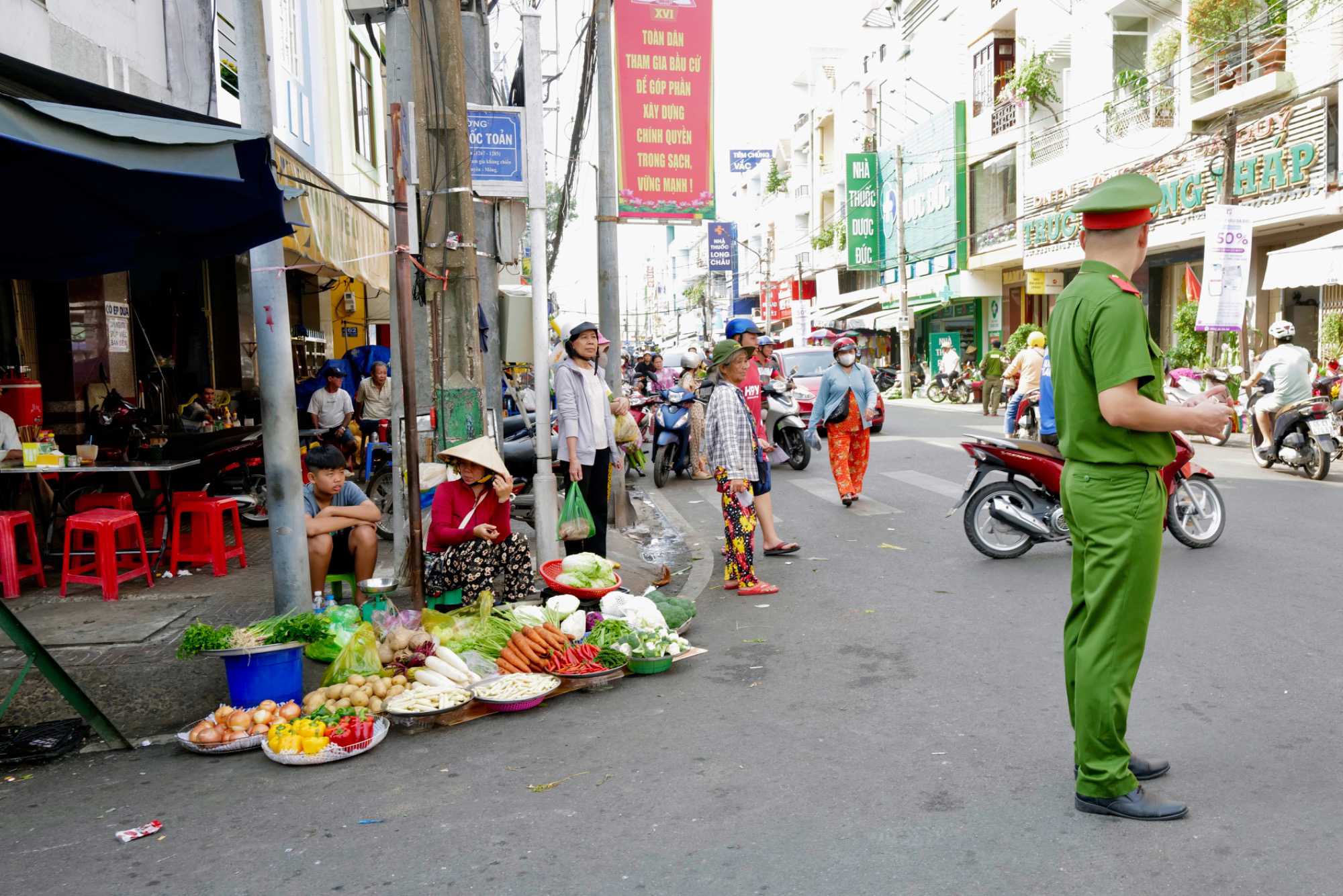 Puis, nous déambulons vers le marché animé de la ville. En prévision des festivités du Têt; le nouvel an vietnamien , un bouillonnement incessant d’activités humaines se déroule sous nos yeux. Les rues était noires de monde. On avait du mal à avancer tellement il y avait de gens partout. Ça criait, ça discutait, ça négociait dans tous les sens. Les scooters passaient au milieu de la foule, klaxonnaient, s’arrêtaient devant un stand. Certains clients ne descendaient même pas : ils tendaient la main, prenaient leur sac de légumes, payaient, et repartaient aussitôt, en se frayant difficilement un chemin à travers la densité de cette masse humaine..