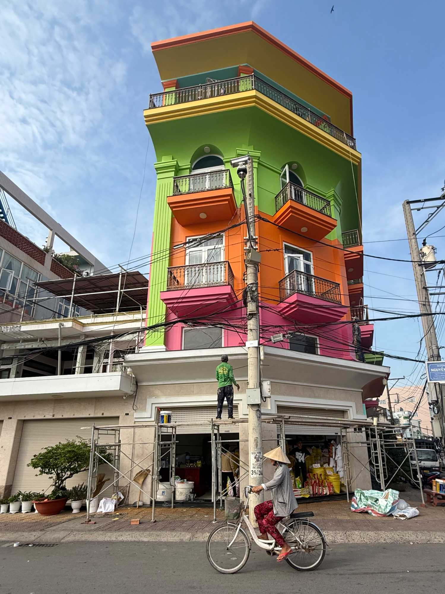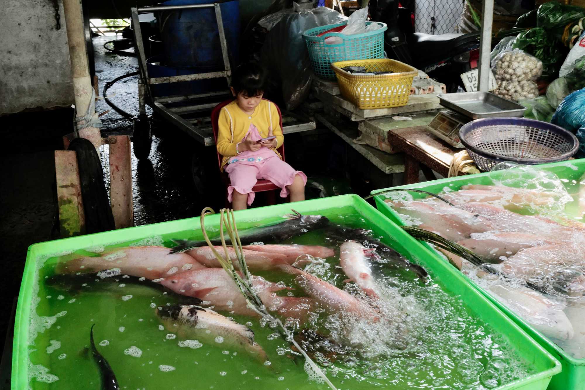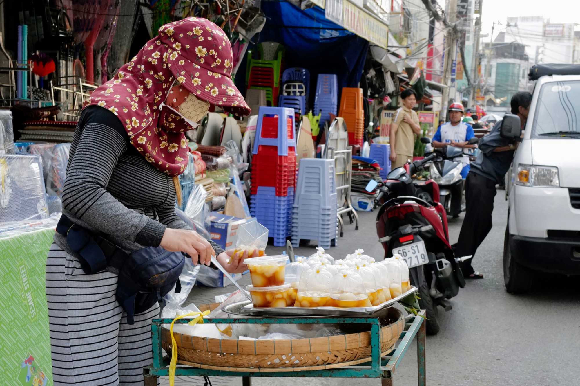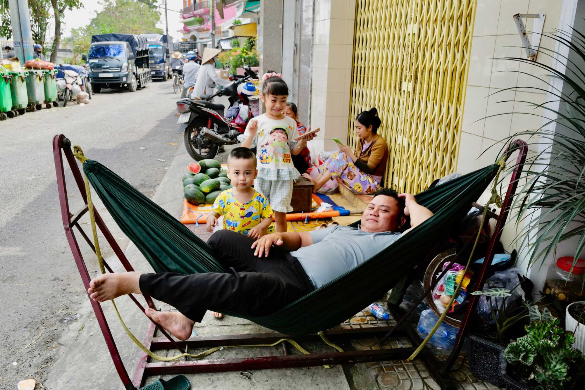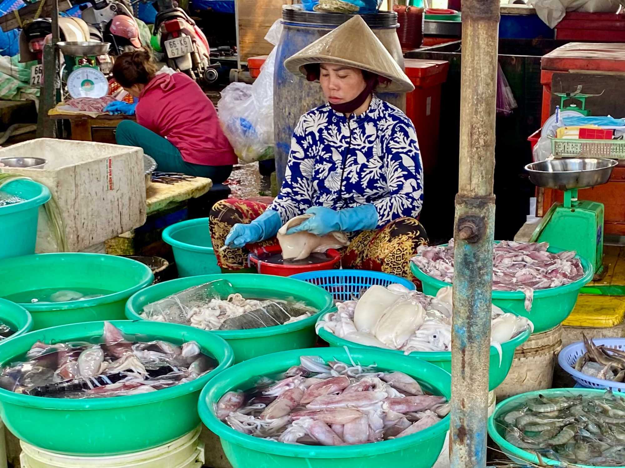Puis, nous déambulons vers le marché animé de la ville. En prévision des festivités du Têt; le nouvel an vietnamien , un bouillonnement incessant d’activités humaines se déroule sous nos yeux. Les rues était noires de monde. On avait du mal à avancer tellement il y avait de gens partout. Ça criait, ça discutait, ça négociait dans tous les sens. Les scooters passaient au milieu de la foule, klaxonnaient, s’arrêtaient devant un stand. Certains clients ne descendaient même pas : ils tendaient la main, prenaient leur sac de légumes, payaient, et repartaient aussitôt, en se frayant difficilement un chemin à travers la densité de cette masse humaine..