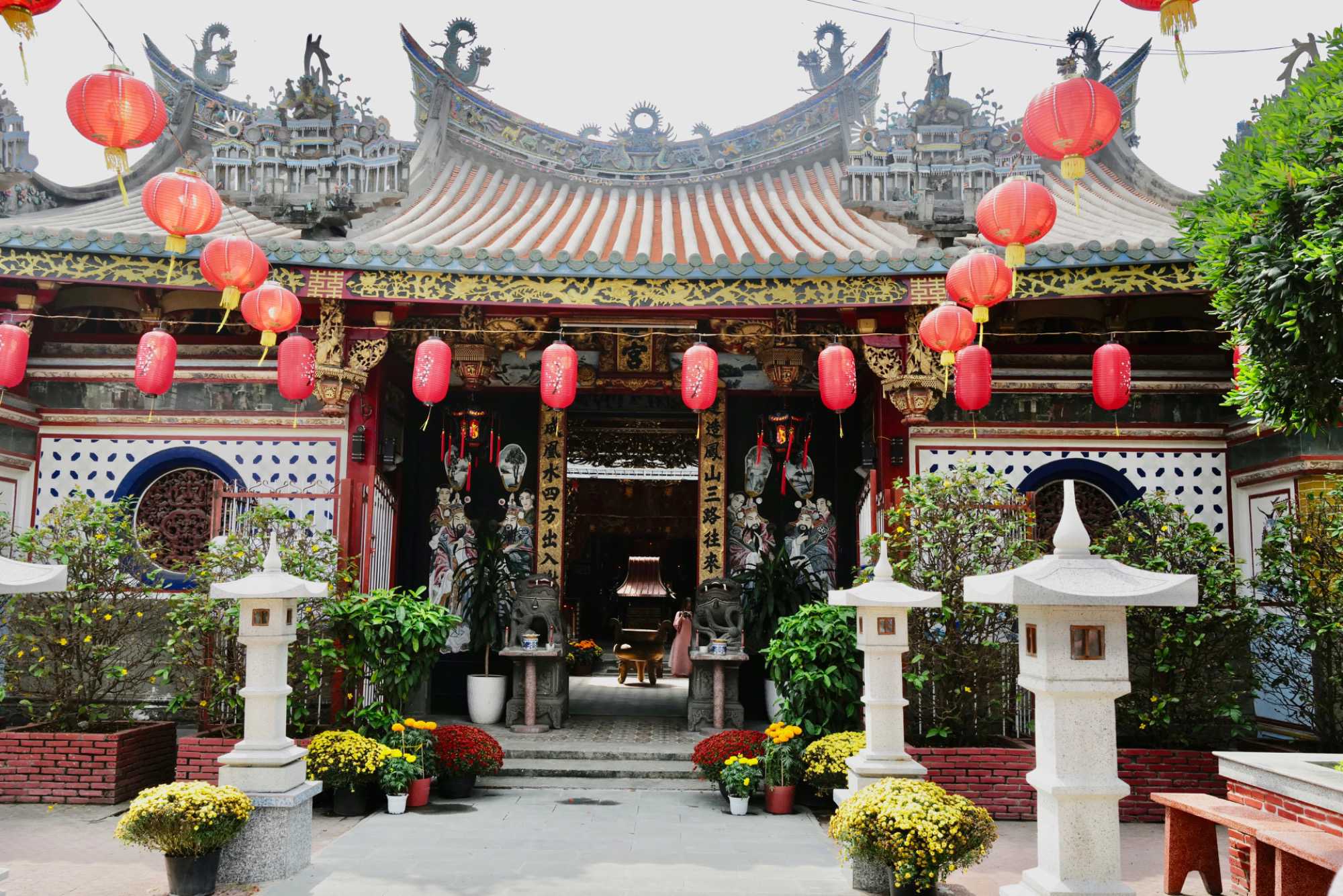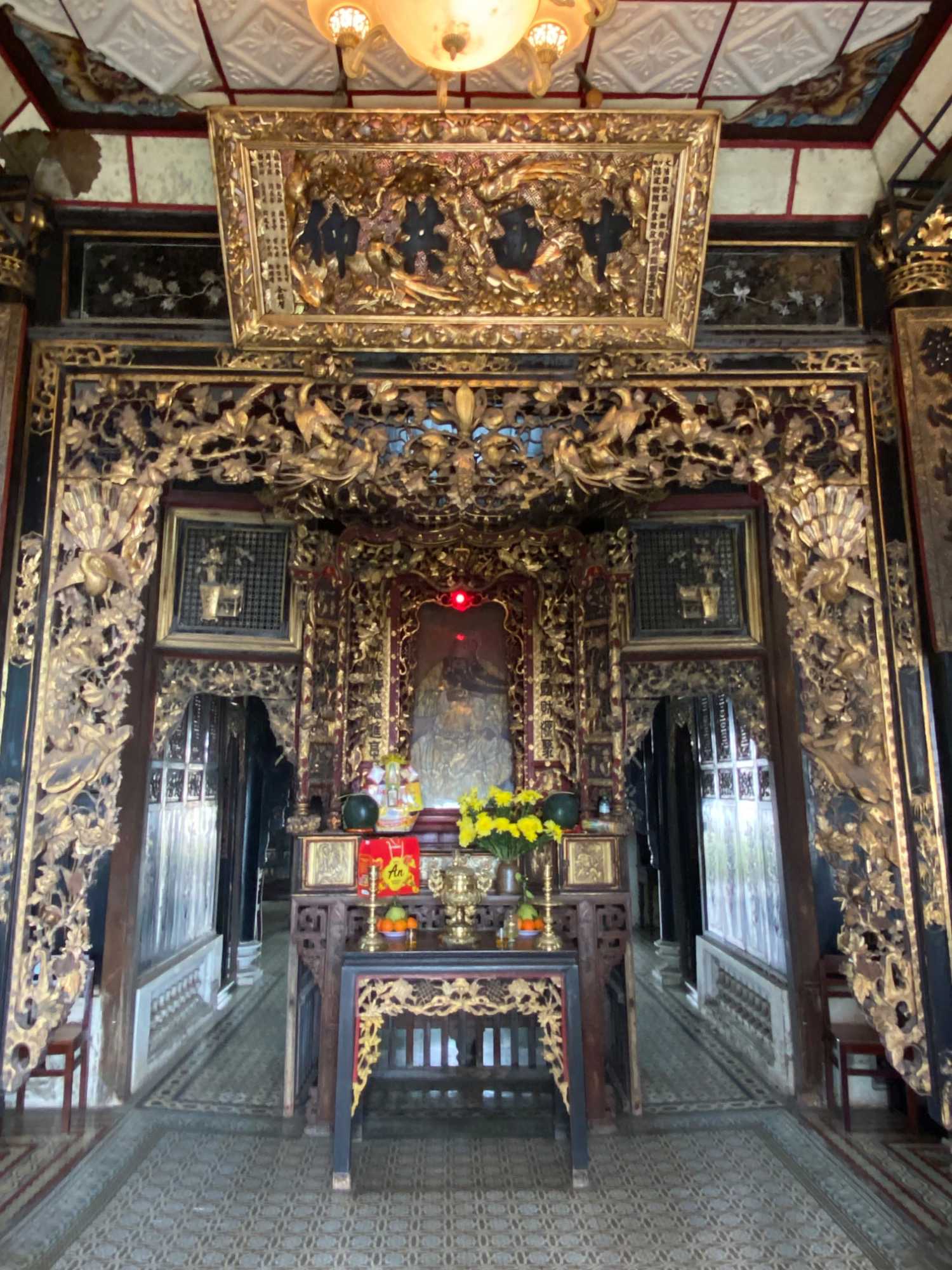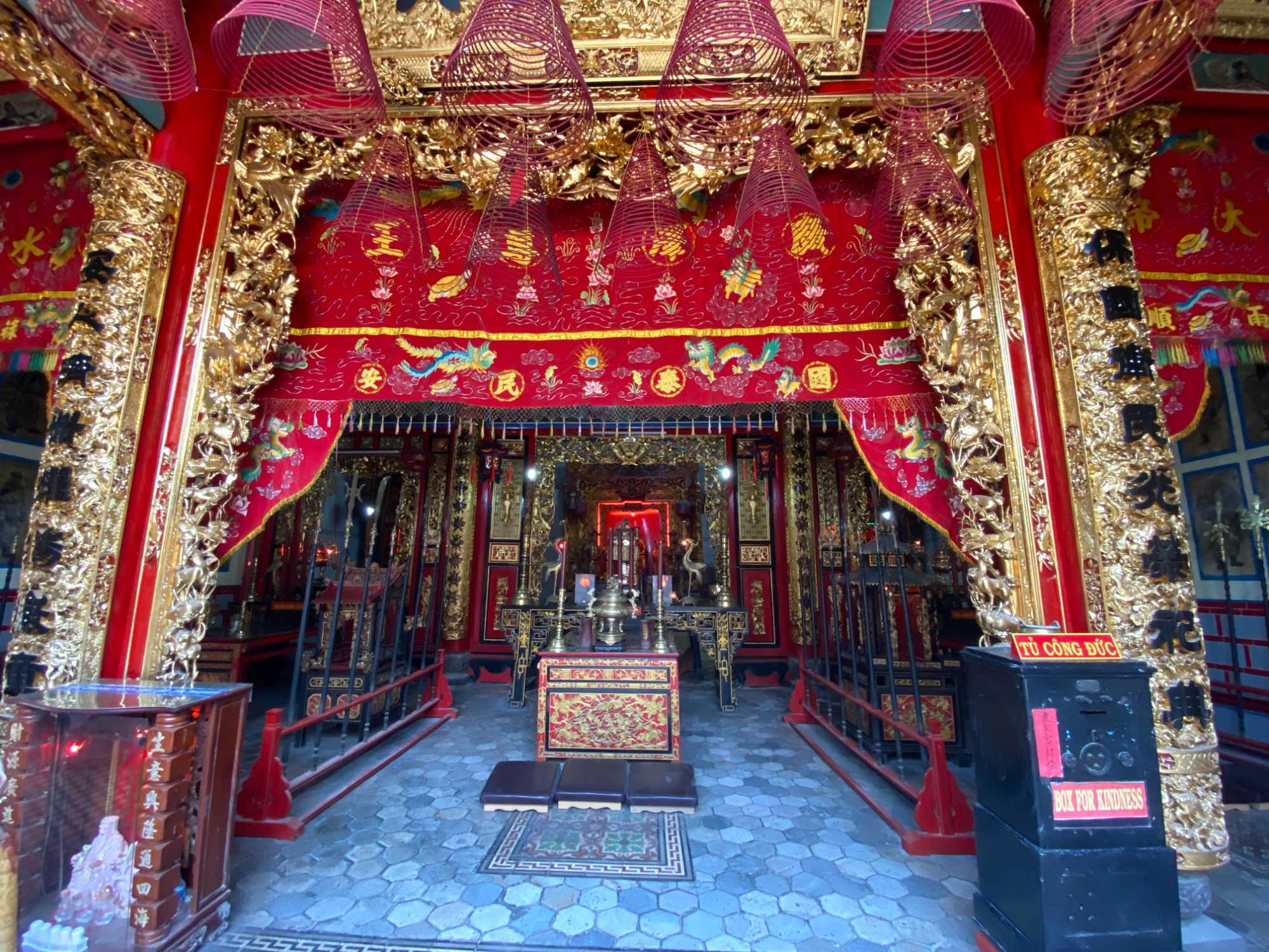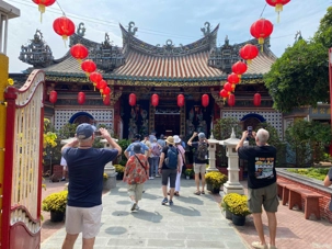 À la sortie du marché, nous visitons un temple taoïsme, avec la prévalence de la couleur rouge; la couleur du bonheur.
