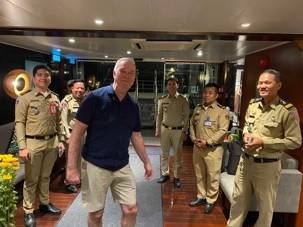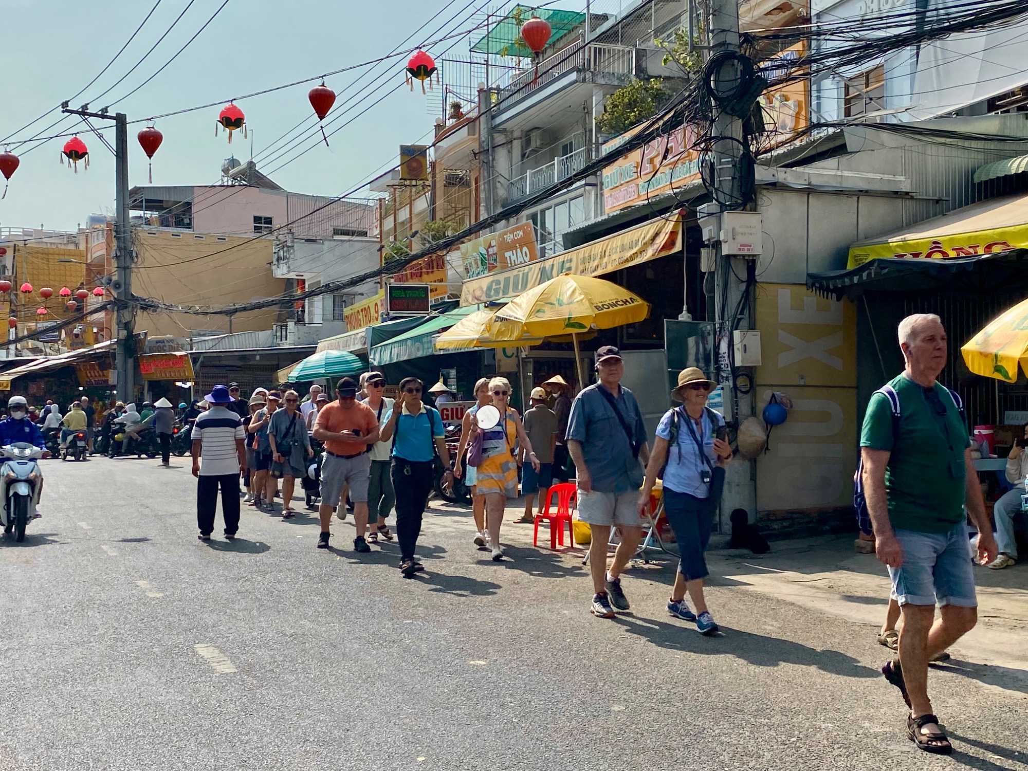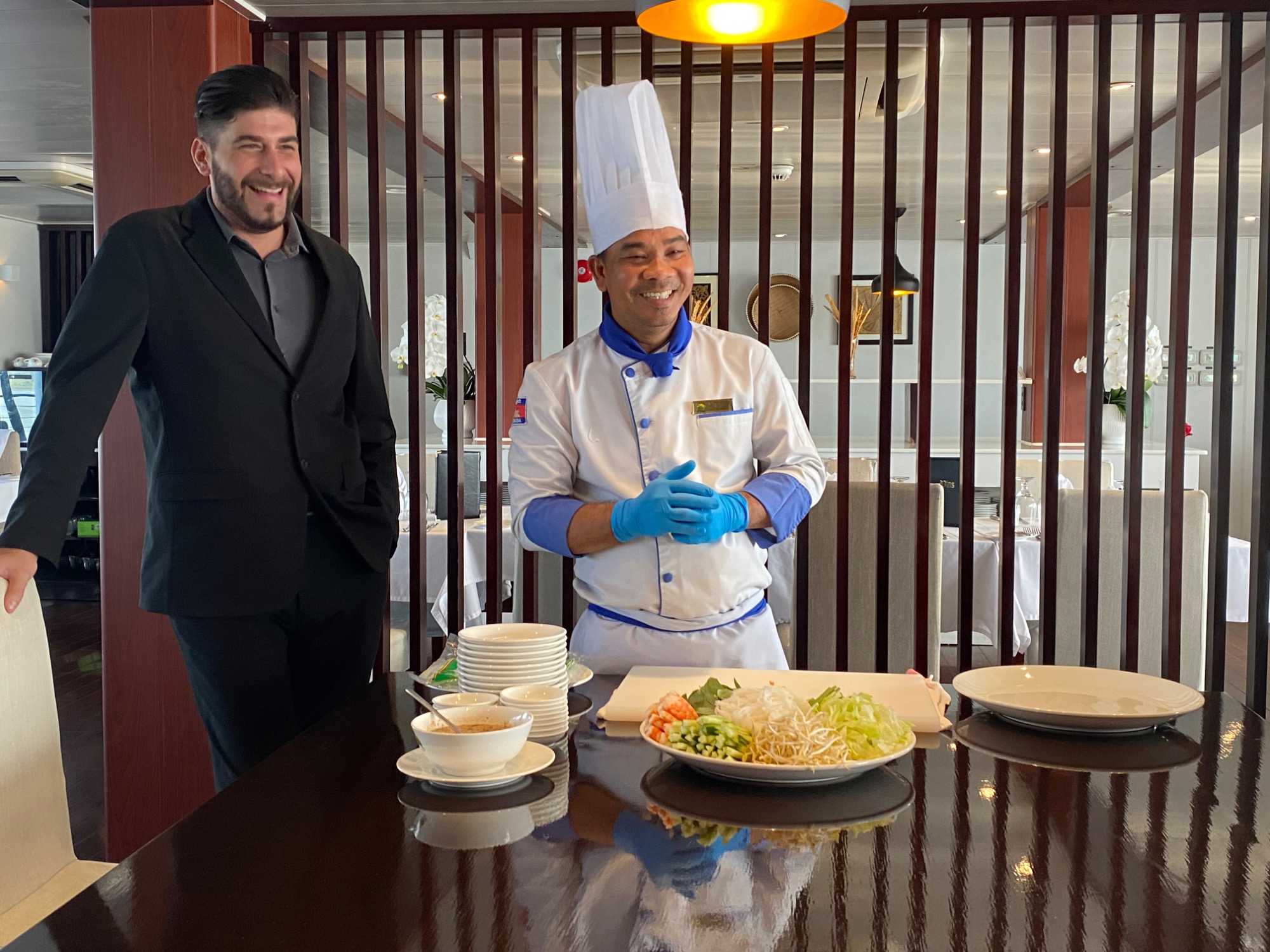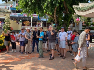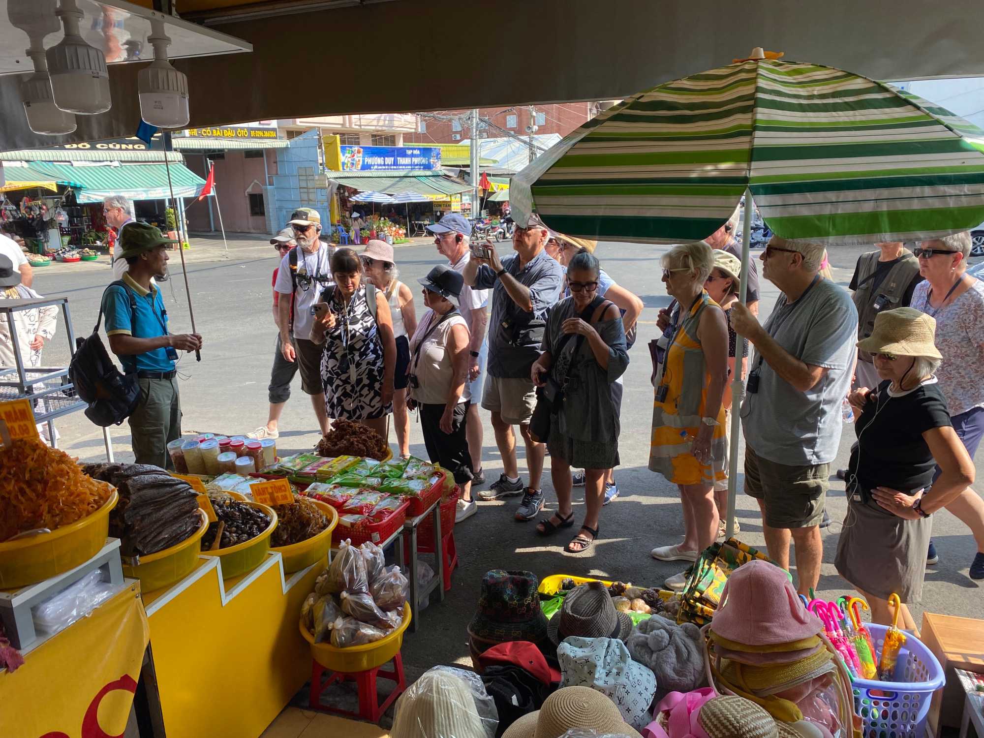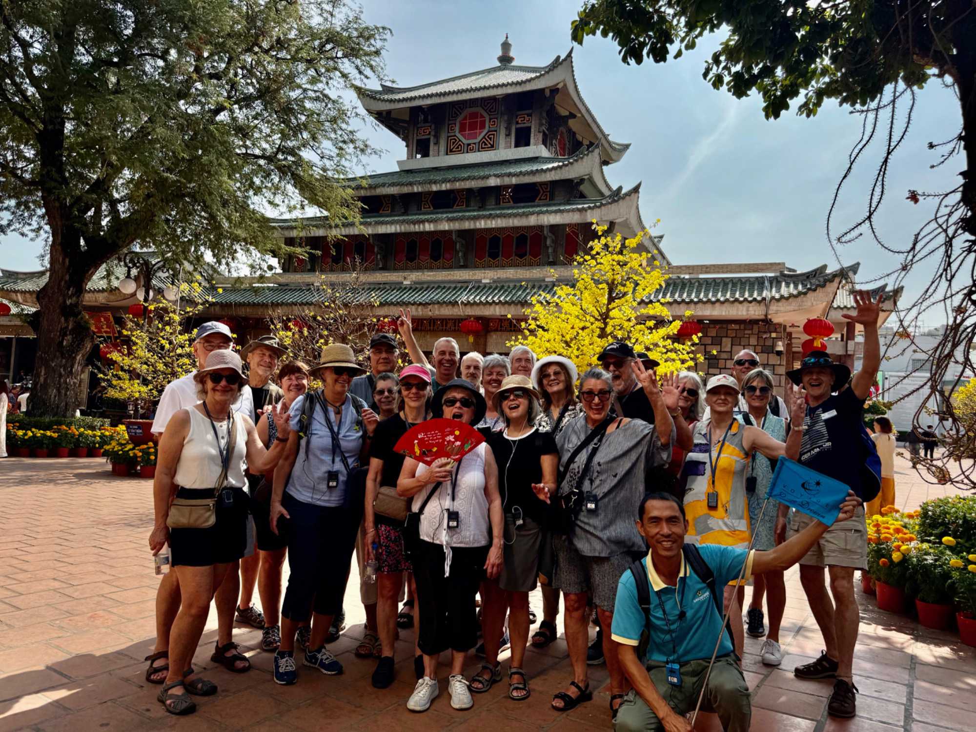 De retour au bateau, puisque nous arriverons dans le pays voisin après quelques heures de navigation, c’est ici que notre guide vietnamien Tiep nous quitte. Quel merveilleux guide et être humain. Par son attitude personnelle et professionnelle, dans la transmission de toutes ses connaissances, il nous a vraiment offert une excellente prestation; ce qui a donné une valeur ajoutée à notre séjour.