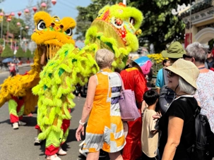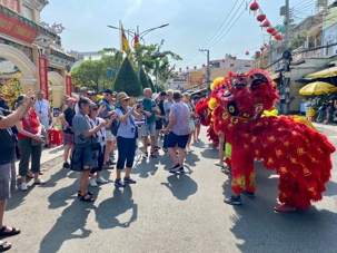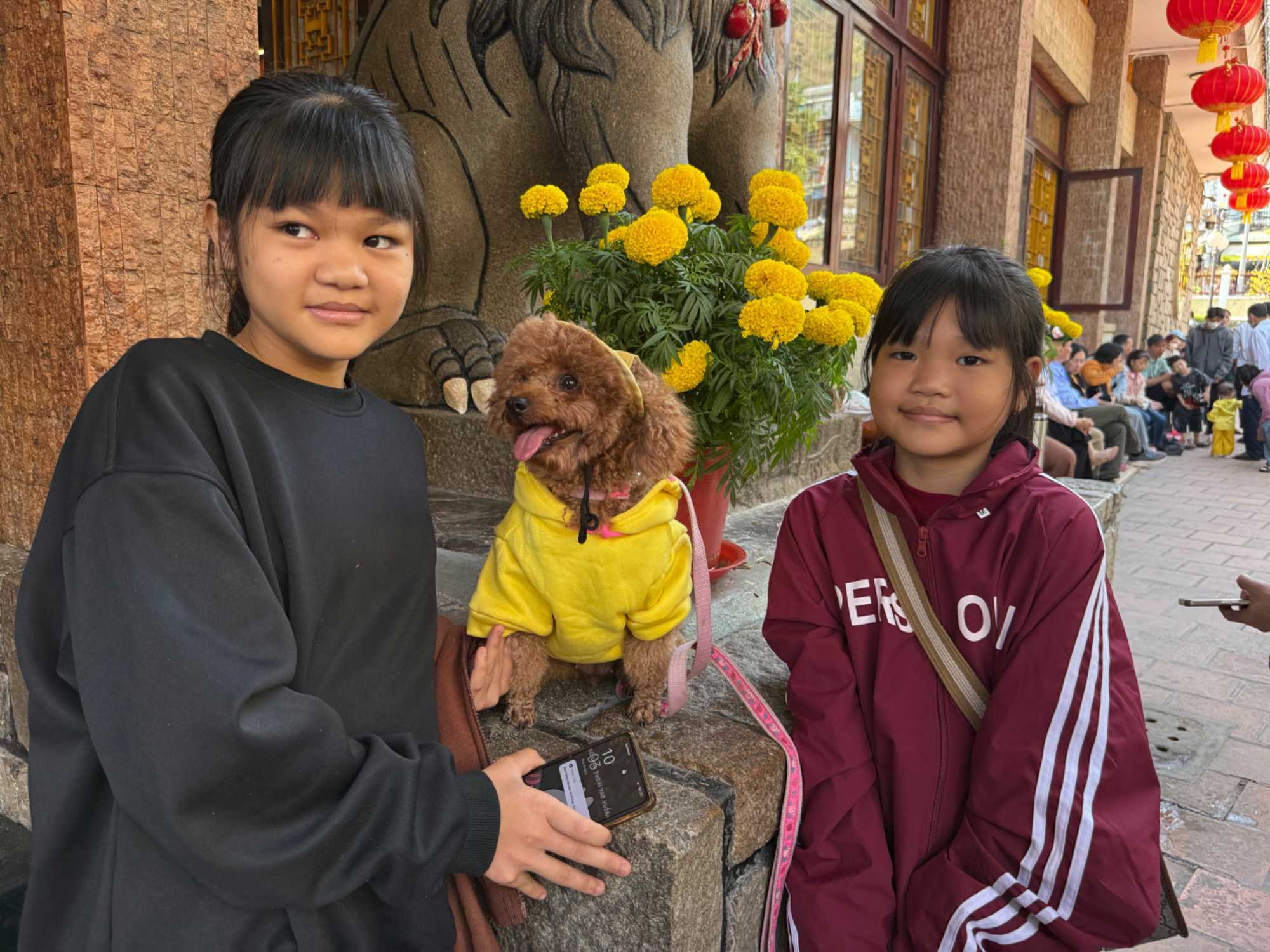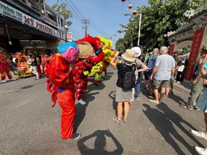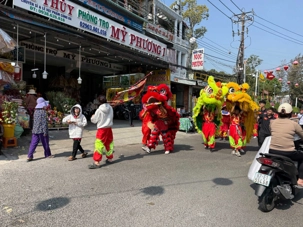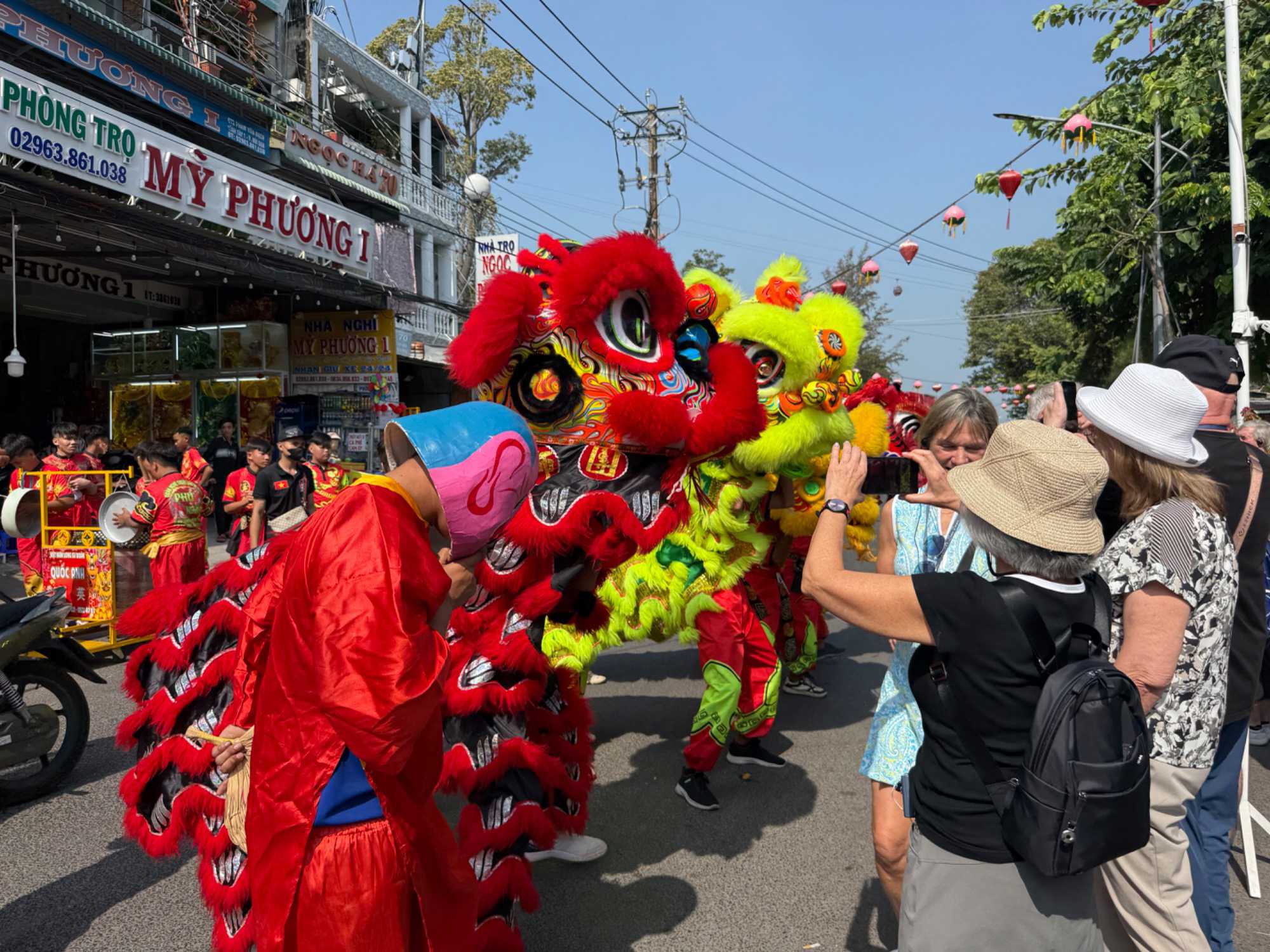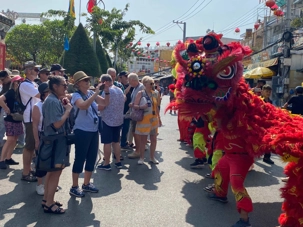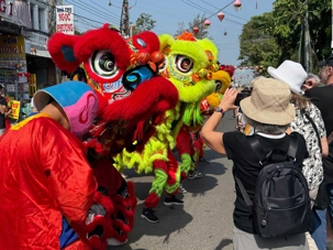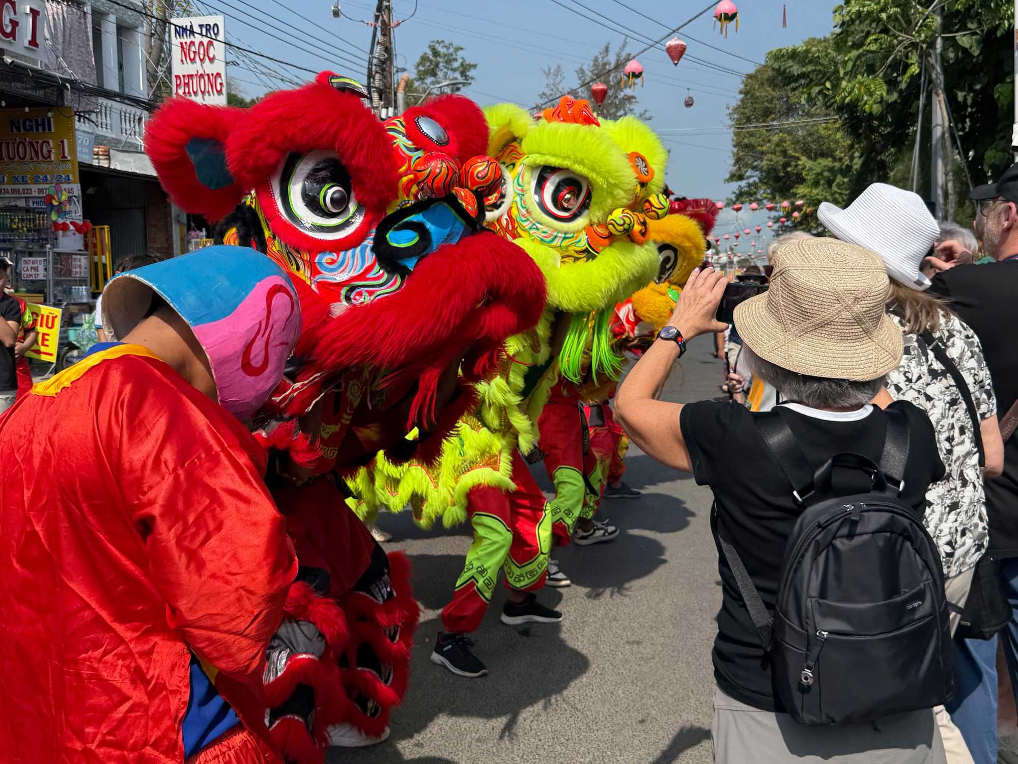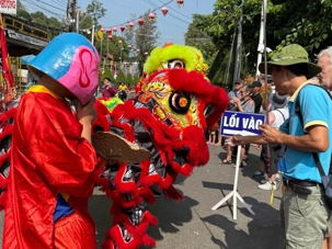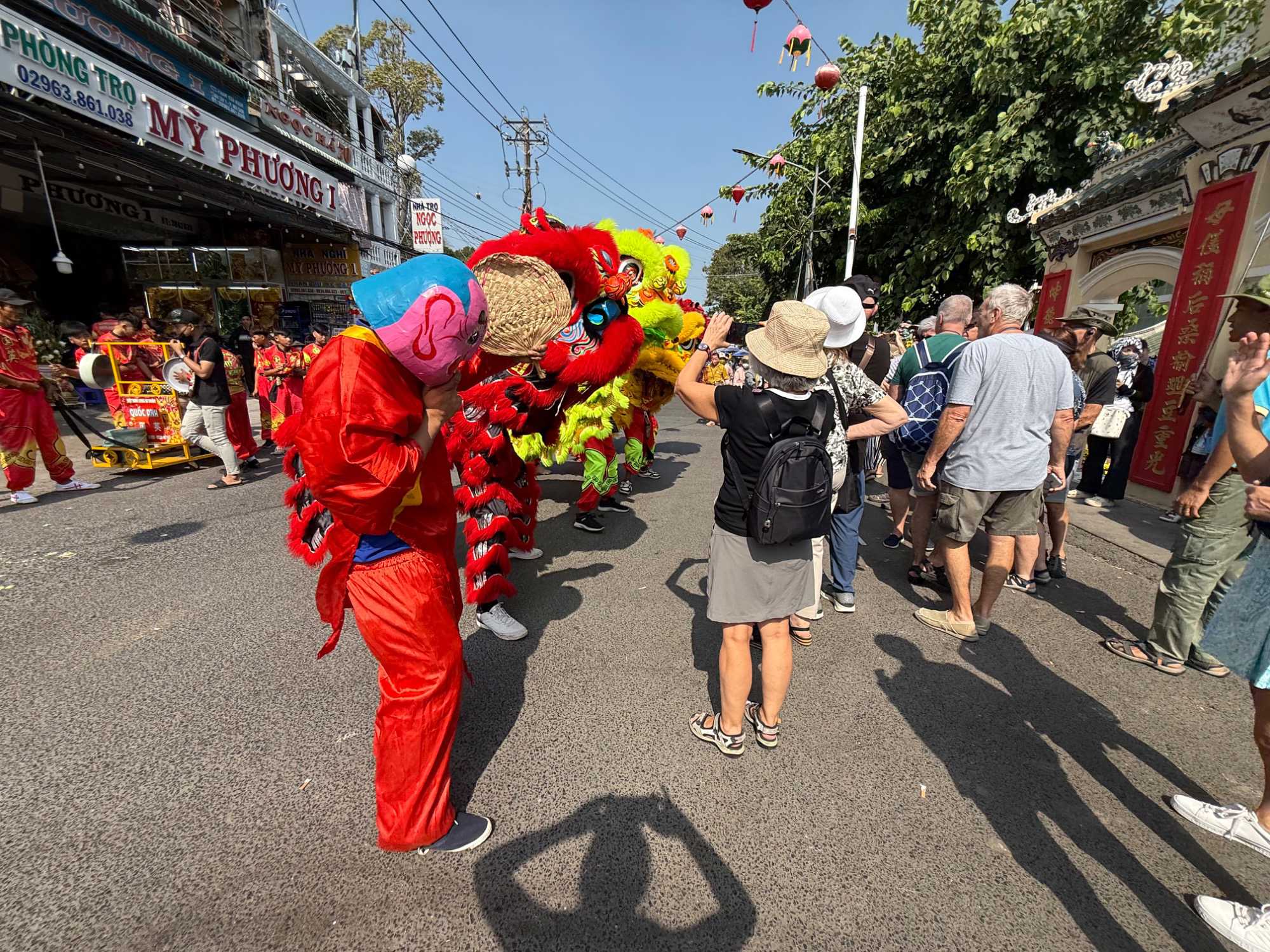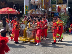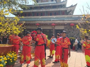 Juste à l’entrée, nous avons droit à une danse du dragon qui se déhanche devant nous, au son des percussions; effectuée par des jeunes pèlerins.