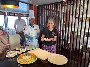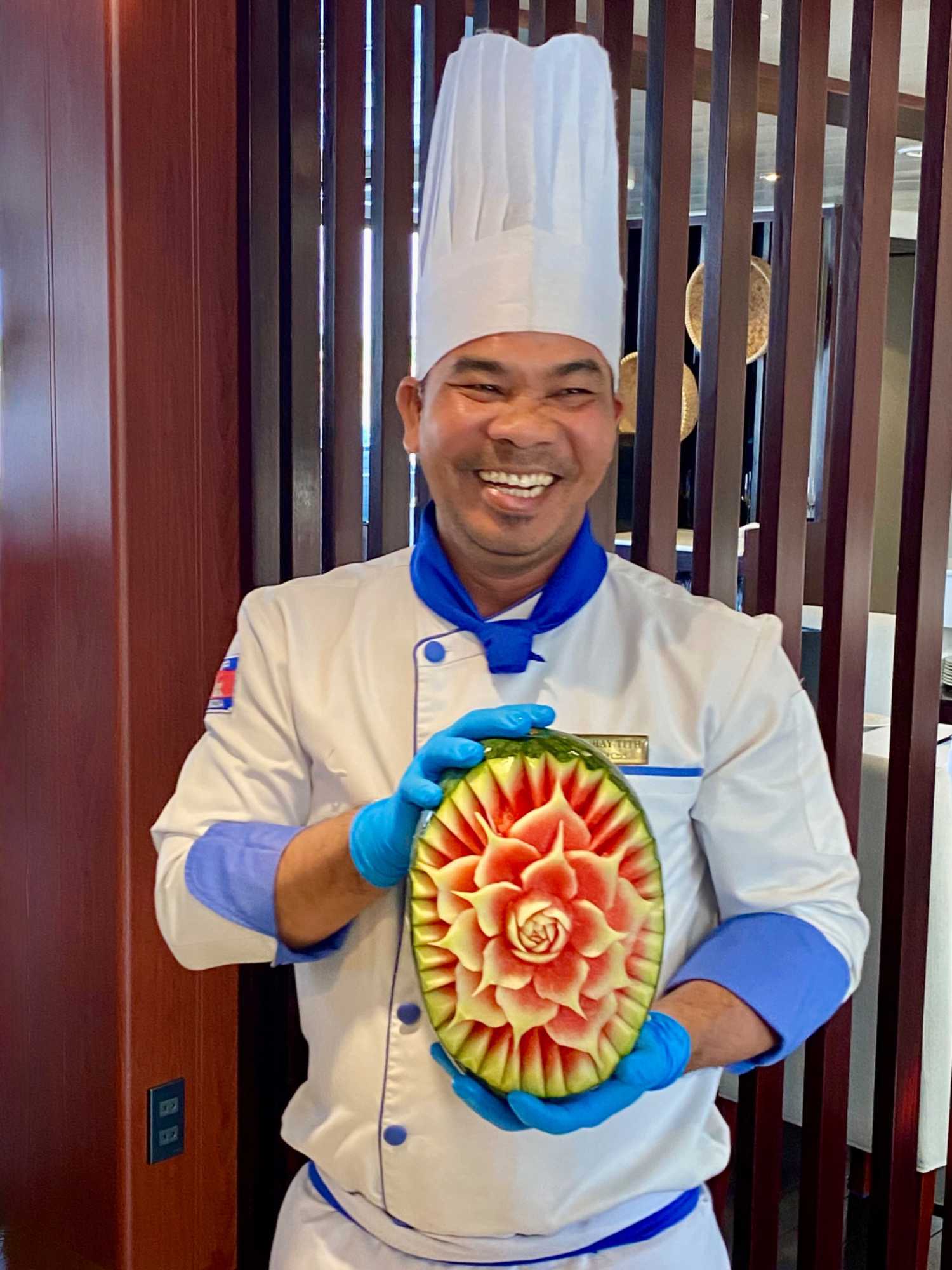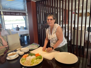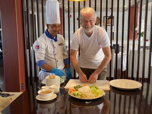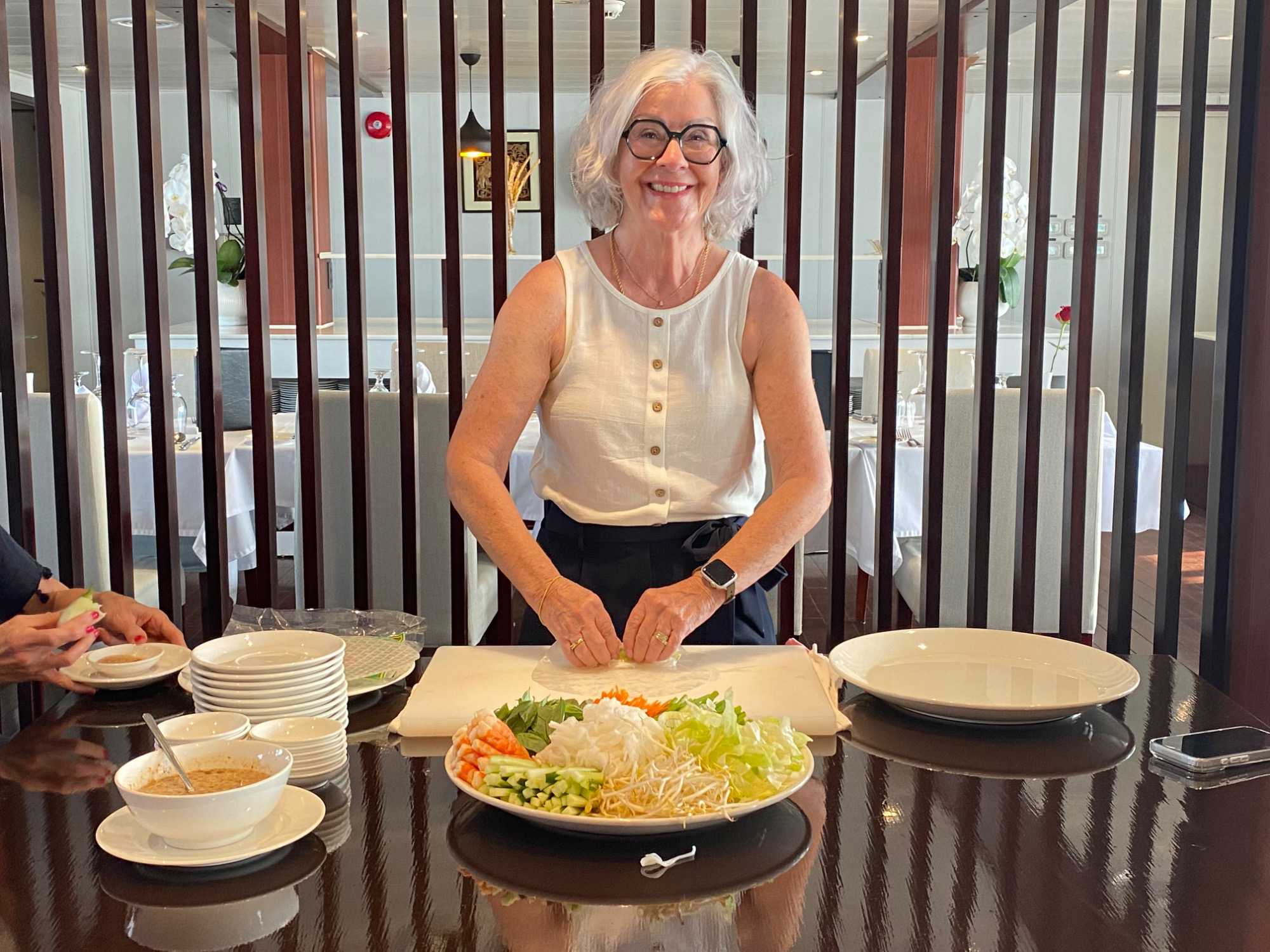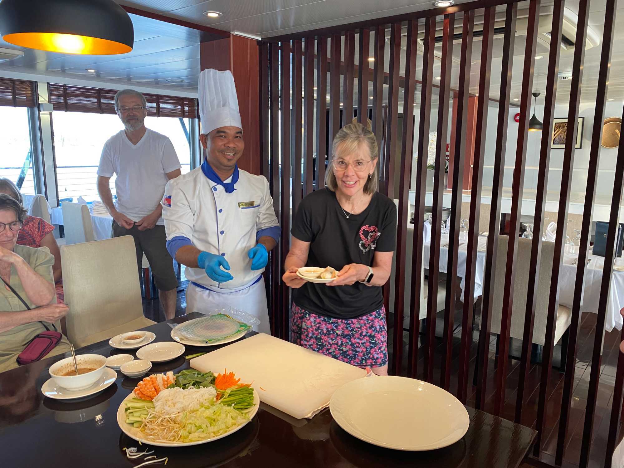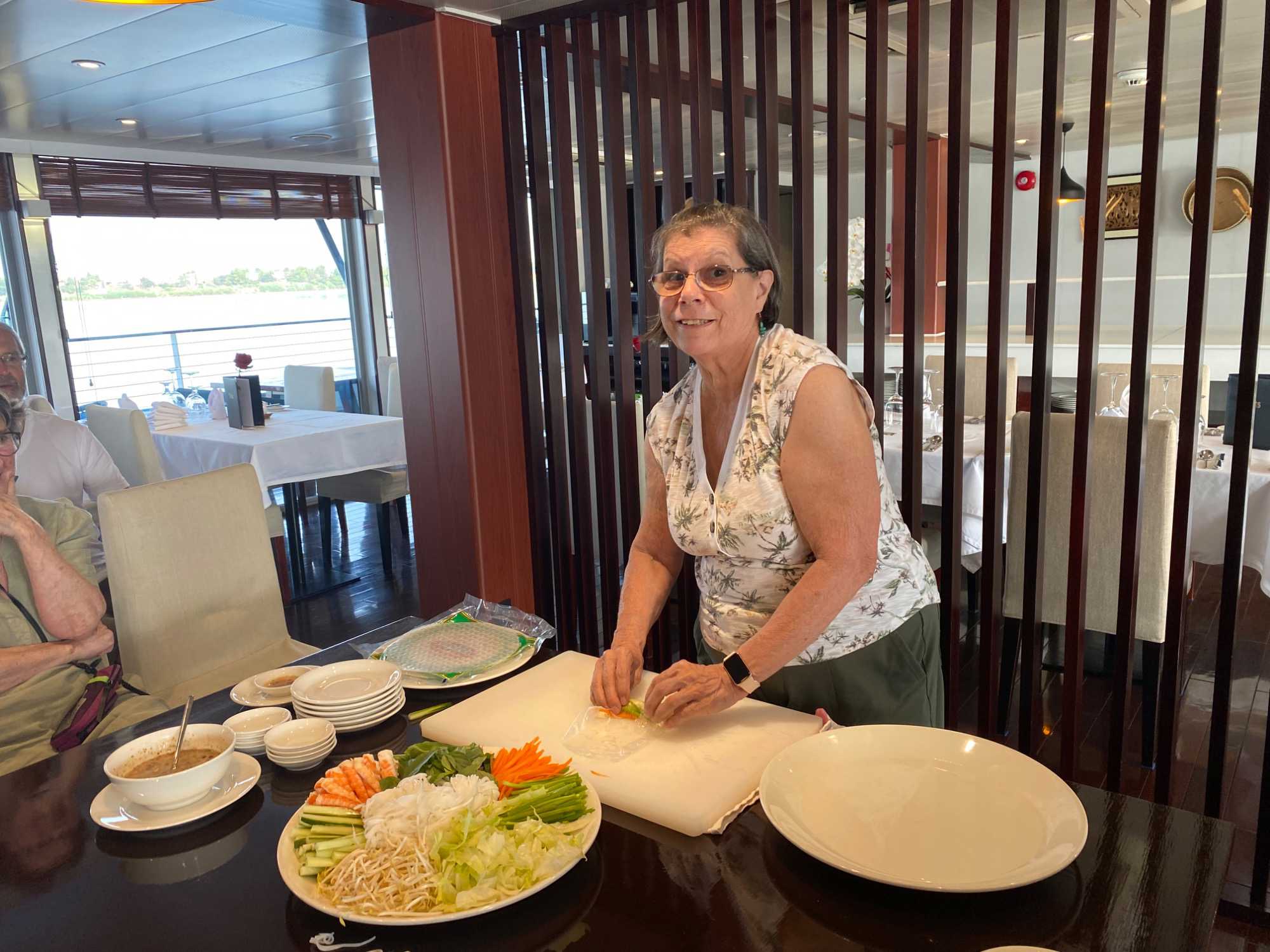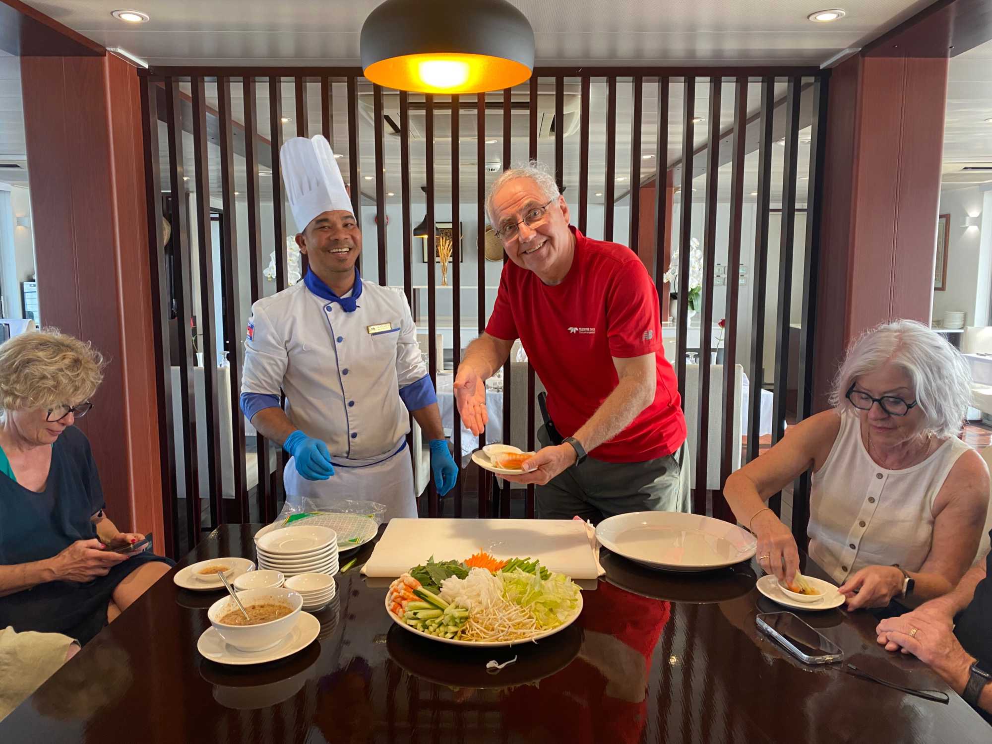 Vers 16 h, les participants intéressés se retrouvent dans la salle à manger pour assister à une démonstration de préparation de rouleaux de printemps animée par le chef, où chacun a l’opportunité de concocter son propre rouleau; suivie d’une séance de sculpture sur fruits. Nous avons bien du plaisir tous ensemble.