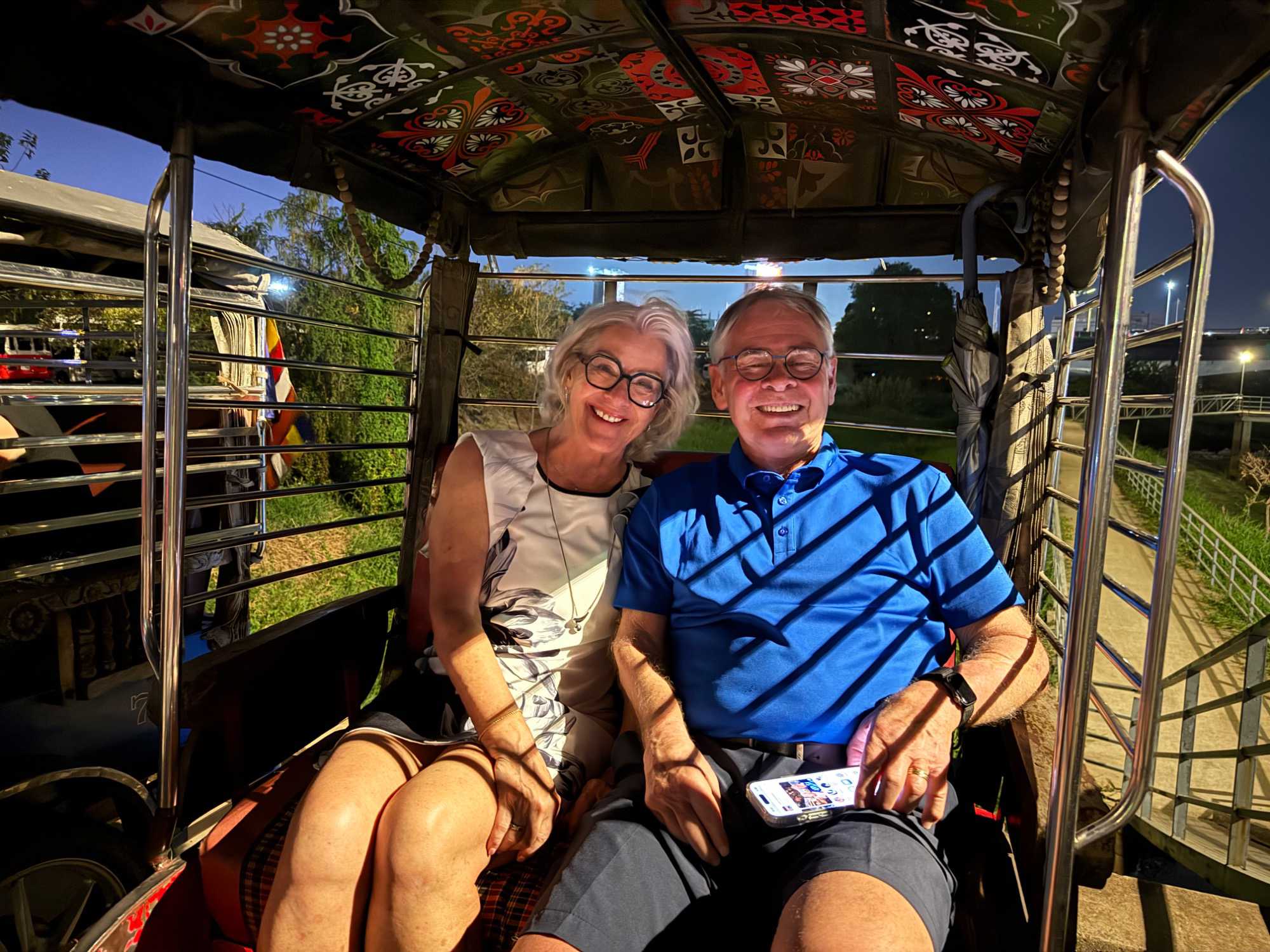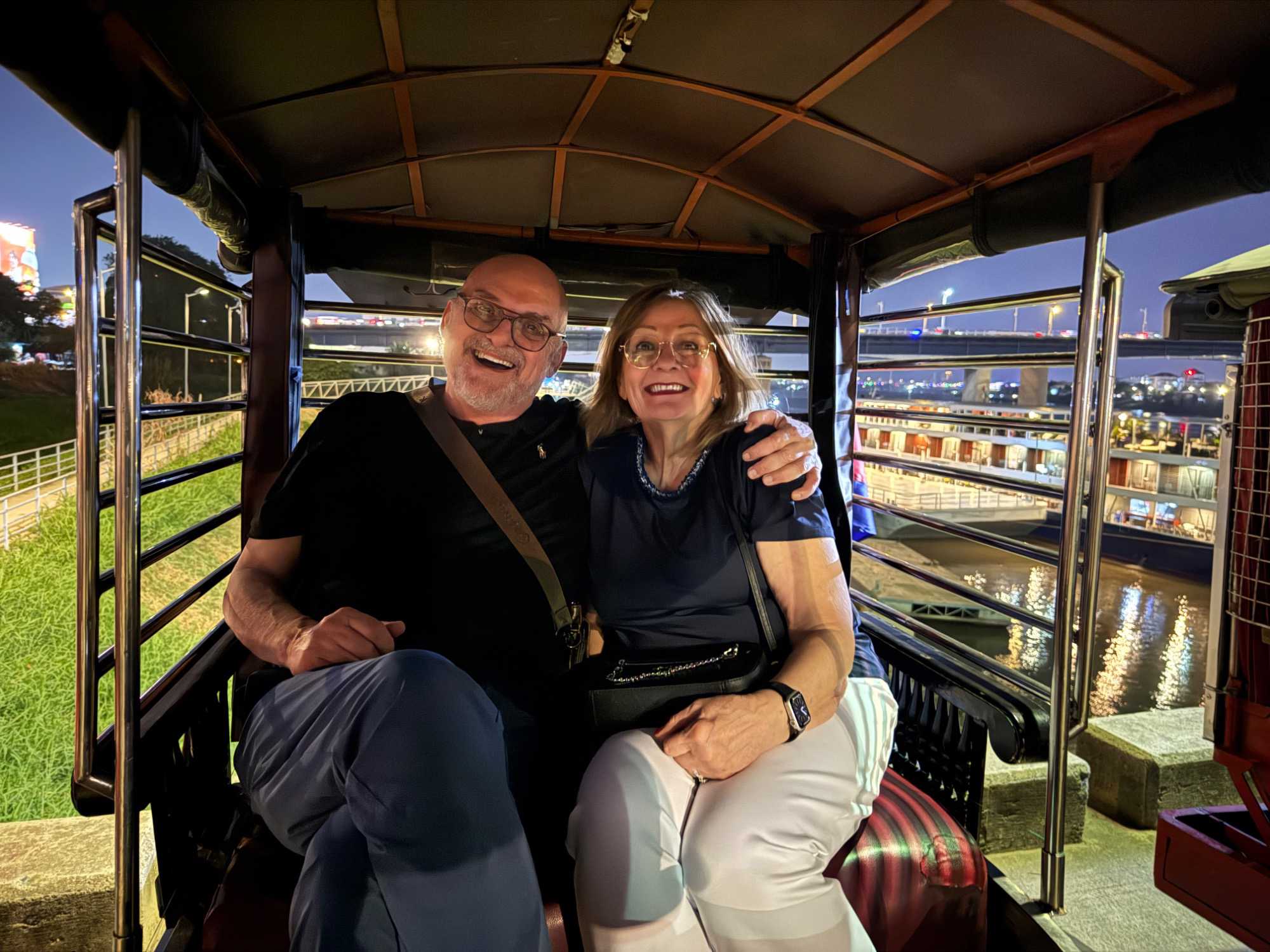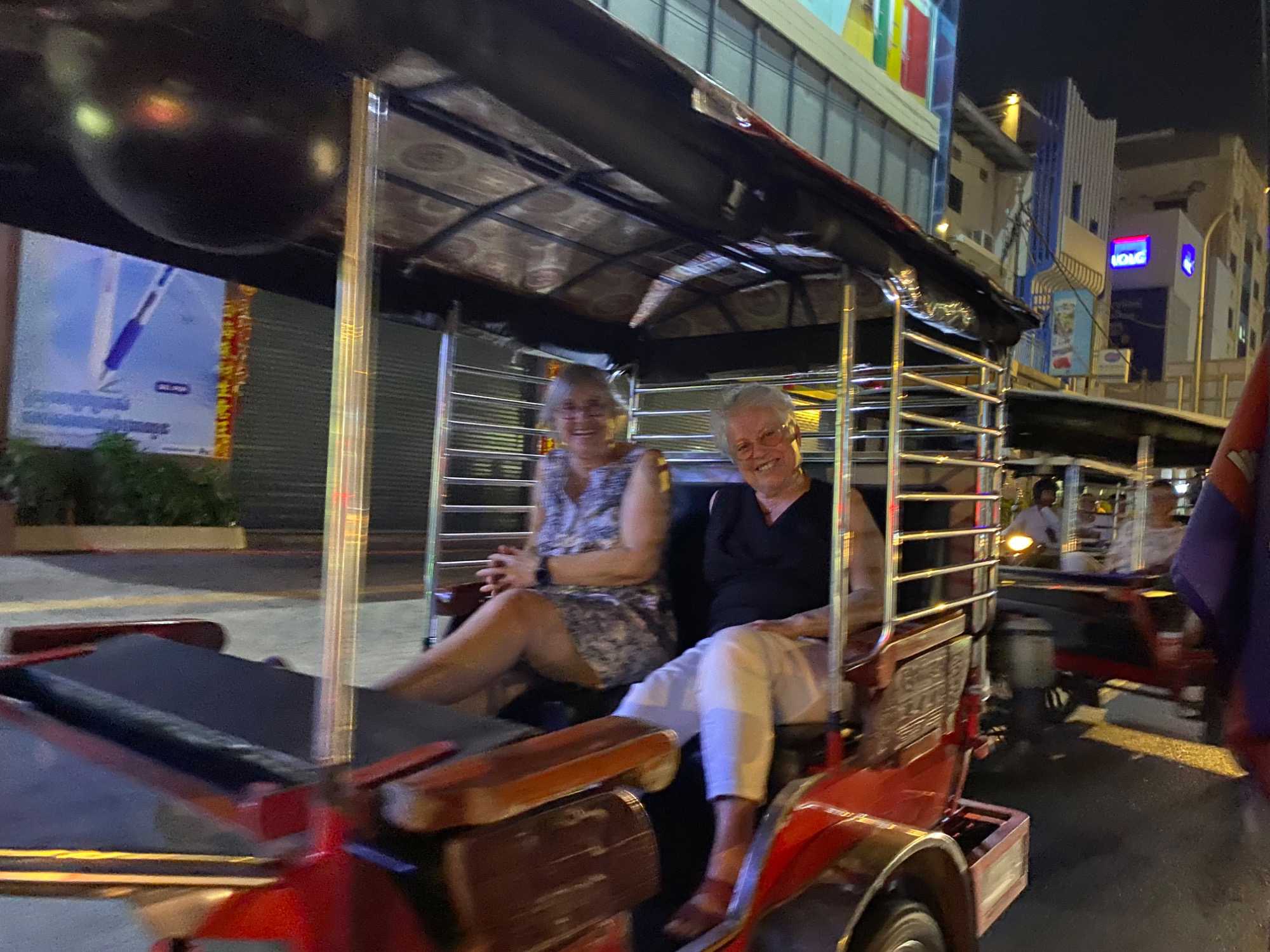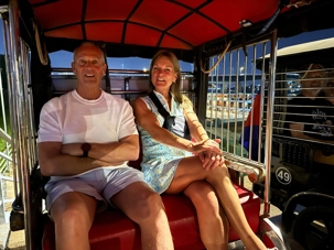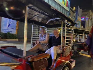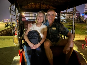Arrivée à Phnom Penh, c’est le temps d’une aventure nocturne en Tuk-Tuk, à la découverte de cette ville animée et scintillante. Deux personnes par engin, et nous voilà cheveux au vent à sillonner les rues en admirant les principaux attraits illuminés. Une ballade dynamique et festive, où chacun retrouve son coeur d’enfant!