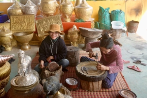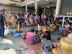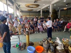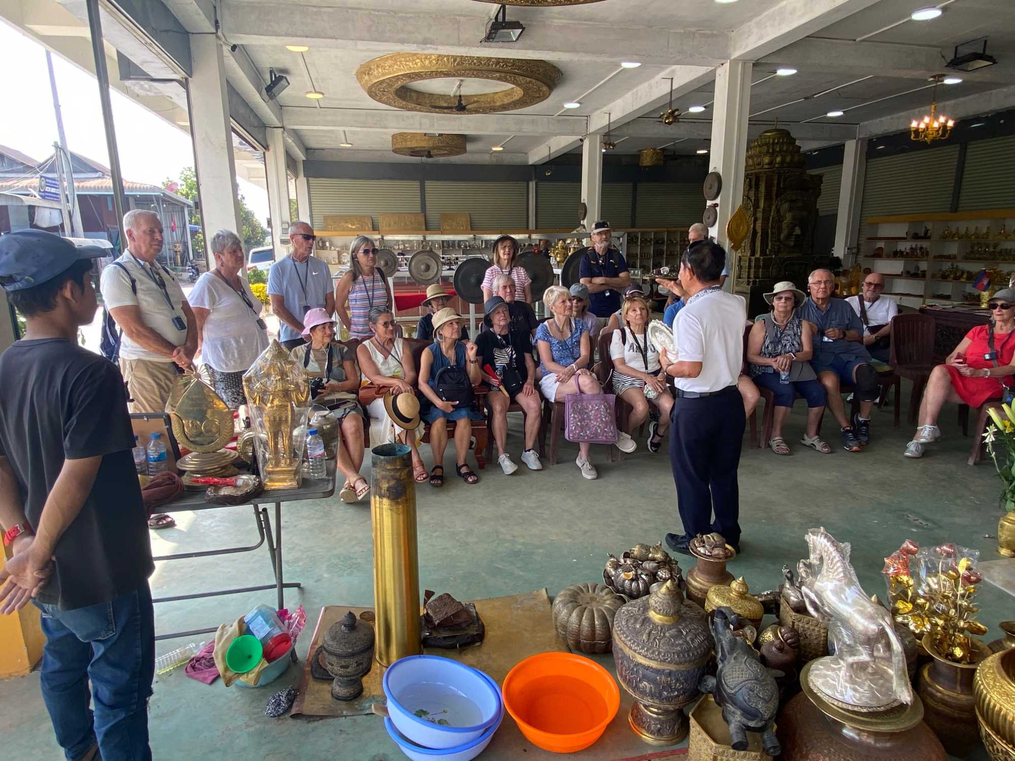Notre guide nous amène dans un atelier où l’on peut observer les techniques traditionnelles de ciselure sur métal en nous expliquant avec humour tous les détails de chacune des étapes de fabrication: le moulage, le repoussage, gravure, la finition et se terminant avec la réaction chimique du nitrate d’argent pour que les objets soit plaqué-argenté. Plusieurs en profitent pour acquérir quelques souvenirs,