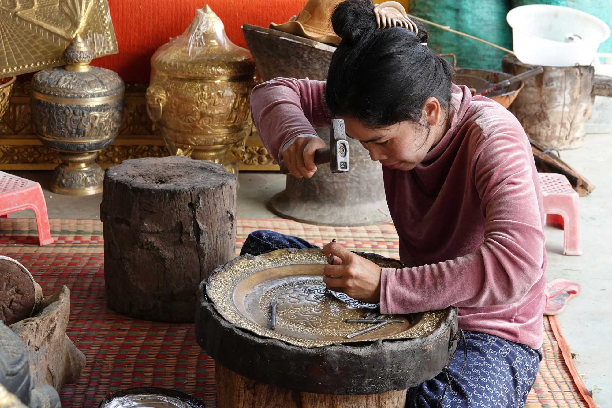 Koh Chen est célèbre par la qualité de son artisanat dont les habitants sont spécialisés par le travail de l’argent et du cuivre gravé et argenté.