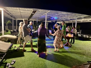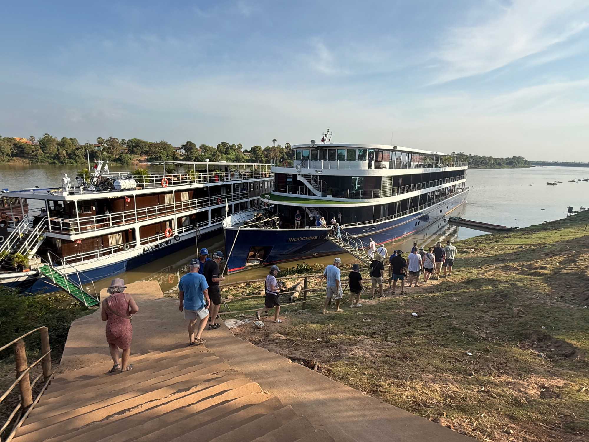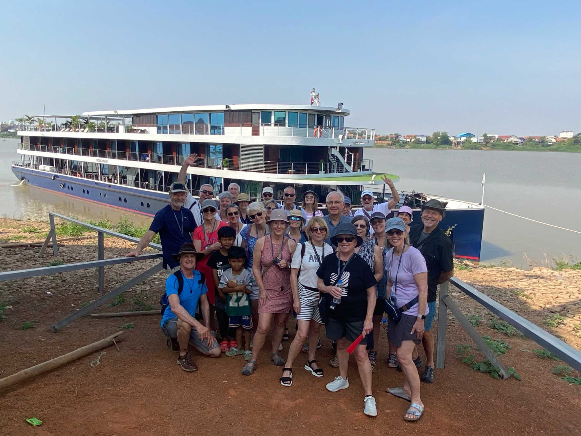 Après le souper, plusieurs se retrouvent sur le pont extérieur pour le Khmer Party. Soirée dansante où l’on se déhanche sous la musique cambodgienne tout en apprenant sur leur façon de danser; avec beaucoup d’expressions et de gestuels des mains. Belle fraternité partagée entre voyageurs et personnels du bateau. On a eu bien du fun!!