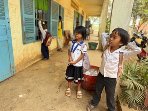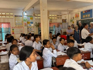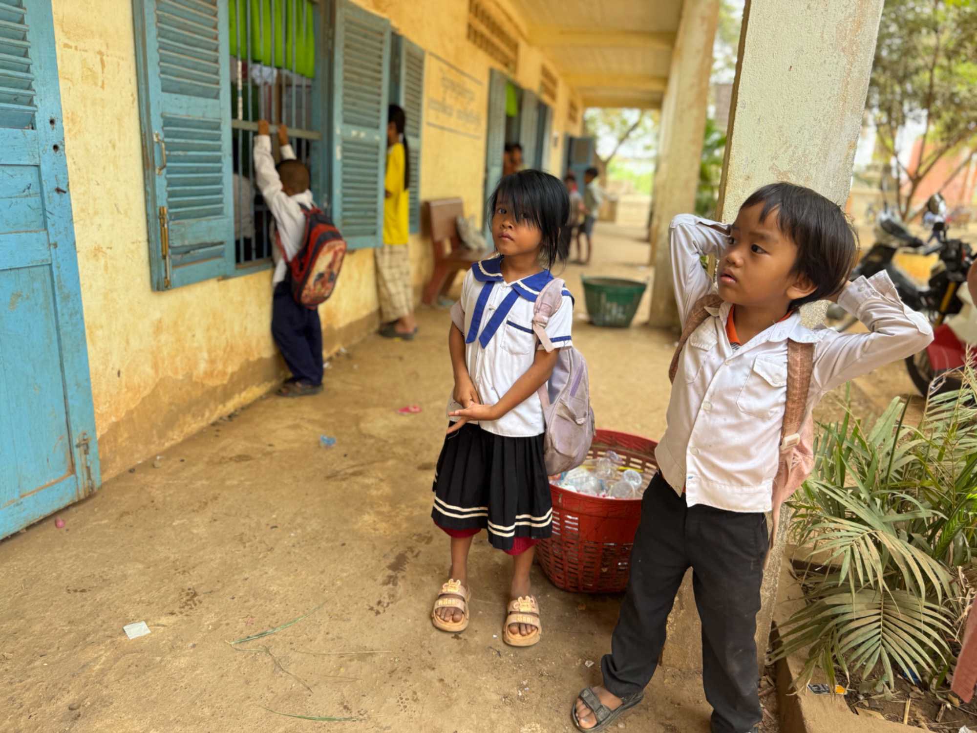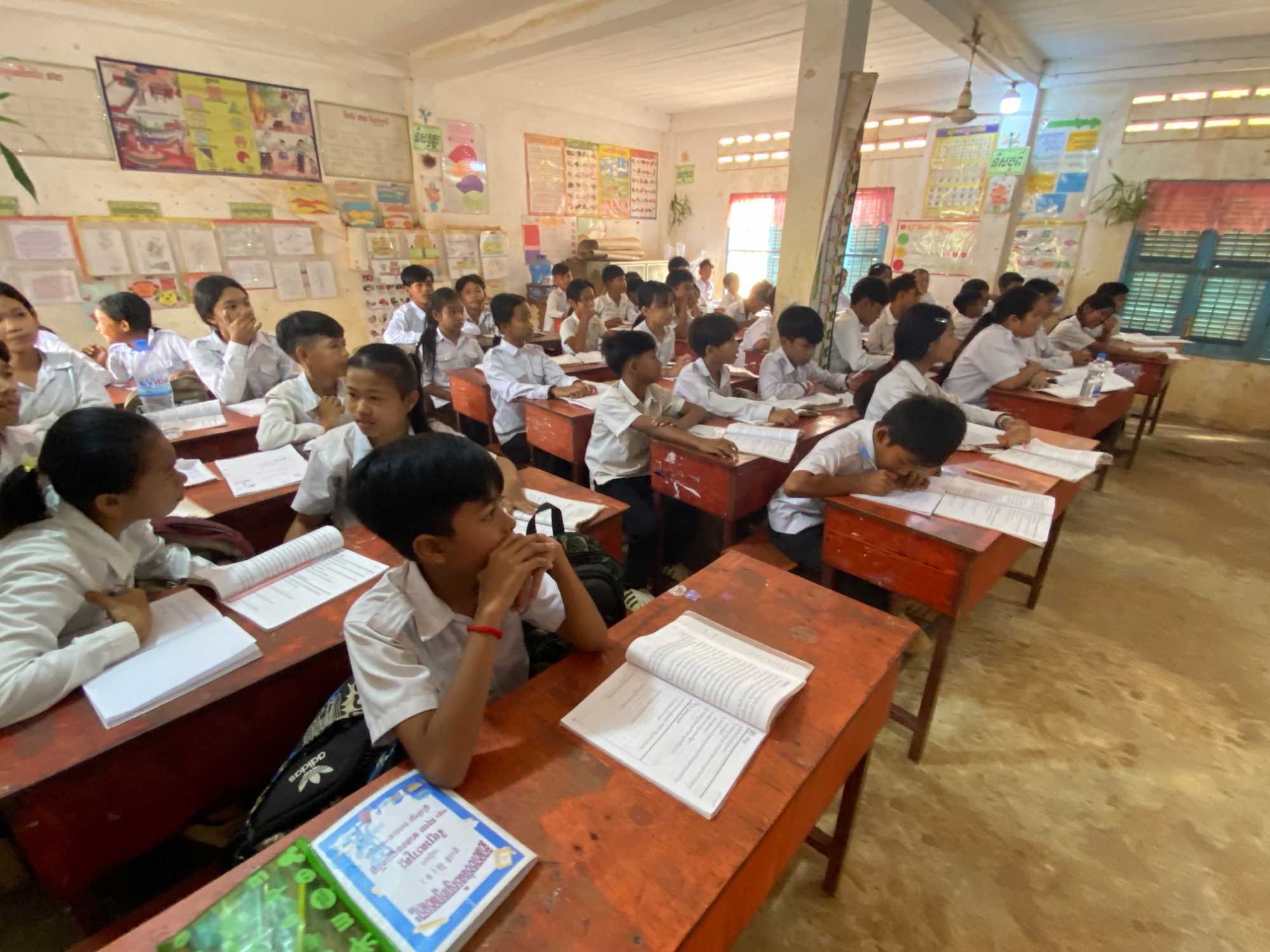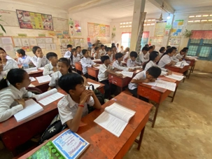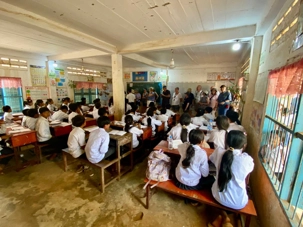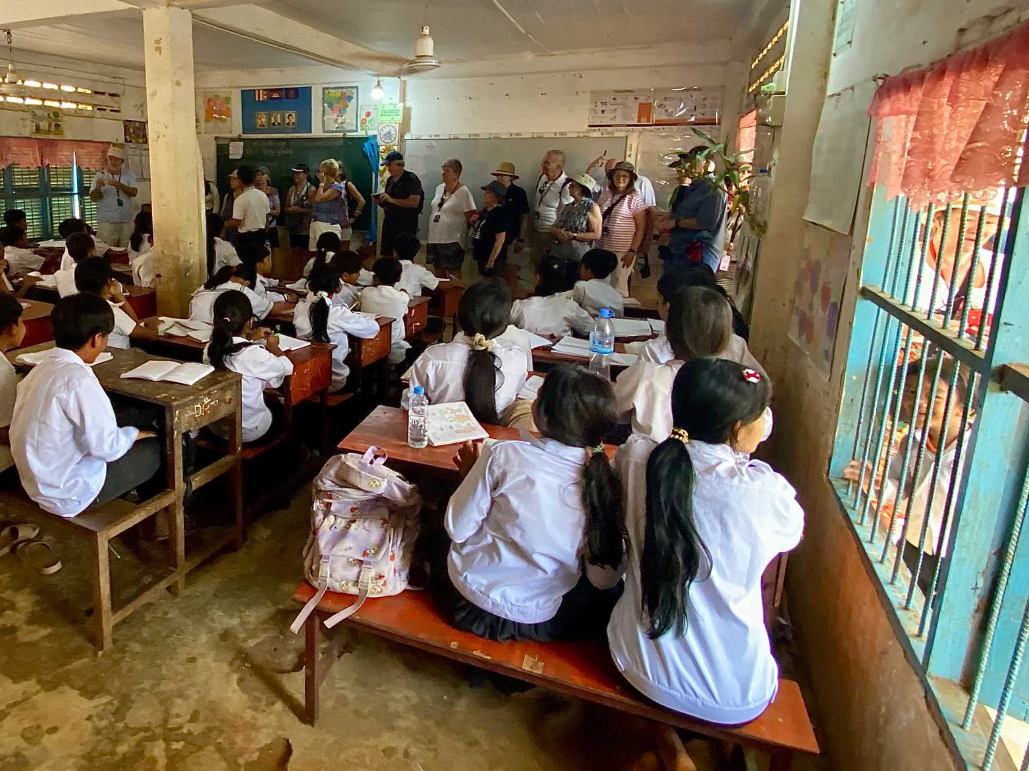 Nous poursuivons notre découverte du village en allant visiter une école afin d’en apprendre davantage sur leur système scolaire. Arrivés dans la cour d’école, les jeunes s’agitent avec curiosité en s’approchant de nous. Nous sommes accueillis avec bruit dans une classe. Sona, avec l’aide de l’enseignante nous transmet les informations pertinentes sur l’éducation des jeunes. Nous avons même droit à une contine avant notre départ.