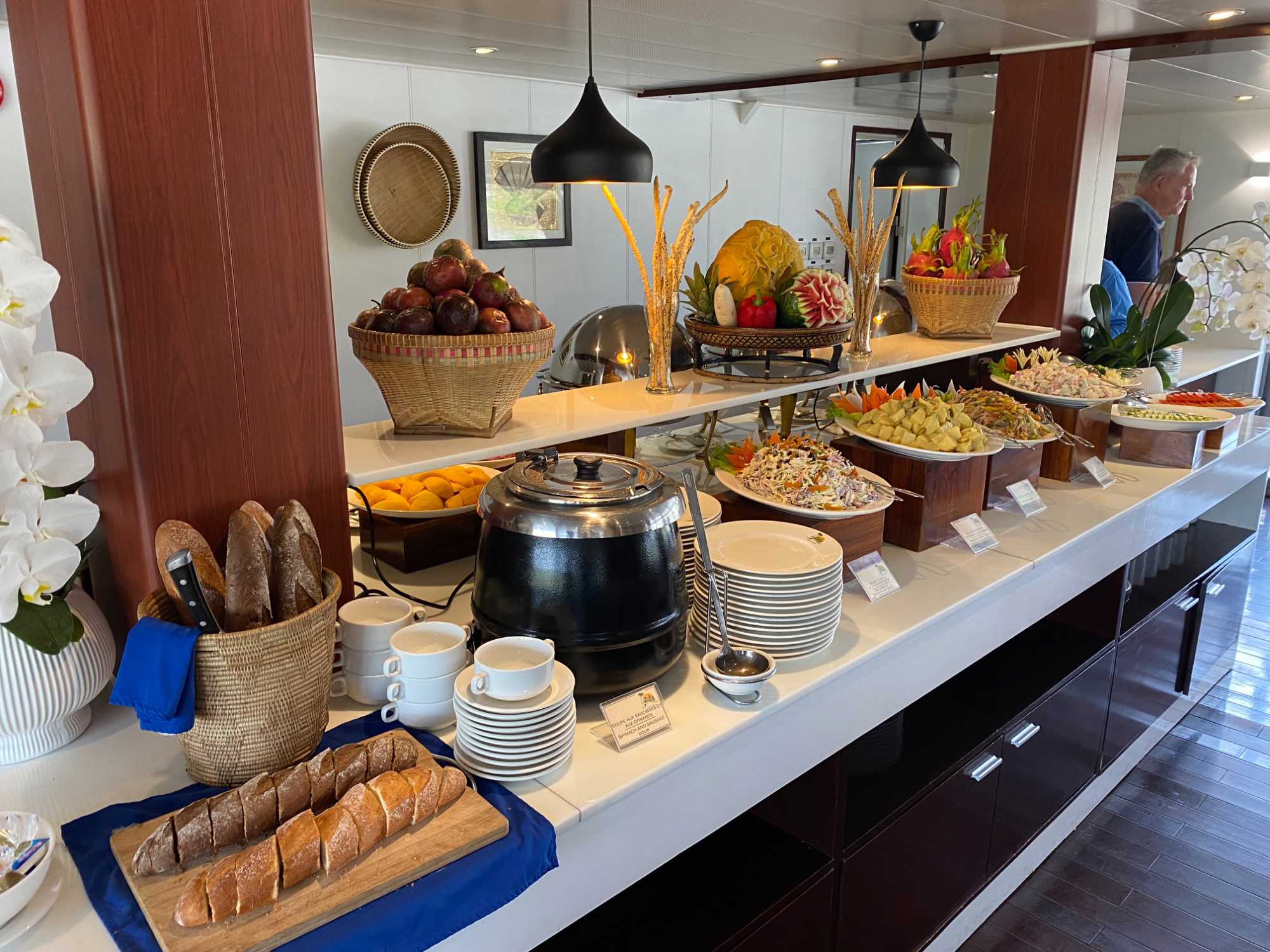 Puis, nous déambulons lentement sur l’artère principal, avec enfants à la main. Petit arrêt dans une boutique artisanal, puis de retour au bateau pour partager le repas du midi. Toujours un délice d’une grande variété de saveurs et de mets diversifiés.