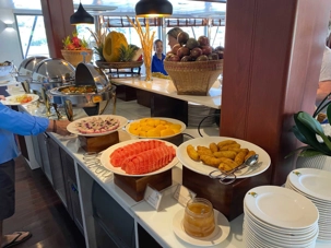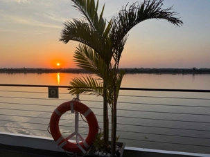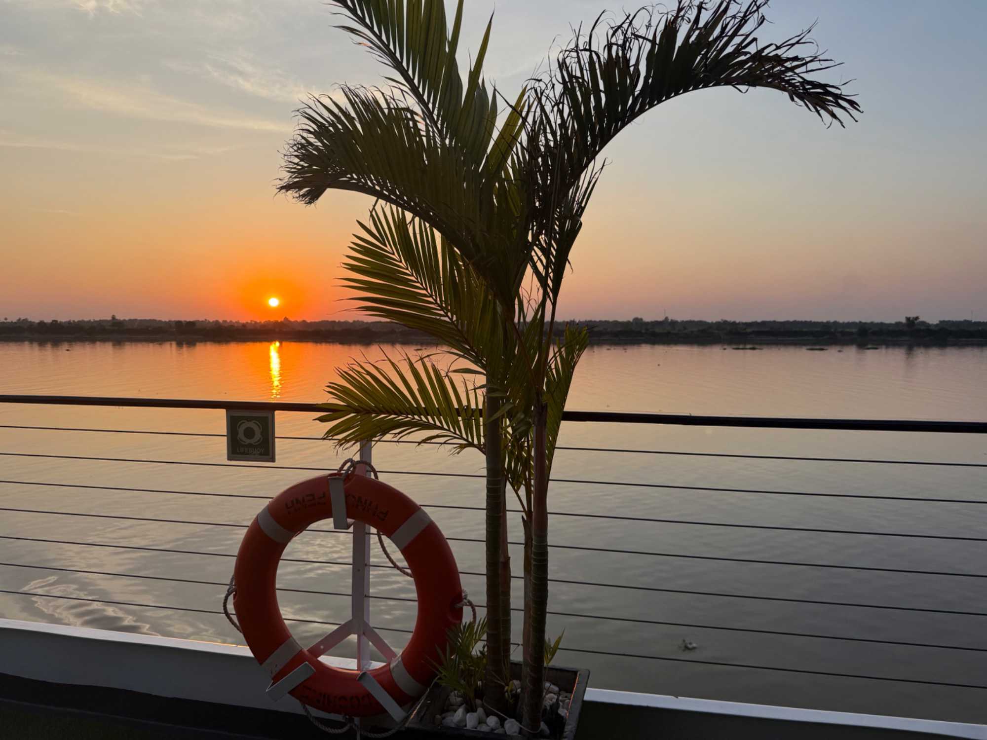Sous cette chaleur de 38 degré, nous bénéficions de se rafraîchir dans la piscine au pont soleil, tout en prenant un drink. De chaque coté, nous sommes témoins de la vie quotidienne des habitants à l’action, entre pêche et travaux dans les champs. Le paysage défile sous cette luminosité orangé d’un coucher de soleil qui se pointe à l’horizon. Les maisons flottantes et d’autres sur pilotis qui arborent le cours d’eau… Vraiment, nous sommes totalement dépaysés!