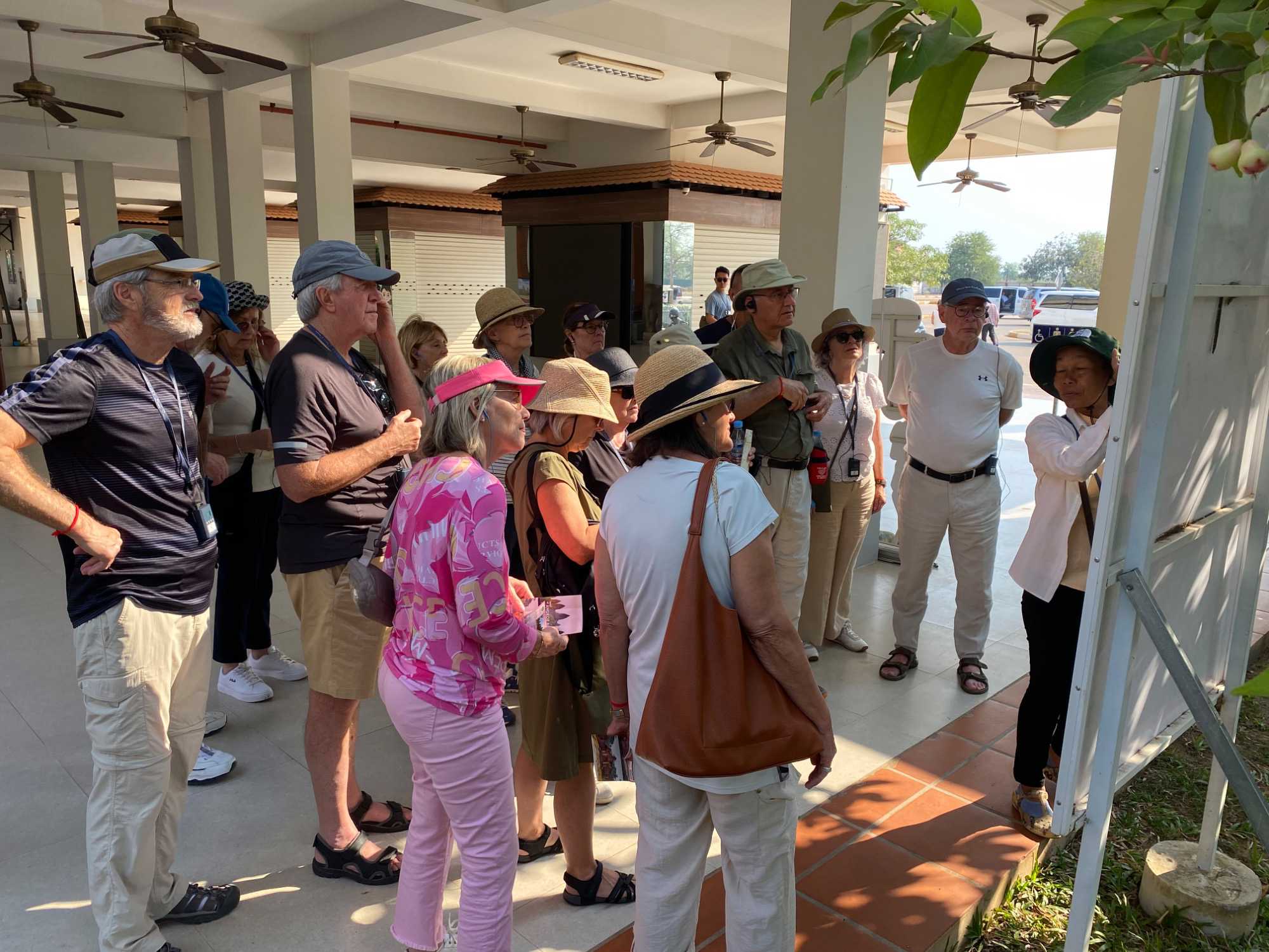 Nos bus privés nous permet de se déplacer rapidement et d’éviter de longues marches sous ce soleil ardent et cette chaleur assez intense, 40 degré. Fiouf! On se rafraichit à l’ombre tout en buvant une noix de coco; et le repas du dîner se déroule dans un restaurant sur ce grand site.