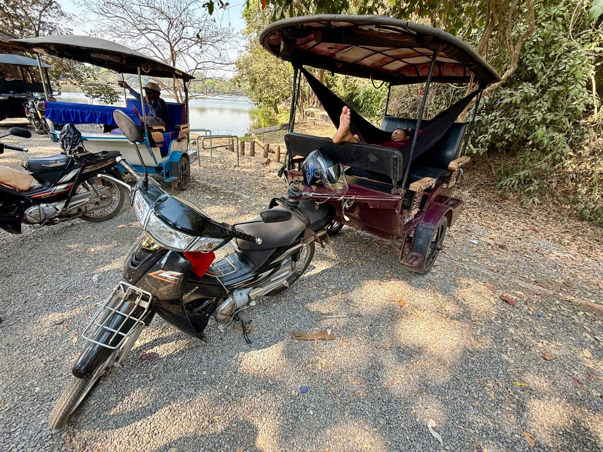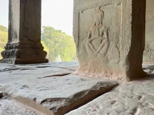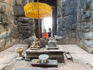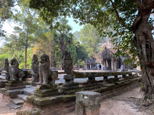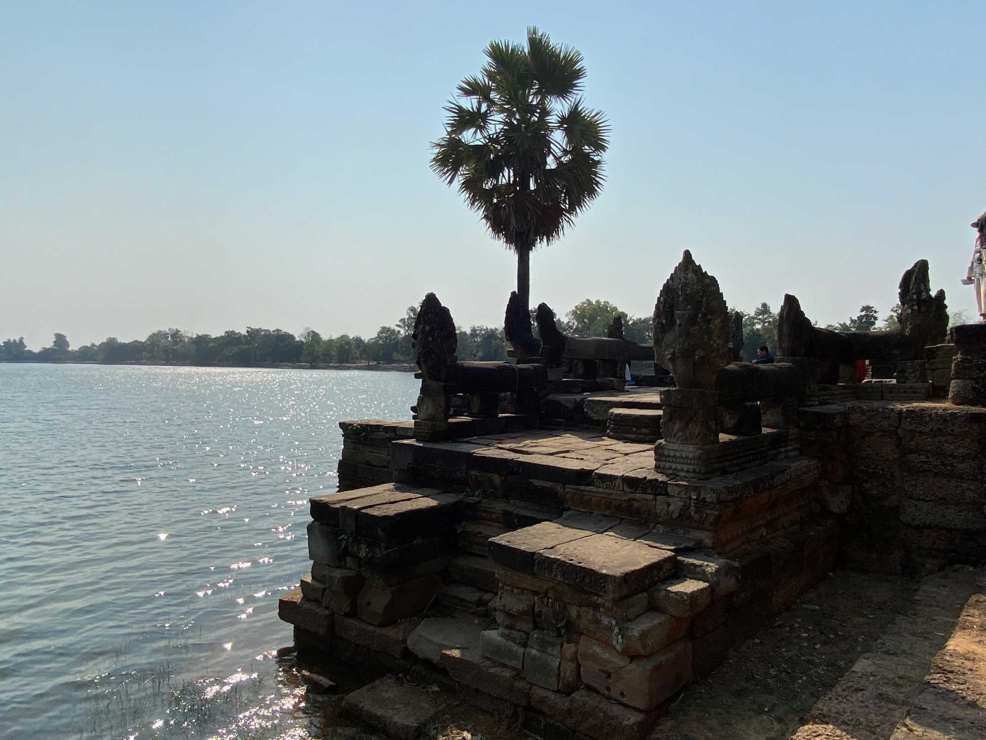 Nous débutons par la visite de Srah Srang. Il a été aménagé au Xe siècle sous le règne de Râjavarman II, puis restauré plus tard par Jayavarman VII. Sa terrasse monumentale en latérite et en grès, ornée de sculptures de nagas et de lions, servait de lieu cérémoniel royal. Srah Srang est souvent surnommé le « bain royal » en raison de son usage supposé par la cour. Aujourd’hui, c’est un endroit très apprécié pour admirer le lever du soleil sur les eaux calmes du bassin.