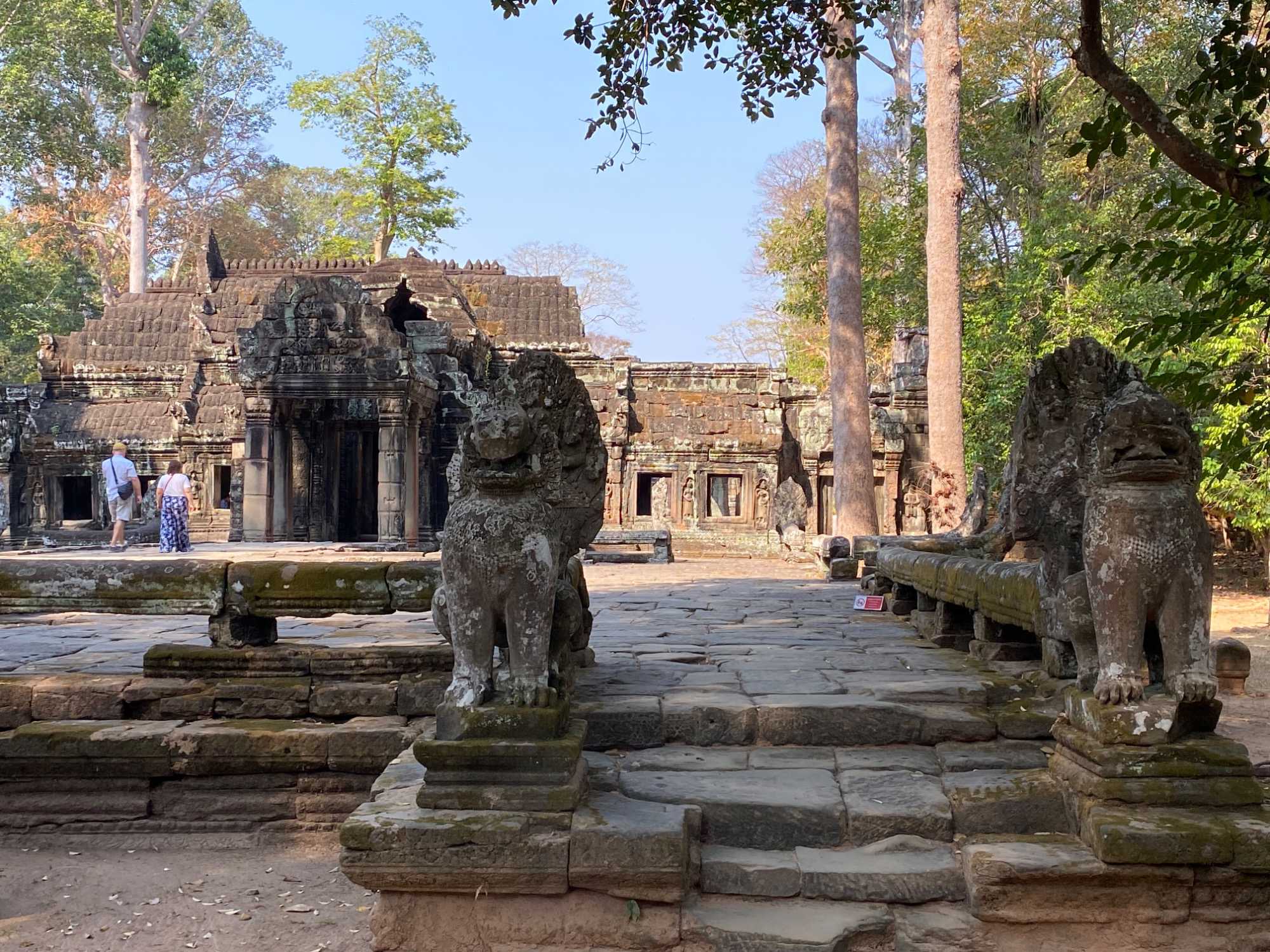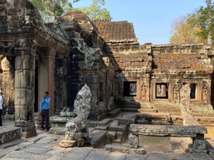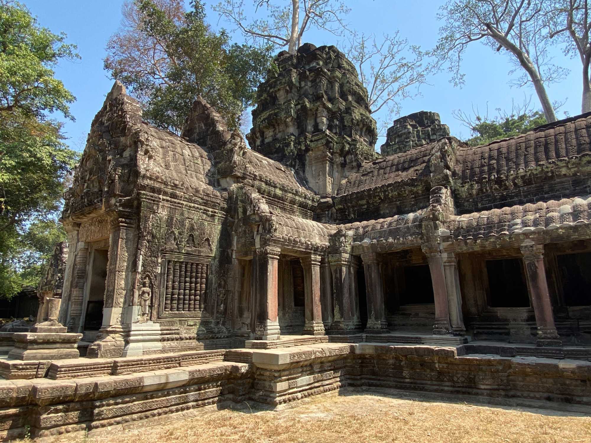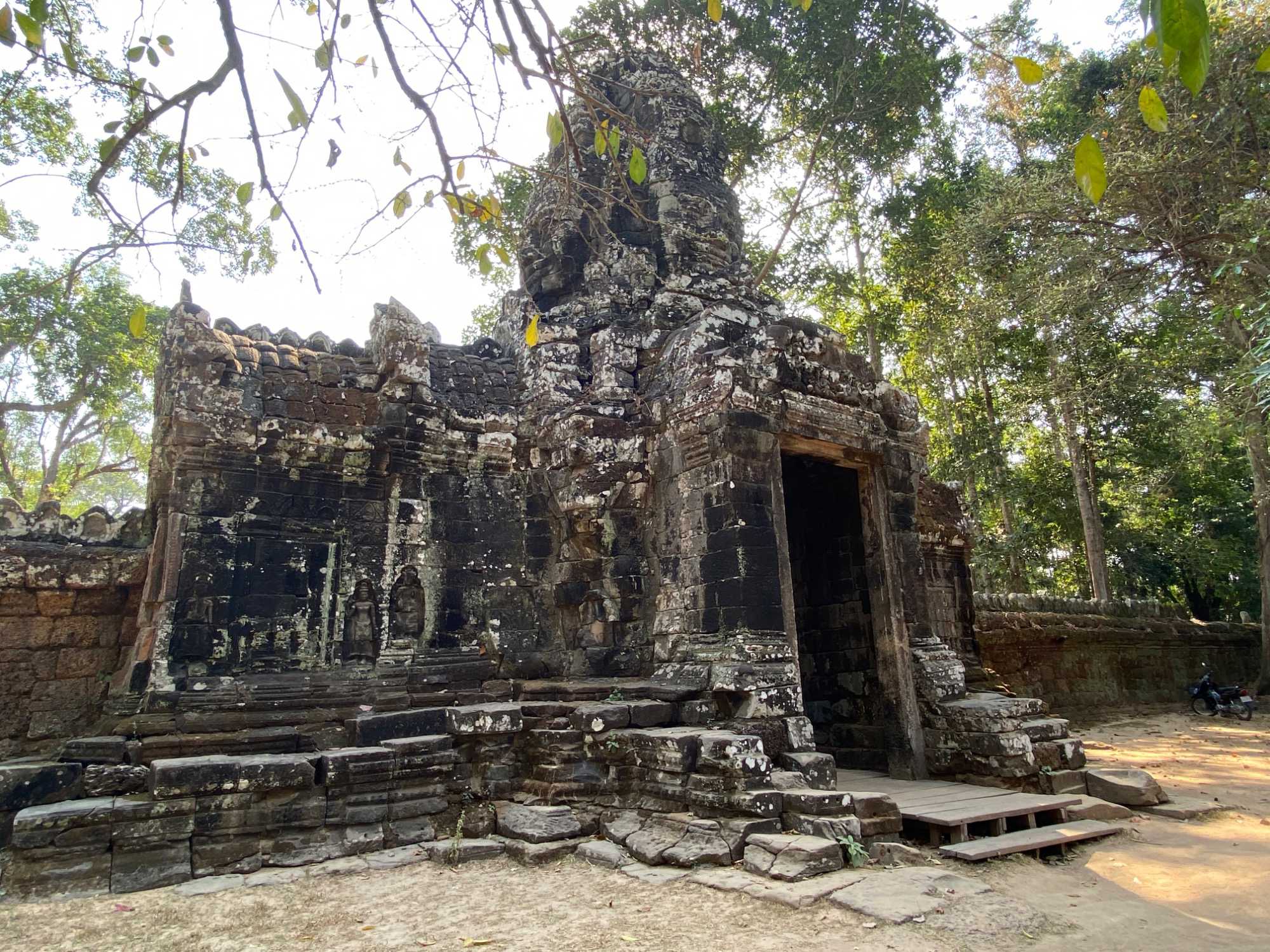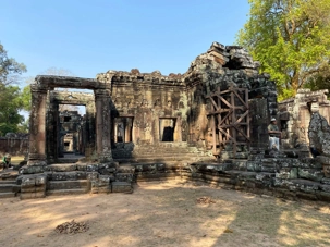 ELe Banteay Kdei est un temple bouddhiste. Il a été construit à la fin du XIIe siècle sous le règne du roi Jayavarman VII. Son nom signifie « citadelle des cellules », en référence aux nombreuses petites pièces occupées par les moines. Le temple est de style Bayon et se distingue par son architecture richement décorée mais partiellement en ruine. Aujourd’hui, il constitue un site emblématique d’Angkor, apprécié pour son atmosphère paisible et ses sculptures raffinées.