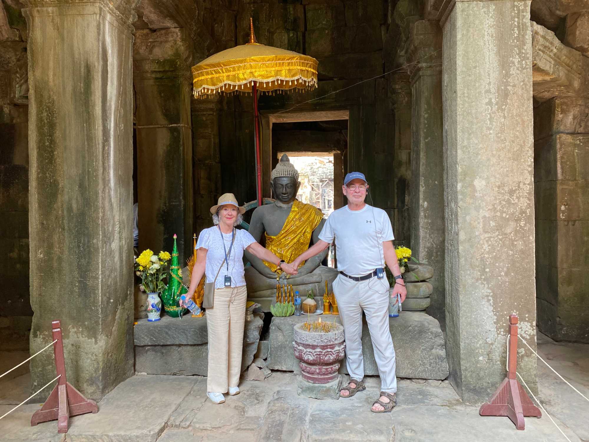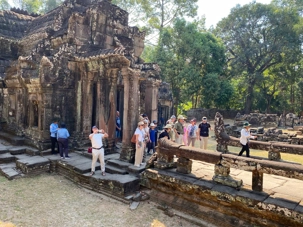 Après un excellent déjeuner au buffet, proposant une généreuse variété de mets occidentaux et asiatiques pour satisfaire tous les palais, nous sommes prêts à partir à la découverte de ce site archéologique tant attendu : les temples d’Angkor.