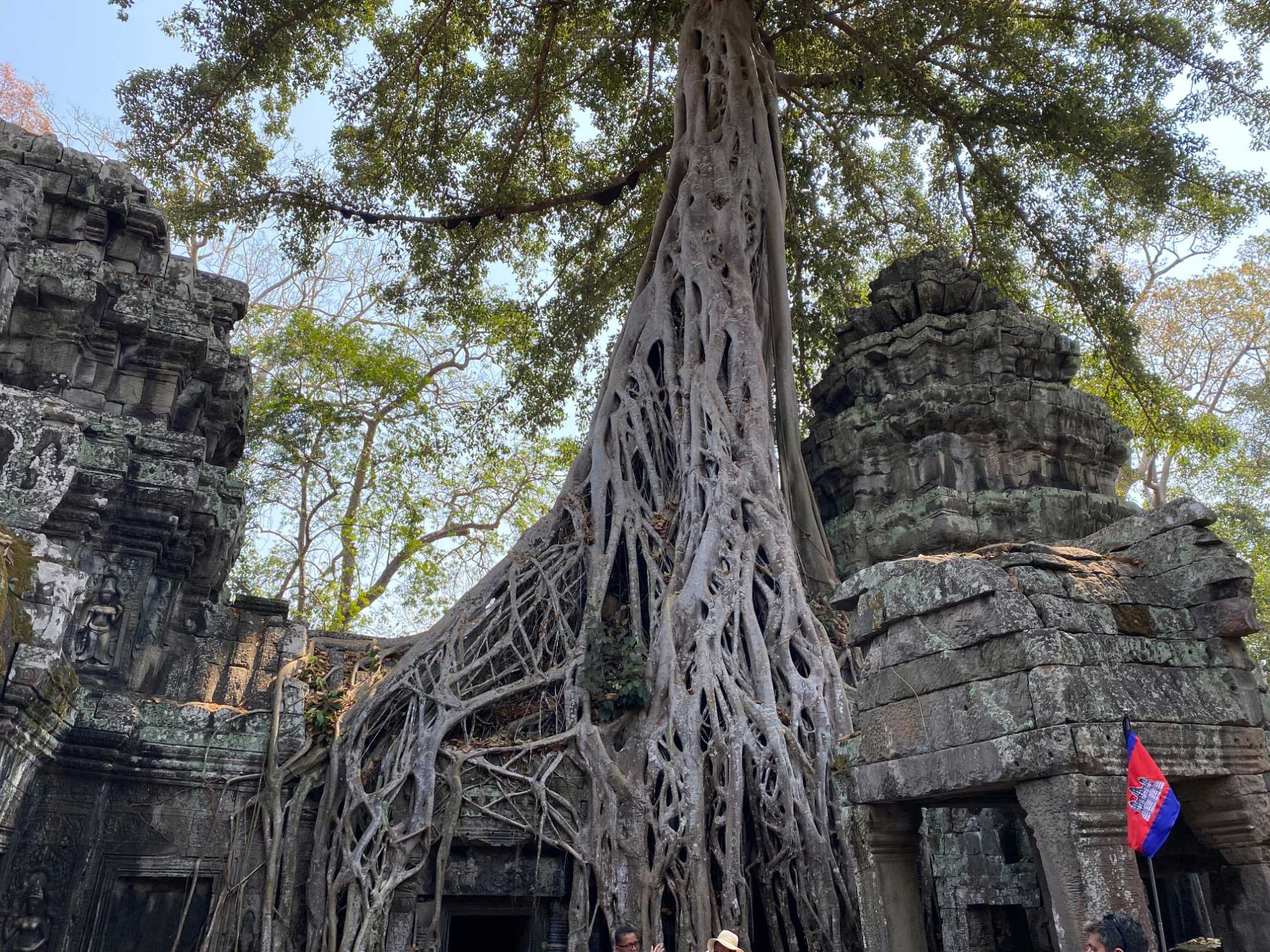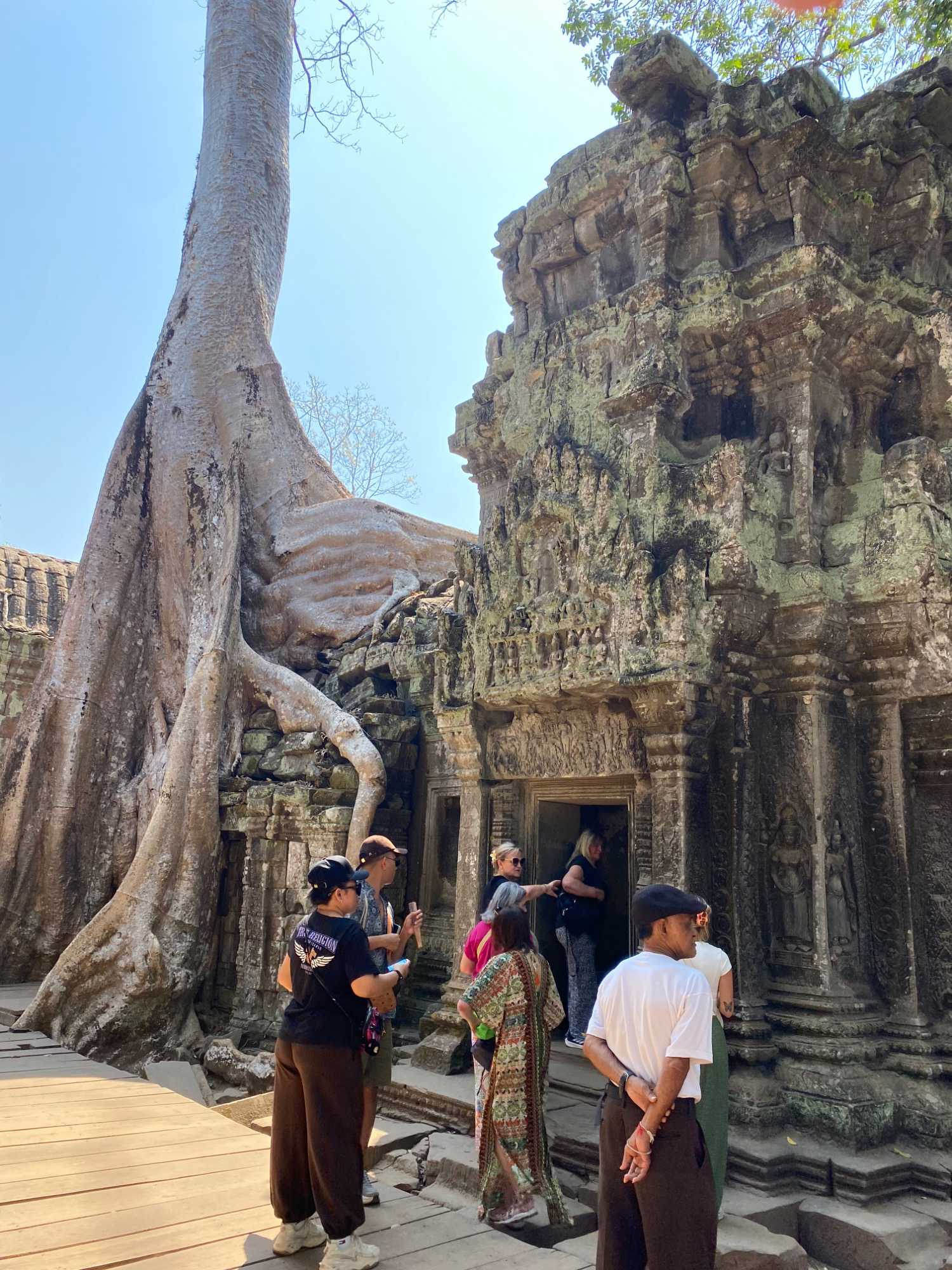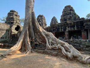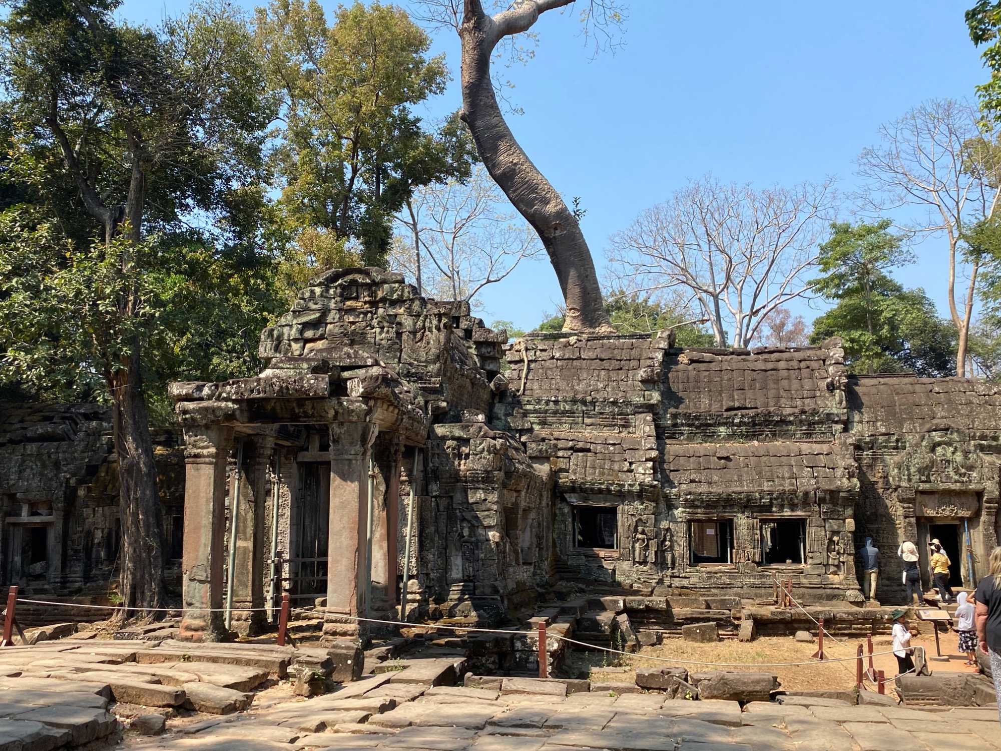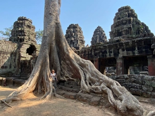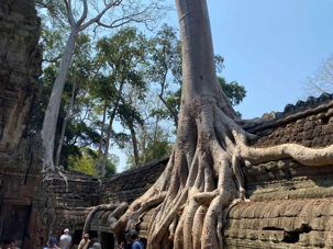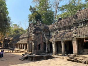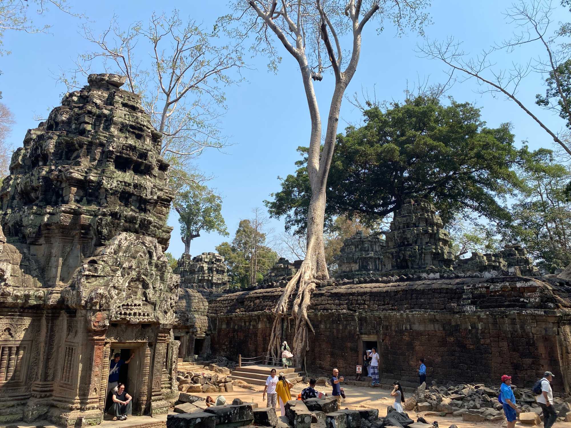 Le Ta Prohm est un temple bouddhiste. Il a été construit à la fin du XIIe siècle sous le règne de Jayavarman VII et dédié à sa mère. Le temple est célèbre pour ses gigantesques fromagers et racines d’arbres qui enveloppent les ruines, créant une atmosphère spectaculaire. Contrairement à d’autres monuments d’Angkor, il a été conservé en grande partie dans son état naturel, envahi par la végétation. Ta Prohm est aujourd’hui l’un des sites les plus visités du Cambodge, notamment depuis son apparition dans le film Lara Croft: Tomb Raider.