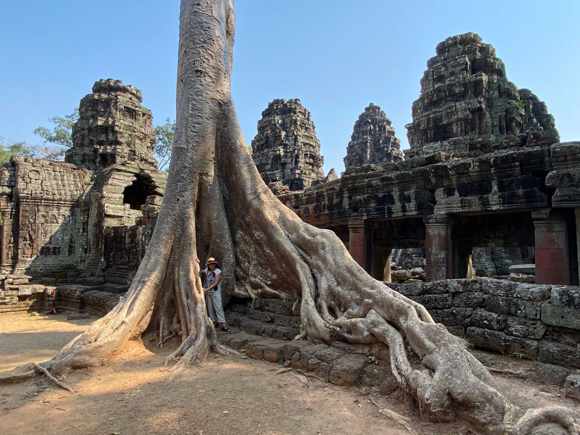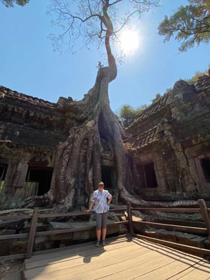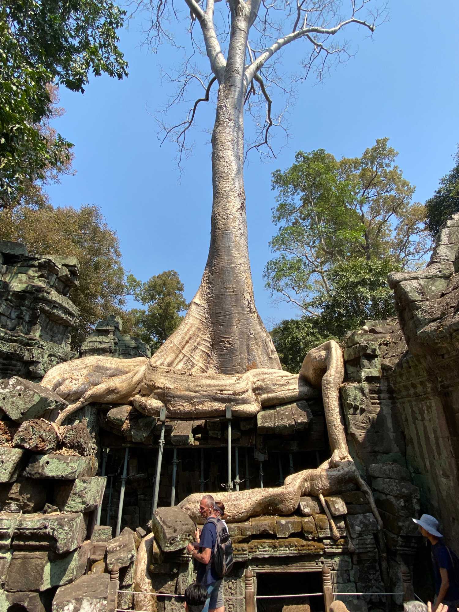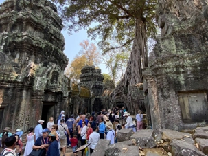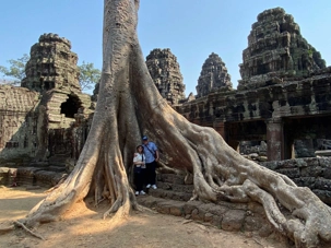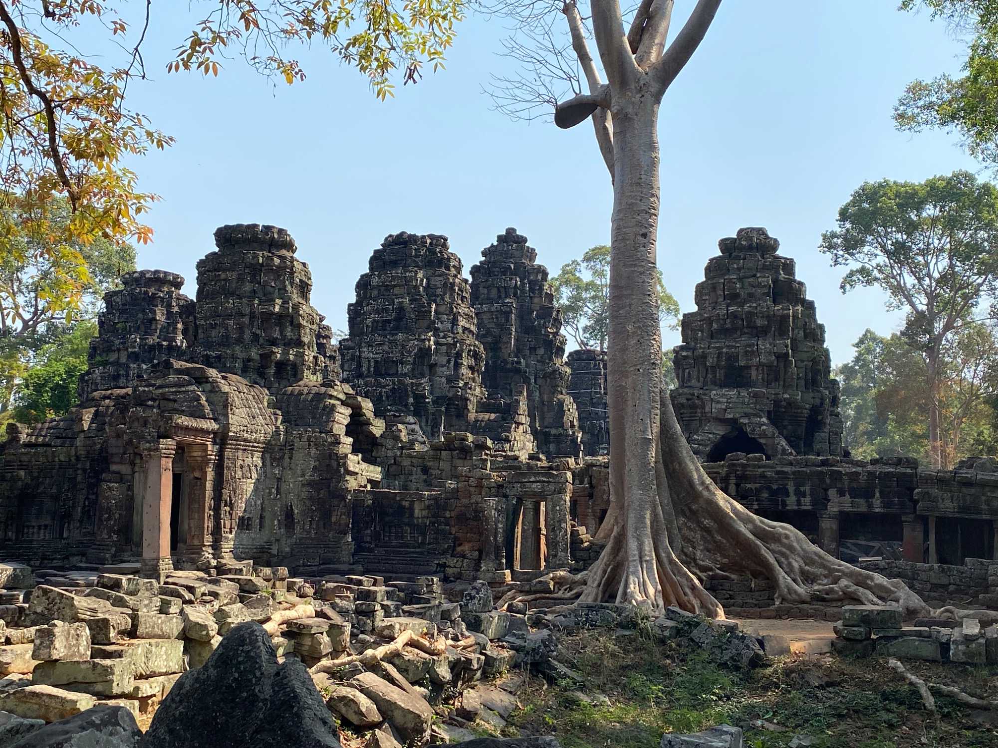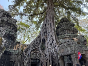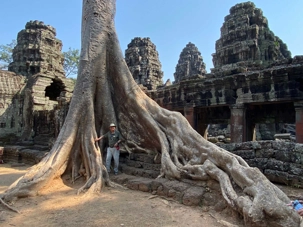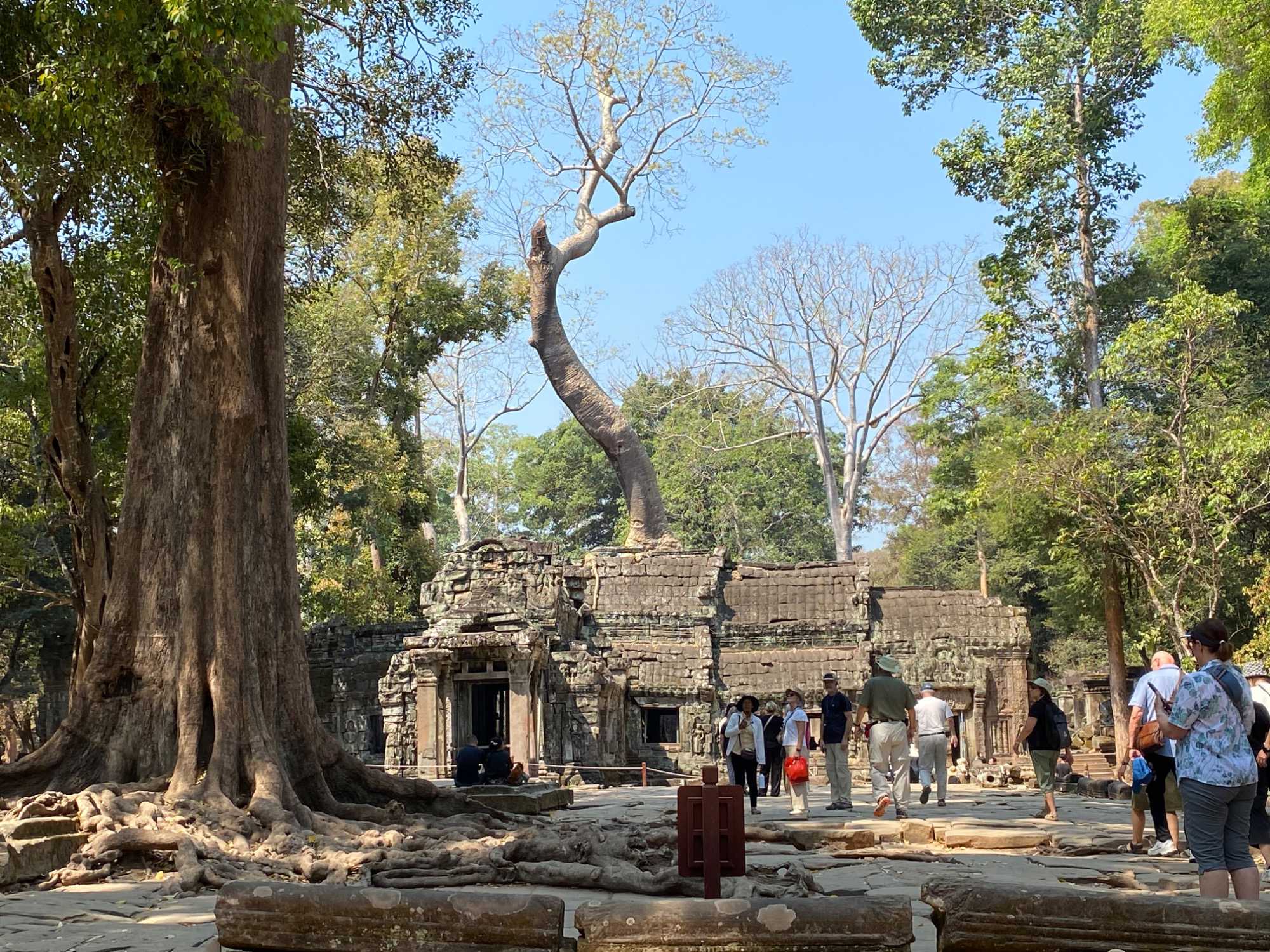 Le Ta Prohm est un temple bouddhiste. Il a été construit à la fin du XIIe siècle sous le règne de Jayavarman VII et dédié à sa mère. Le temple est célèbre pour ses gigantesques fromagers et racines d’arbres qui enveloppent les ruines, créant une atmosphère spectaculaire. Contrairement à d’autres monuments d’Angkor, il a été conservé en grande partie dans son état naturel, envahi par la végétation. Ta Prohm est aujourd’hui l’un des sites les plus visités du Cambodge, notamment depuis son apparition dans le film Lara Croft: Tomb Raider.
