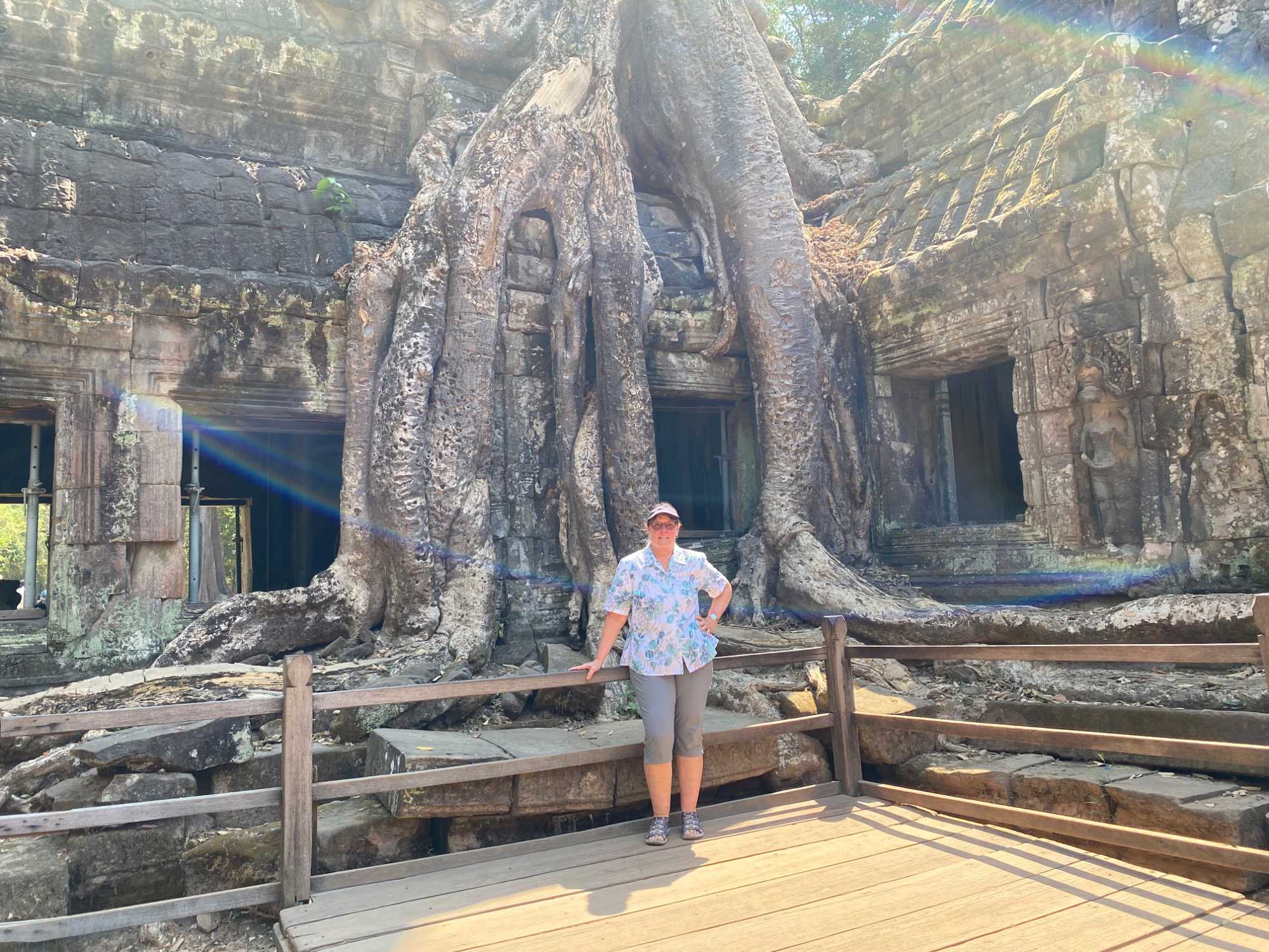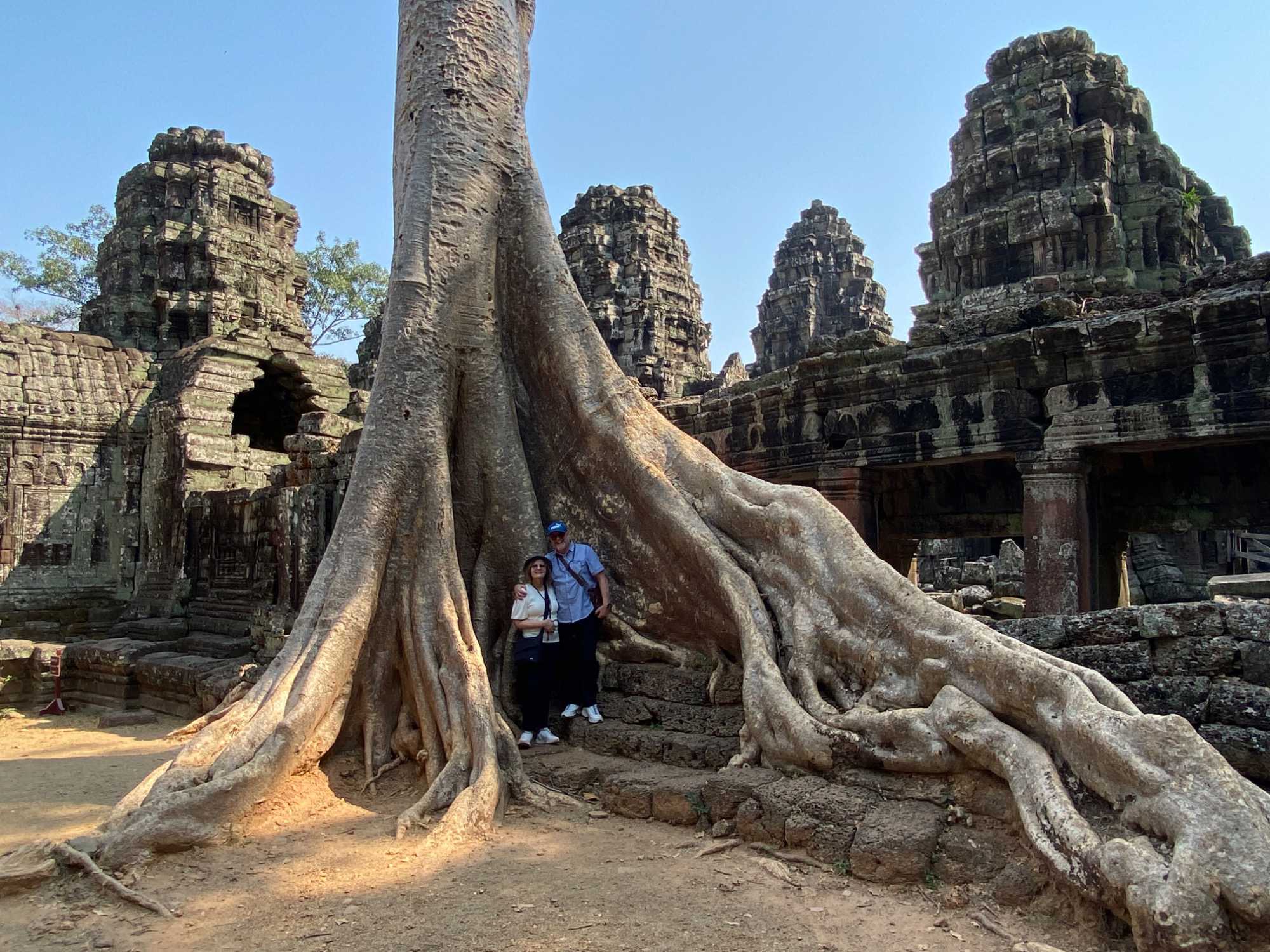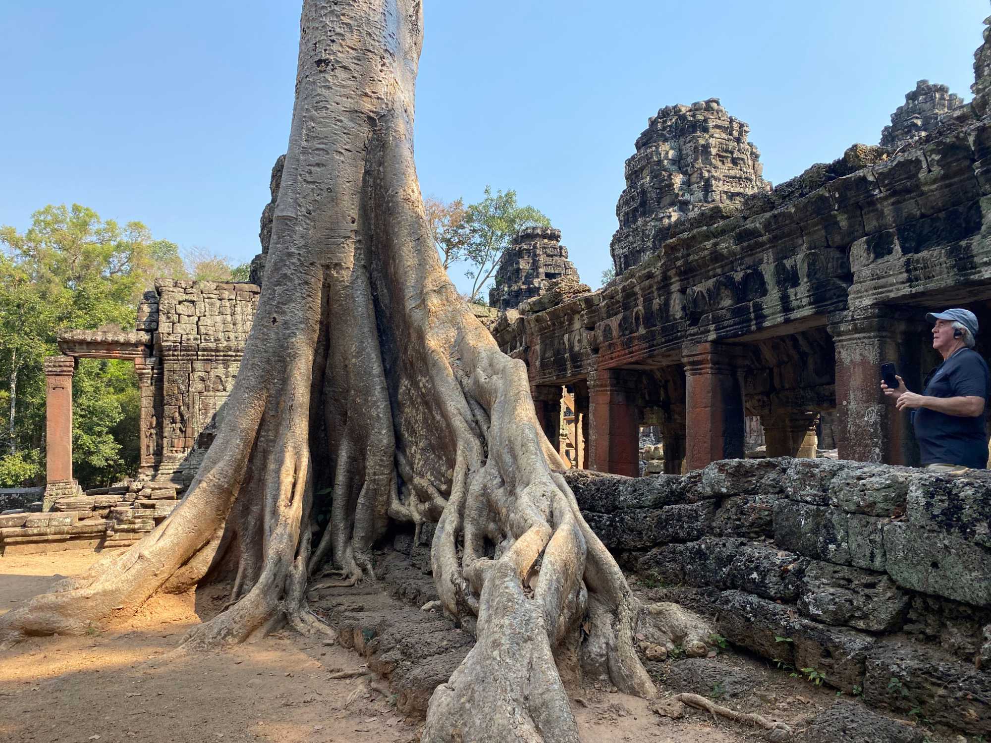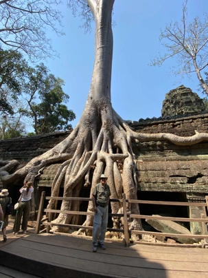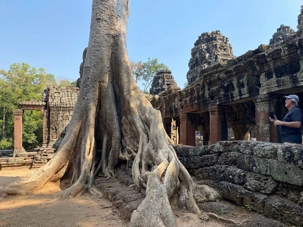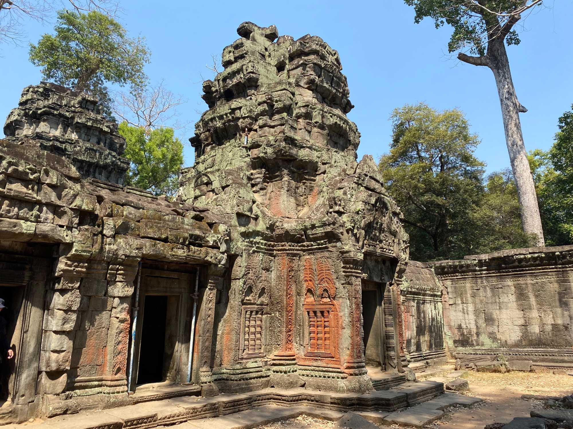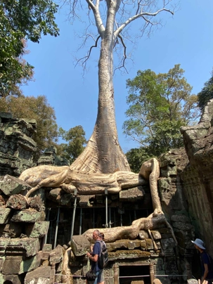 Le Ta Prohm est un temple bouddhiste. Il a été construit à la fin du XIIe siècle sous le règne de Jayavarman VII et dédié à sa mère. Le temple est célèbre pour ses gigantesques fromagers et racines d’arbres qui enveloppent les ruines, créant une atmosphère spectaculaire. Contrairement à d’autres monuments d’Angkor, il a été conservé en grande partie dans son état naturel, envahi par la végétation. Ta Prohm est aujourd’hui l’un des sites les plus visités du Cambodge, notamment depuis son apparition dans le film Lara Croft: Tomb Raider.