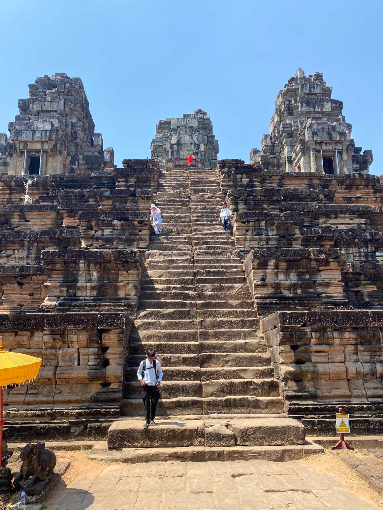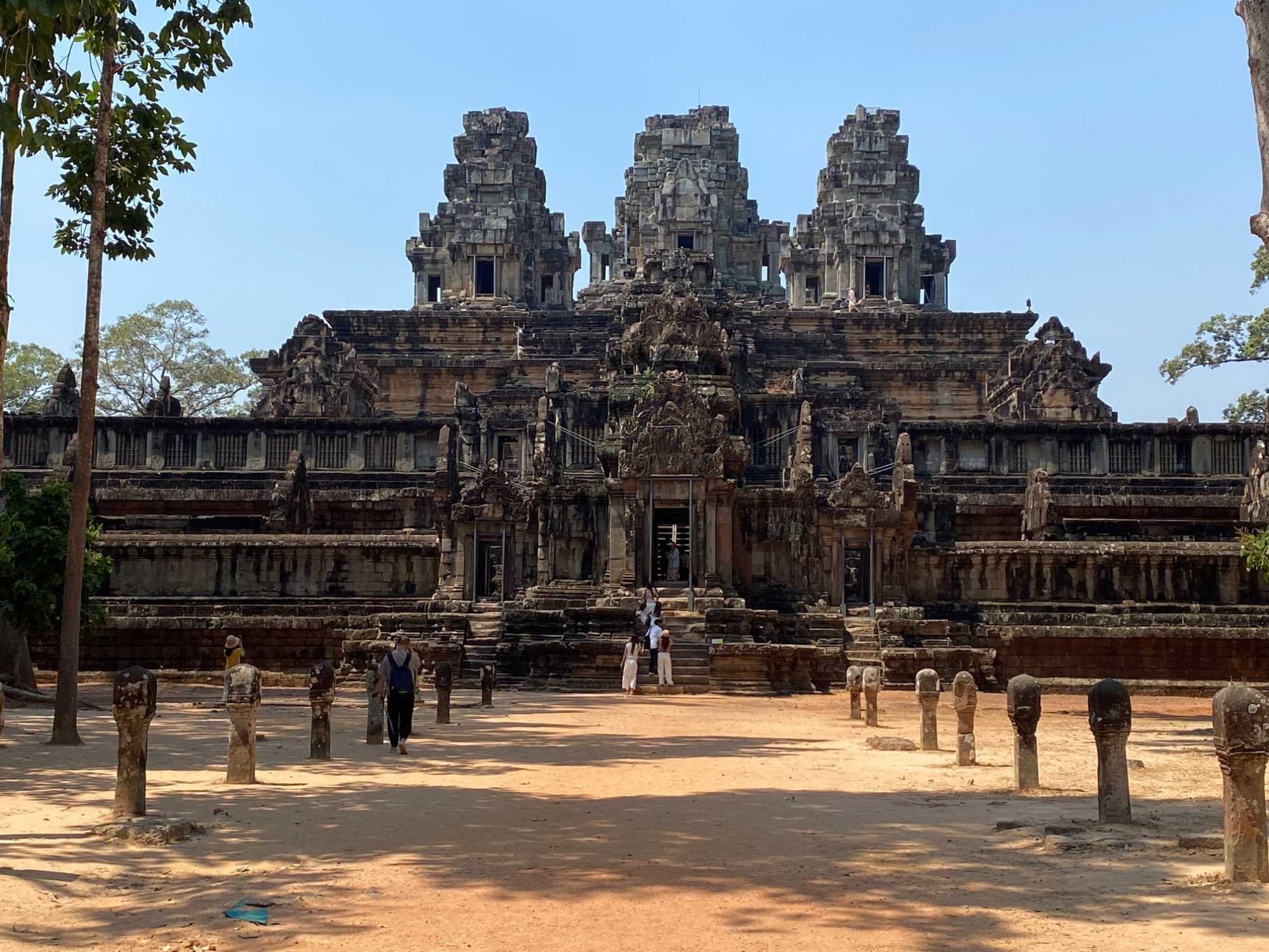 Le Ta Keo est un temple-montagne. Il a été édifié à la fin du Xe siècle sous le règne de Jayavarman V et dédié au dieu hindou Shiva. Construit entièrement en grès, il se distingue par son aspect massif et relativement dépourvu de décorations sculptées. Selon certaines hypothèses, le temple serait resté inachevé à la suite d’un mauvais présage lié à la foudre. Aujourd’hui, Ta Keo impressionne par ses proportions monumentales et offre une vue panoramique depuis son sommet.